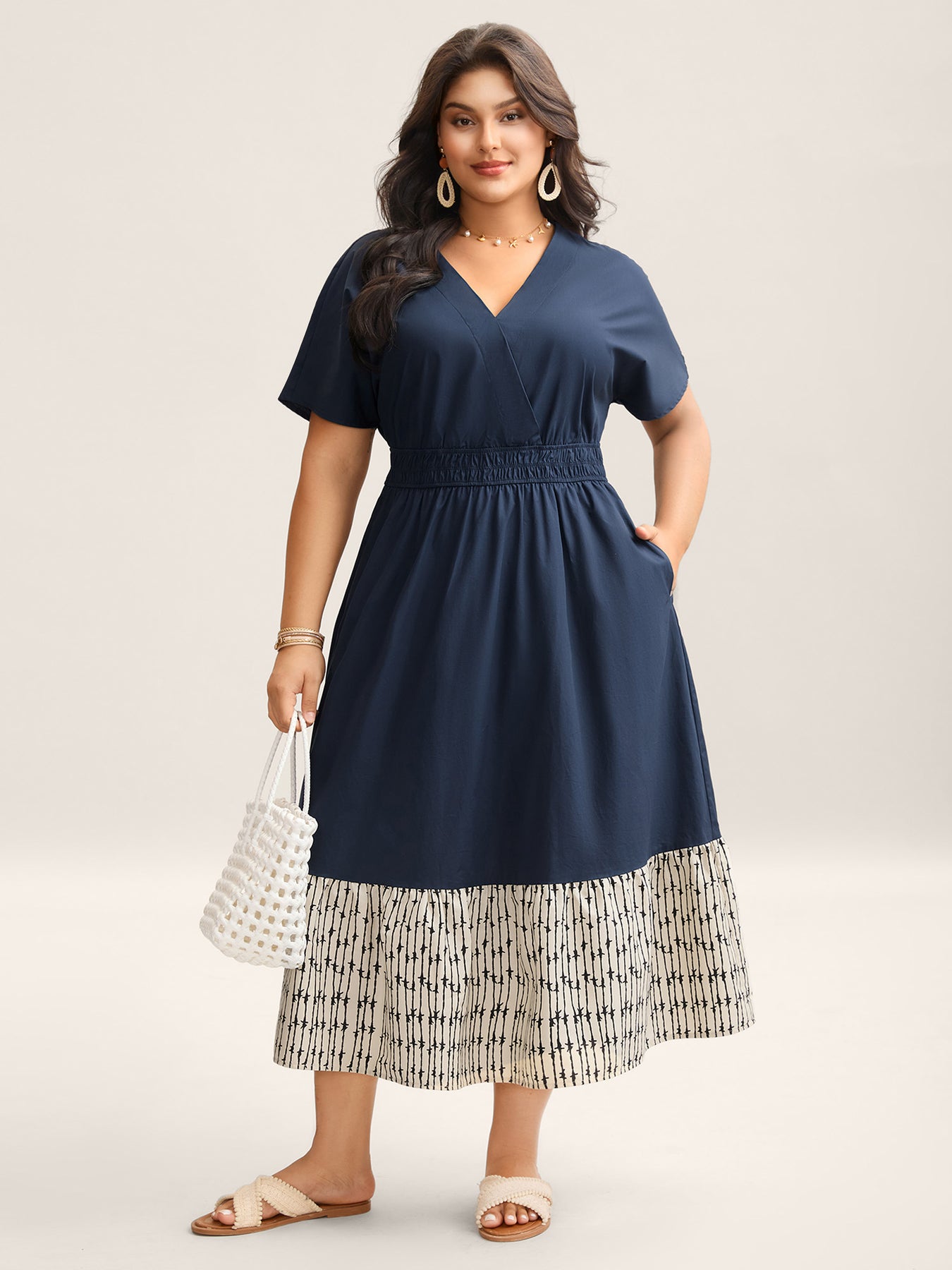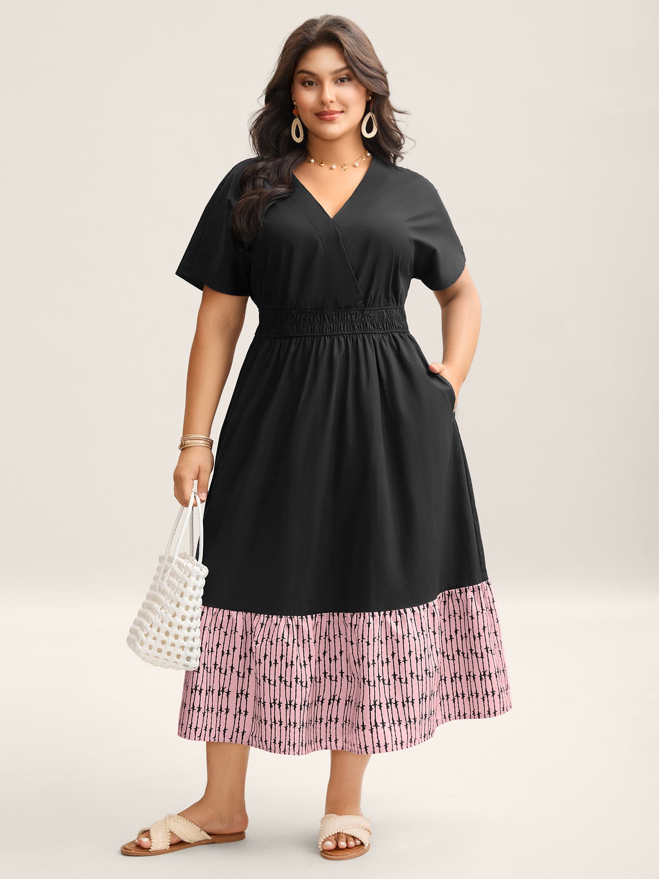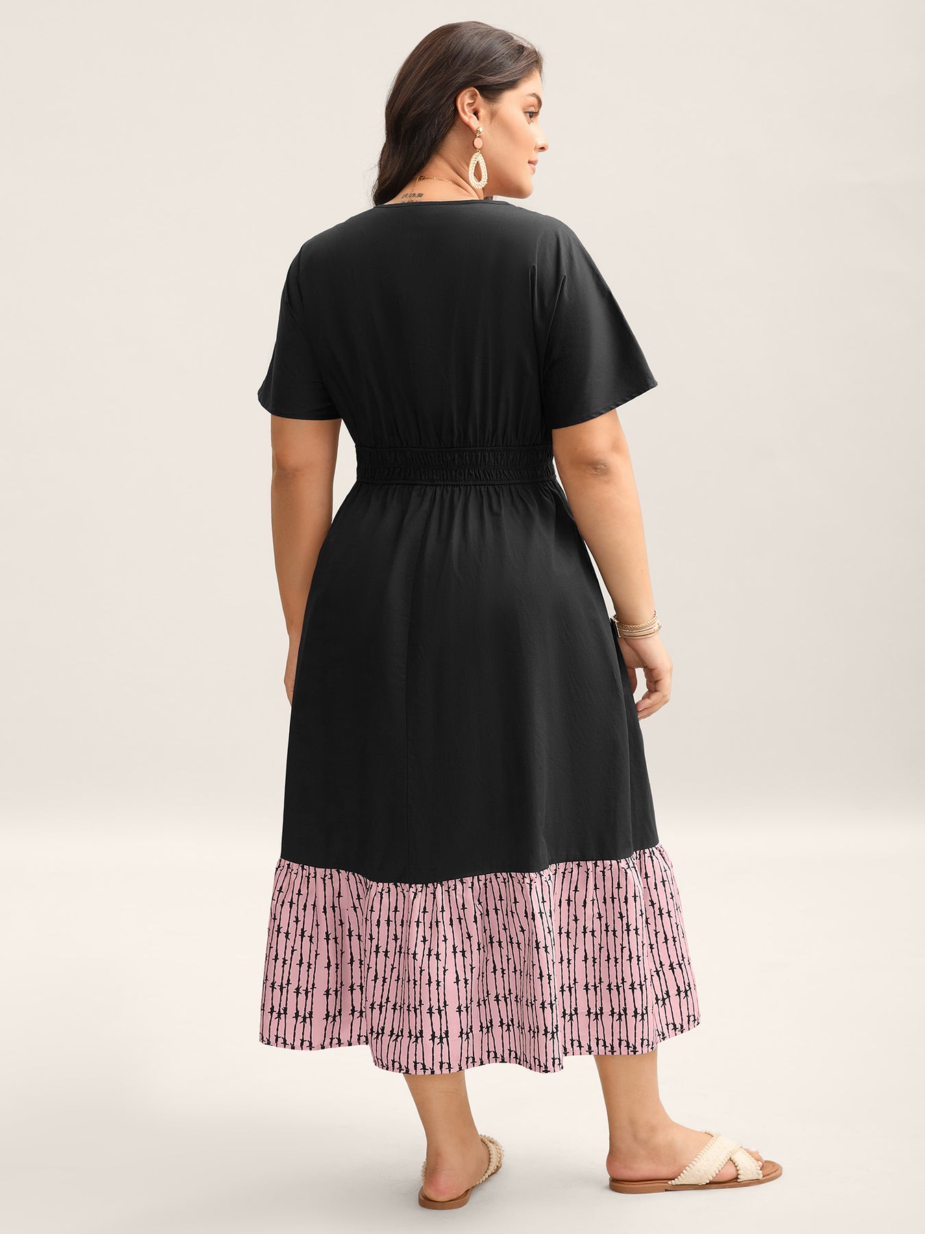 Cotton Color Block Cinched-Waist Spliced Maxi Dress