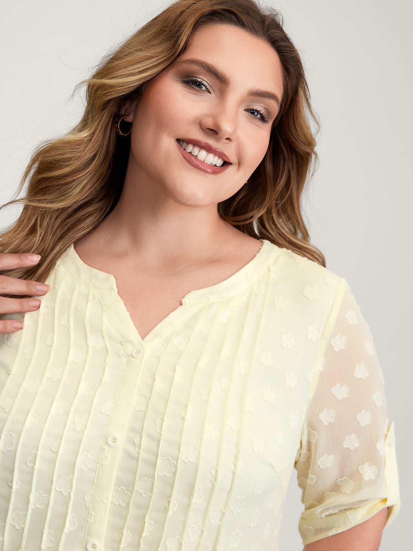 Color Contrast Button Placket Blouse