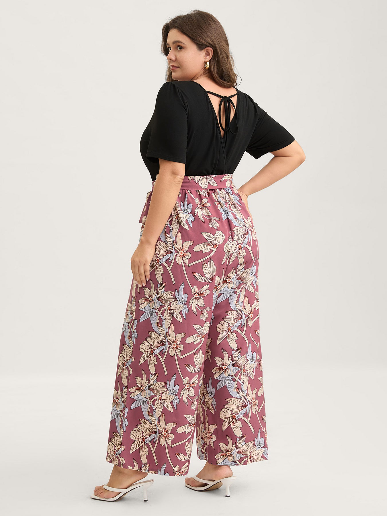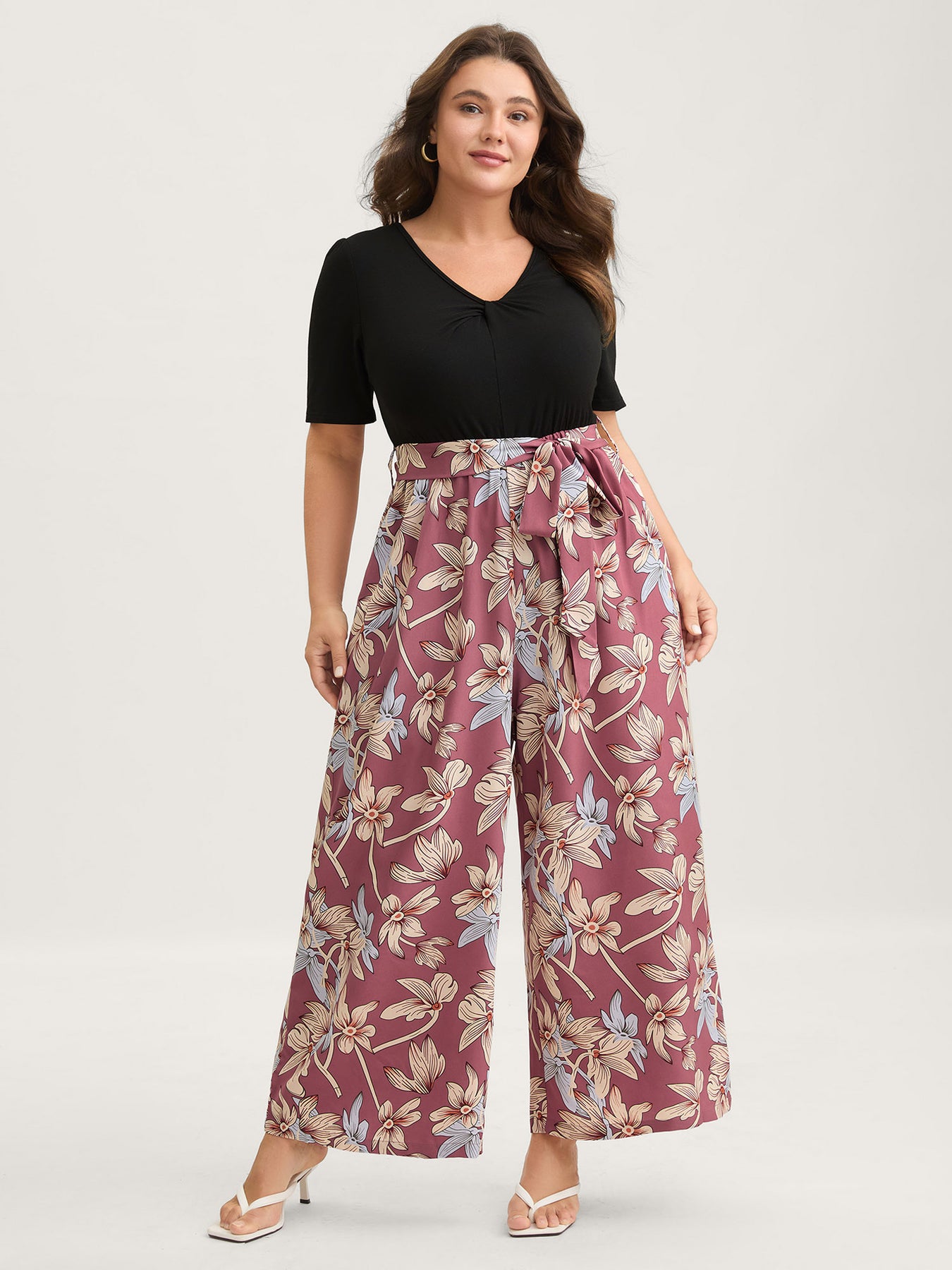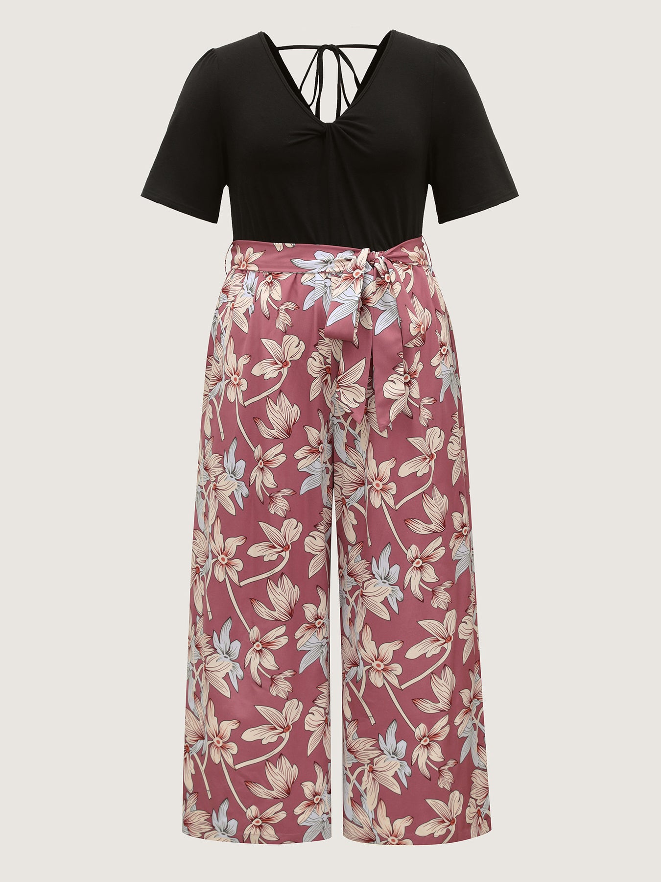 Color Contrast Floral Belted Jumpsuit
