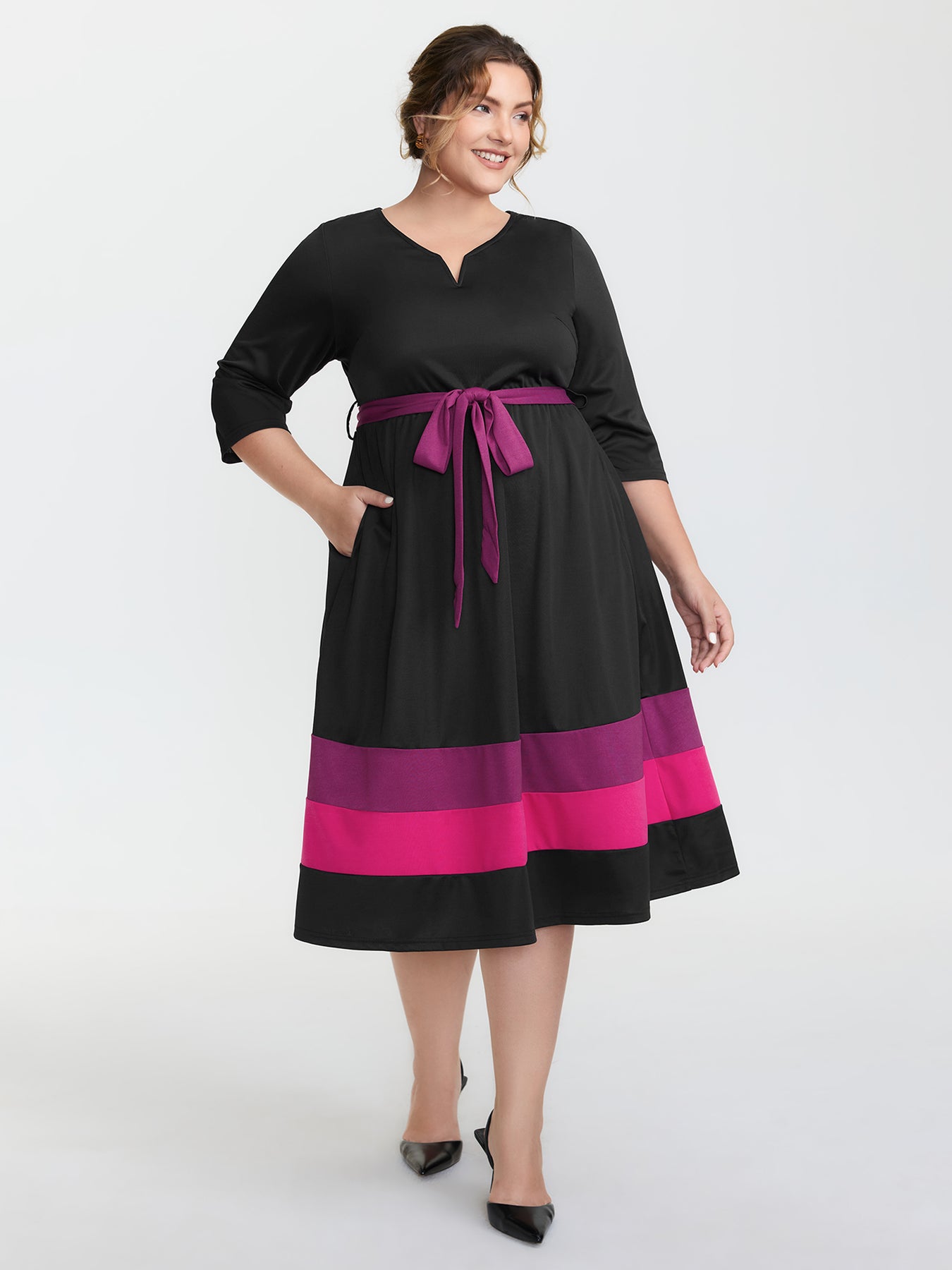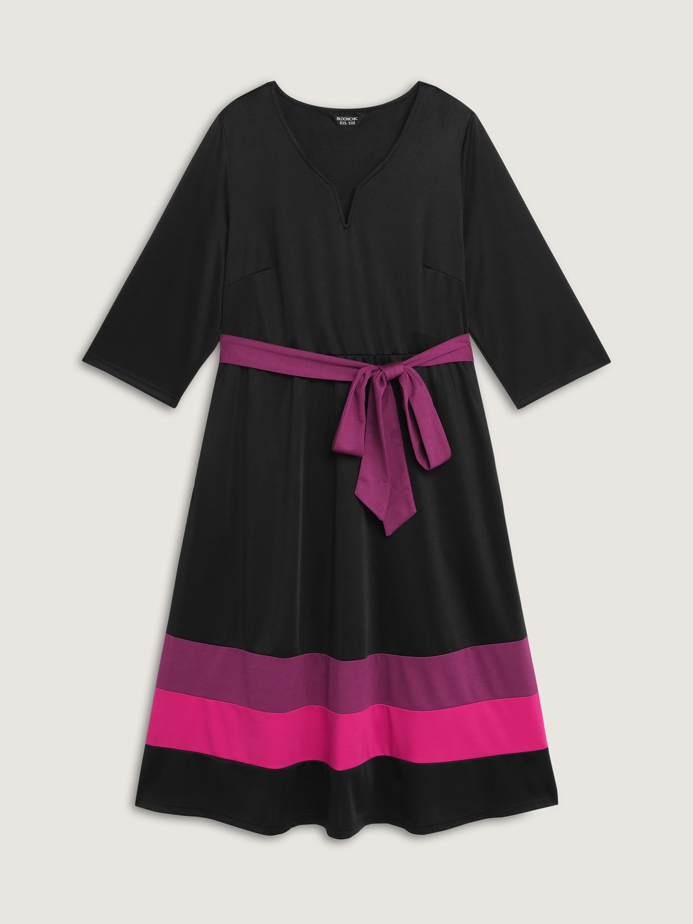 Color Contrast Stretchy Waist-Tie Midi Dress