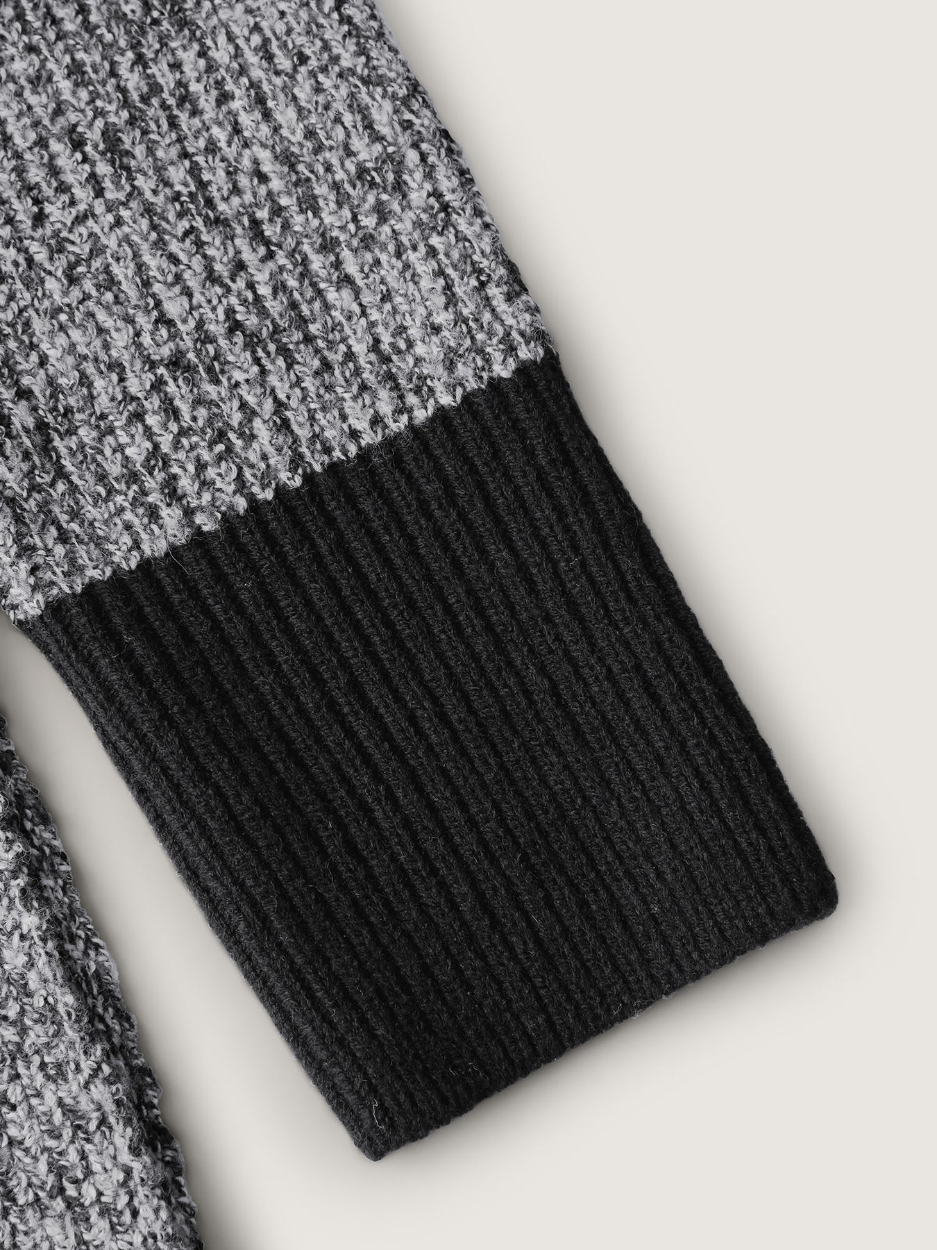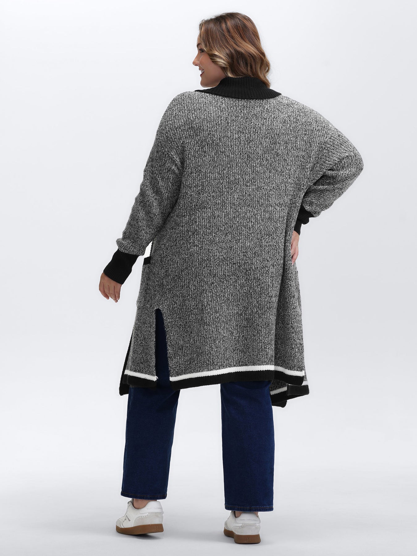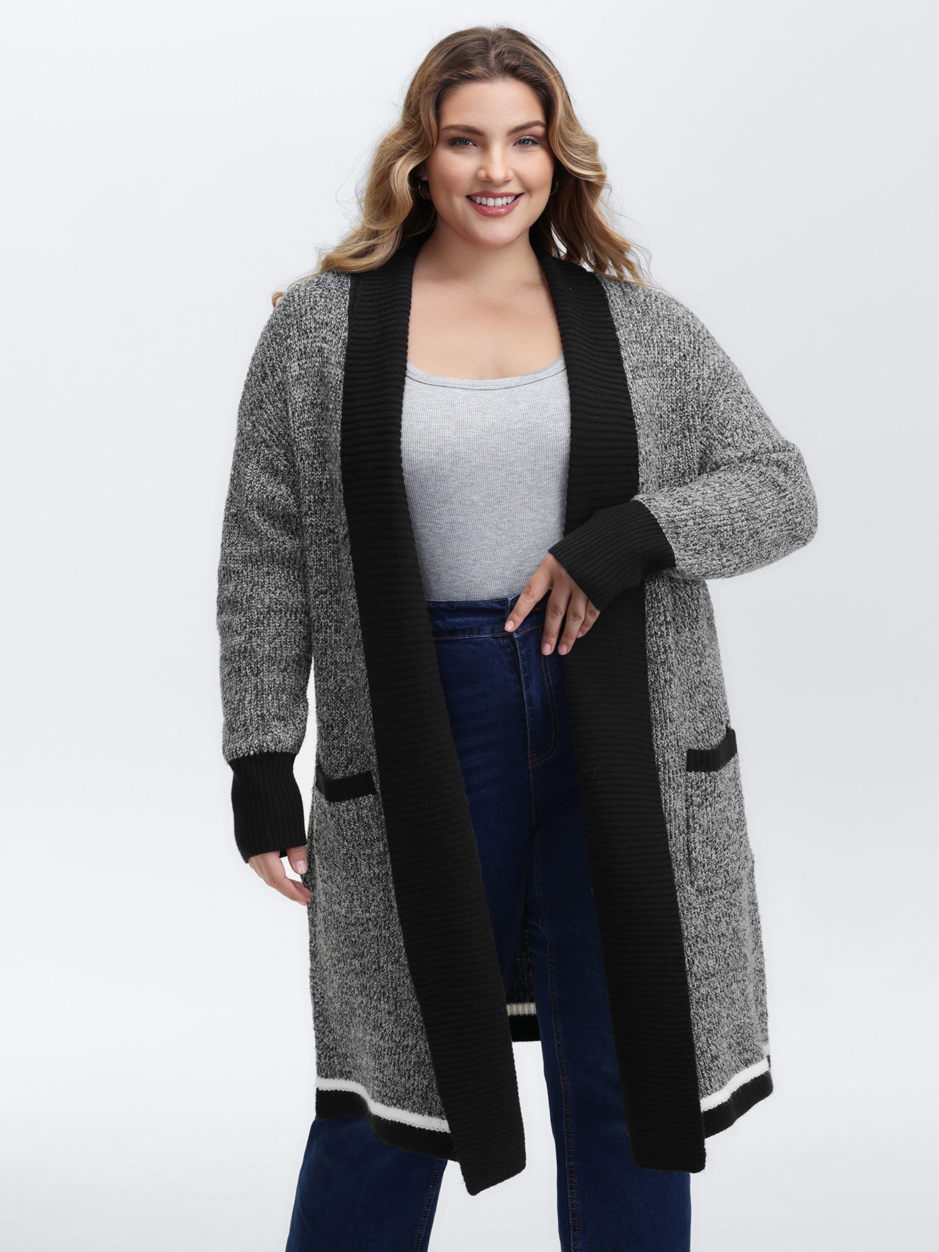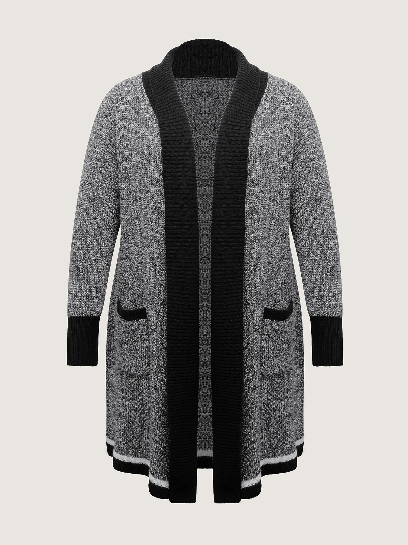 Color Contrast Trim Textured Pocket Knit Cardigan
