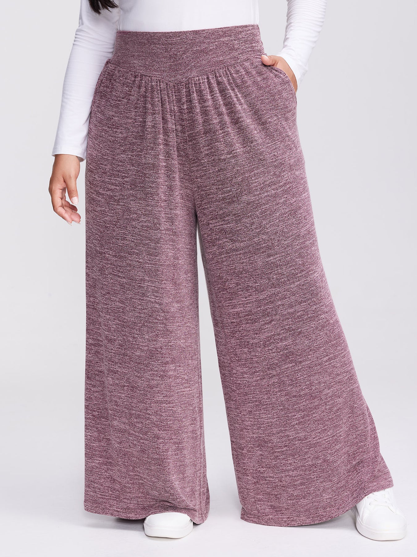 Color-Mix Knit Wide Waistband Pants
