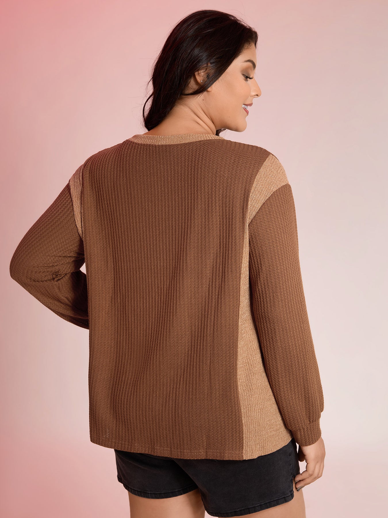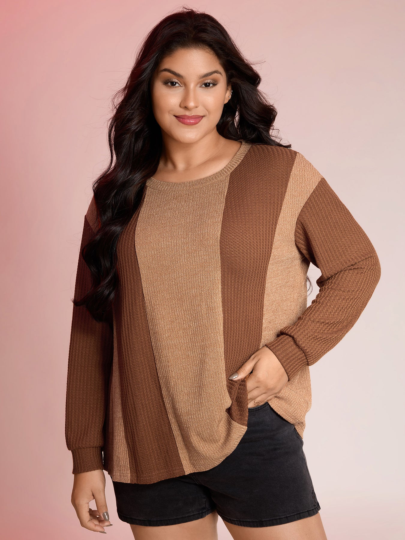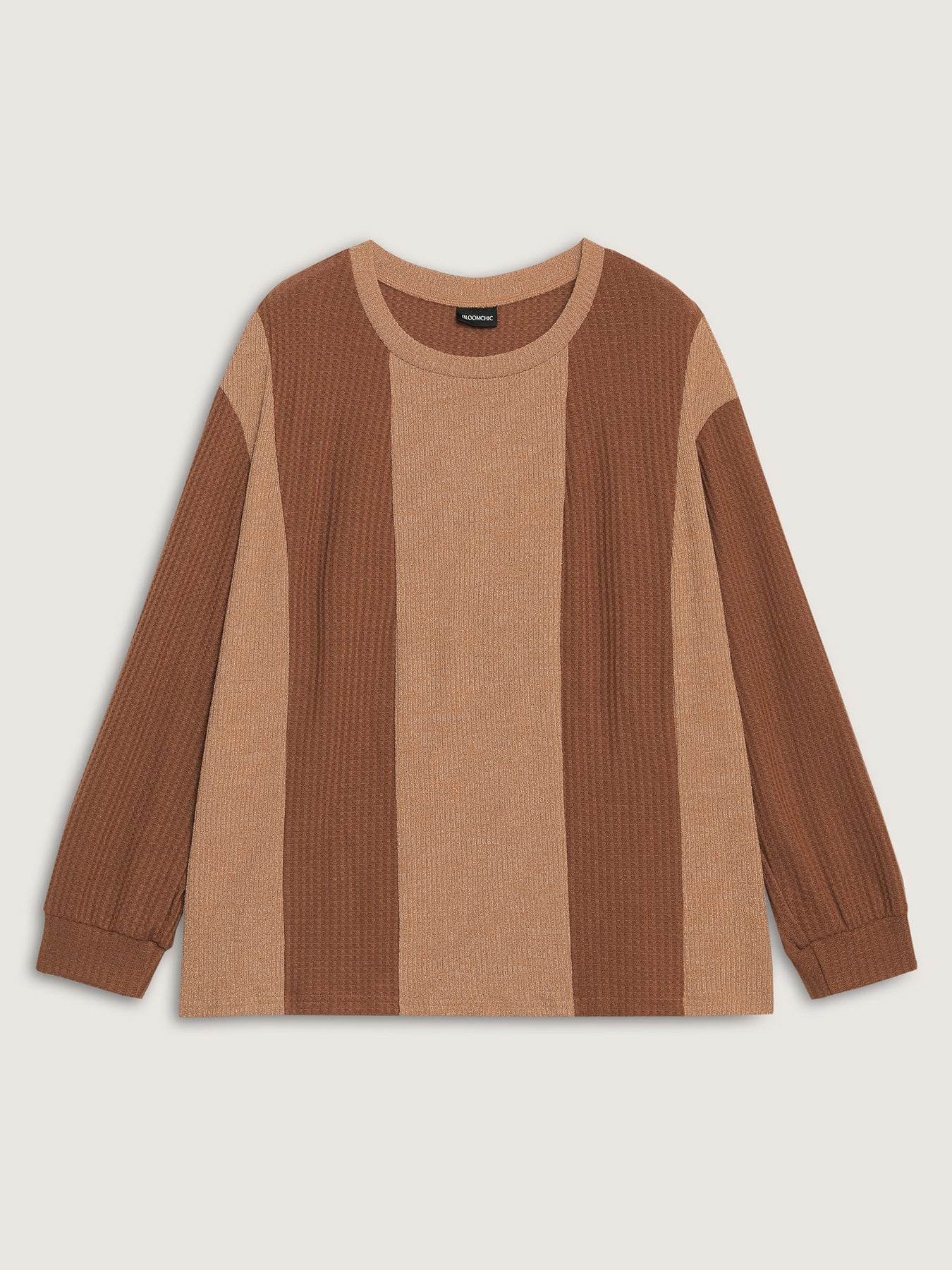 Color Stripe Relaxed Fit Round Neck Sweatshirt