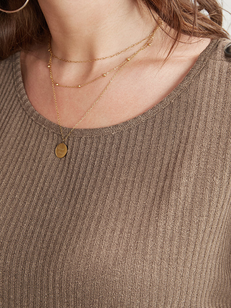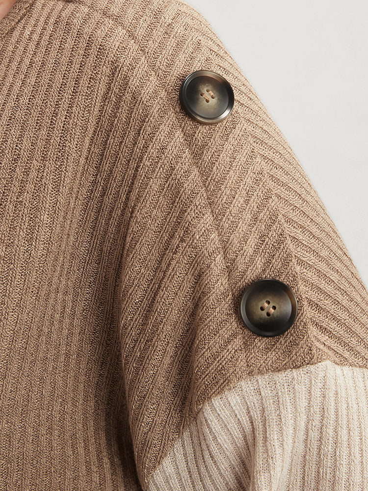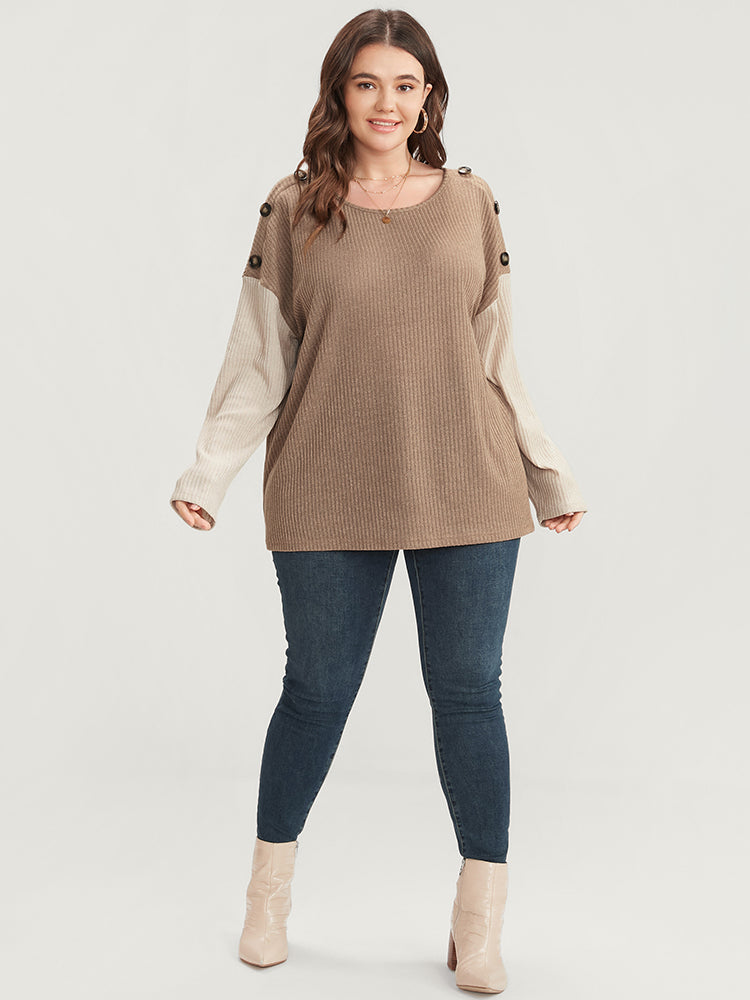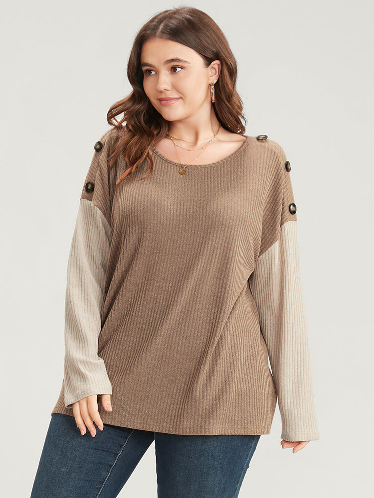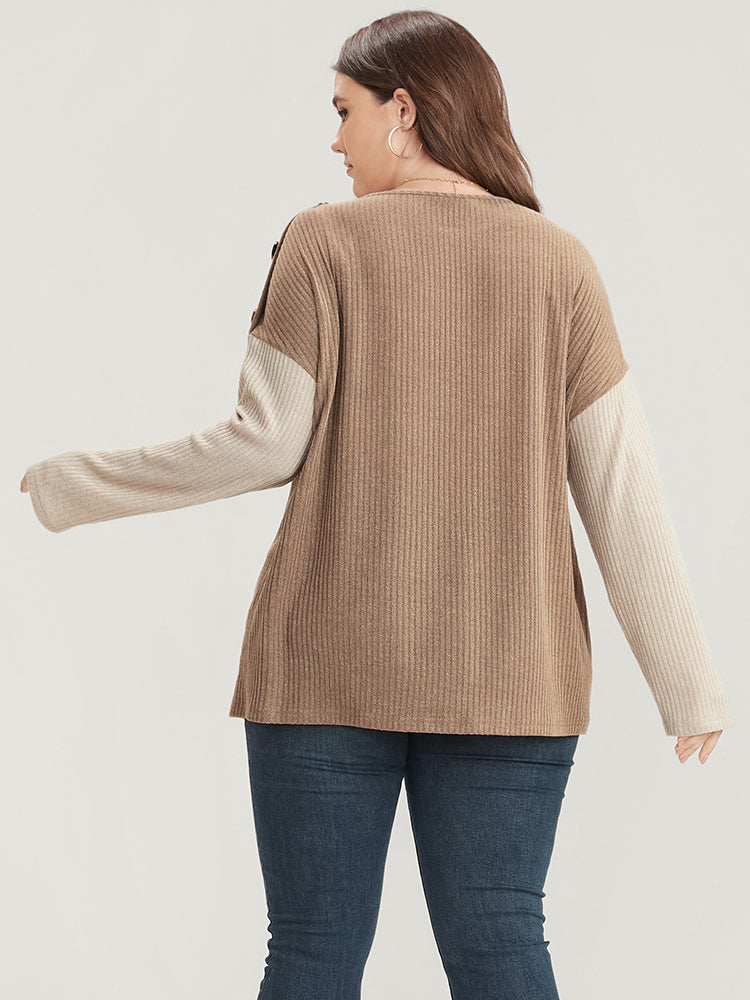 Colorblock Contrast Button Detail Rib Knit Sweatshirt