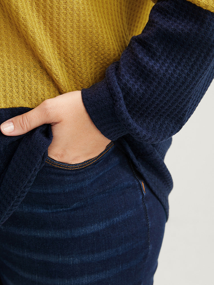 Colorblock Contrast Button Detail Waffle Knit Sweatshirt