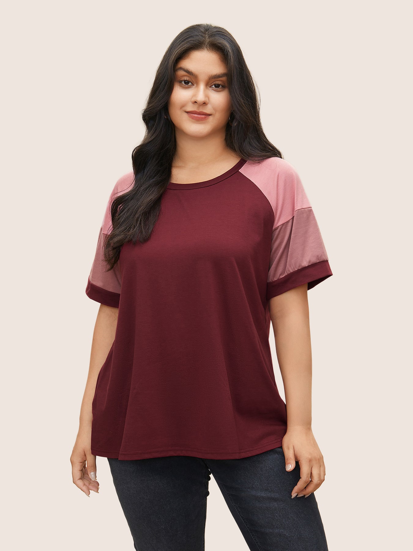Colorblock Contrast Crew Neck Raglan Sleeve T-shirt