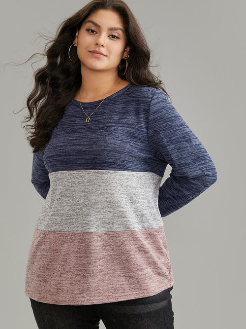Colorblock Contrast Heather Crew Neck Sweatshirt