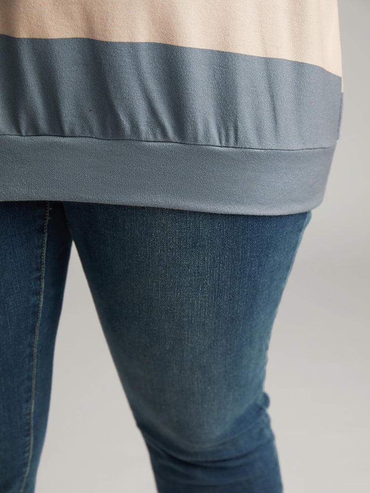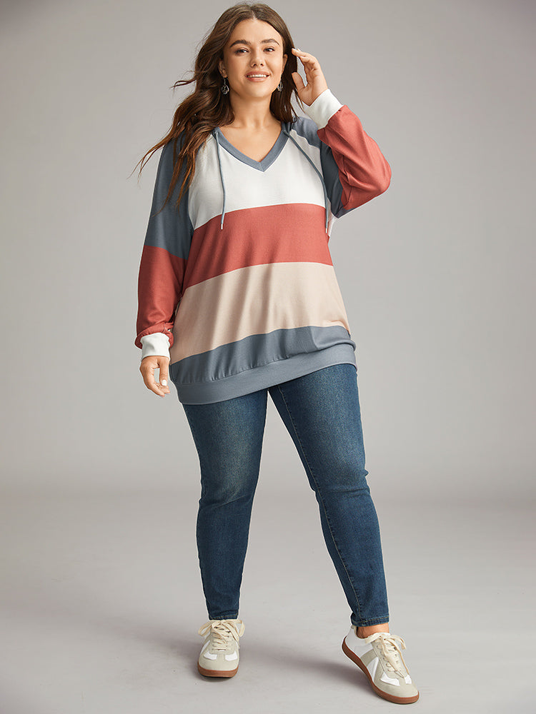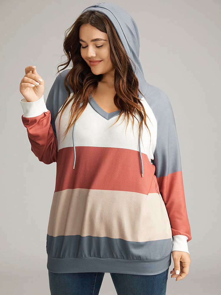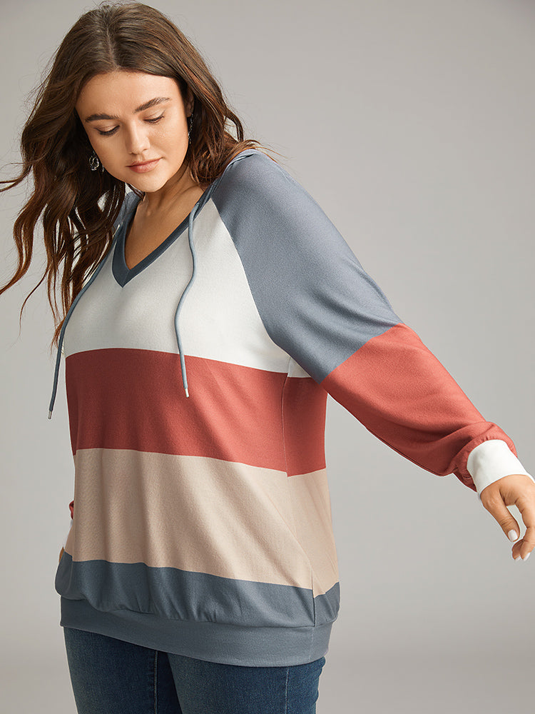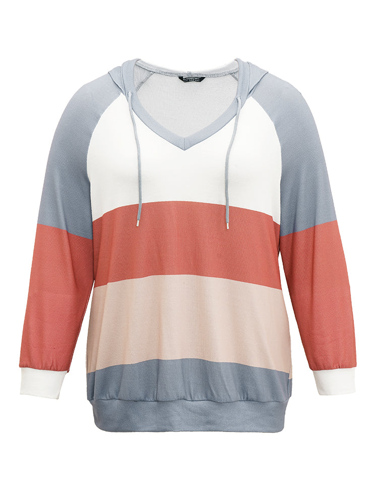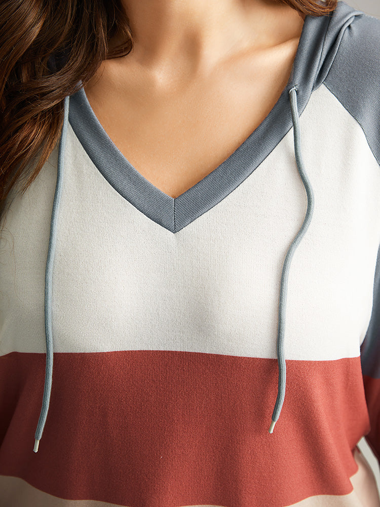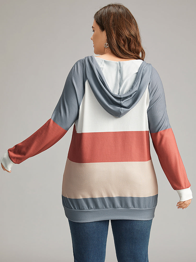 Colorblock Contrast Hooded Drawstring Sweatshirt