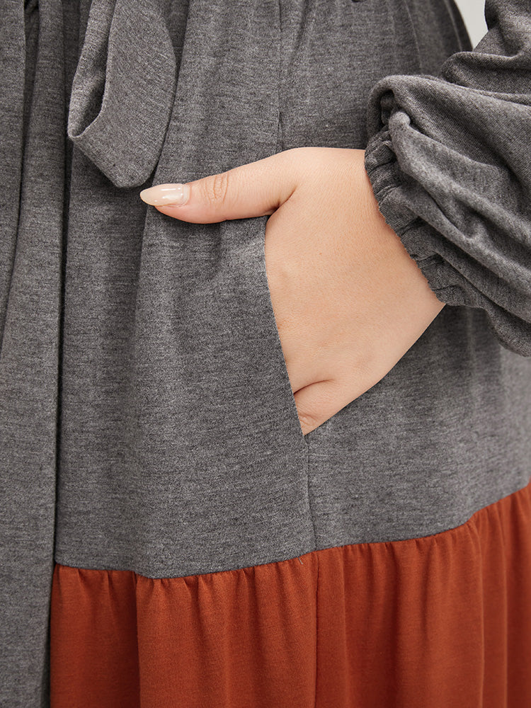 Colorblock Contrast Pocket Wrap Belted Ruffle Tiered Dress