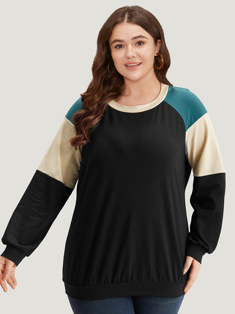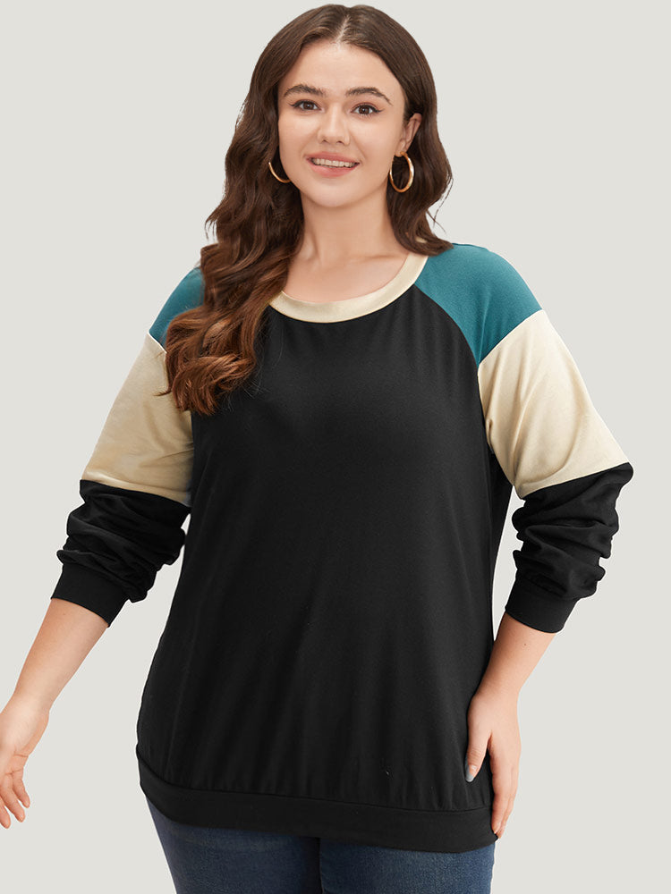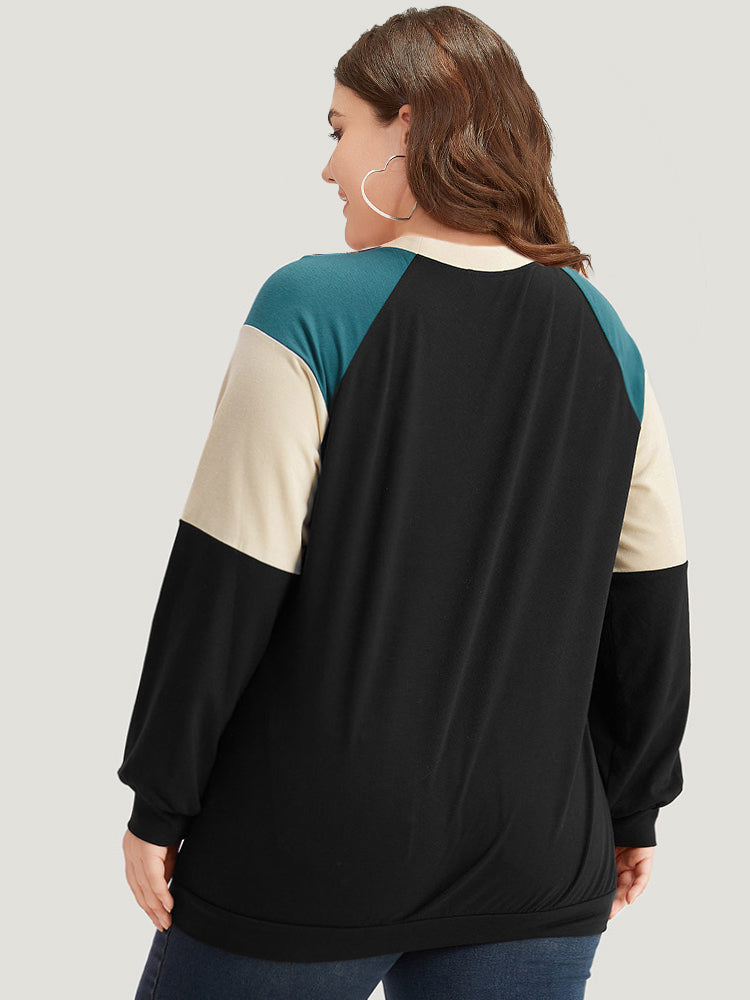 Colorblock Contrast Raglan Sleeve Sweatshirt