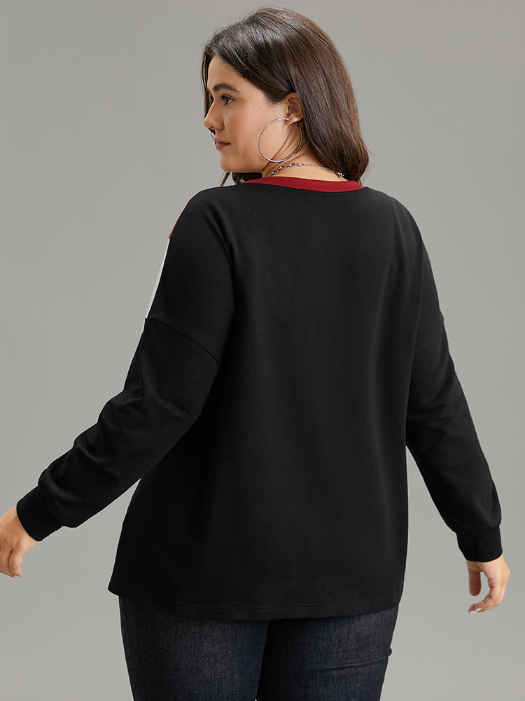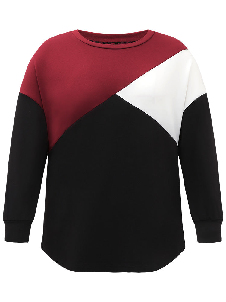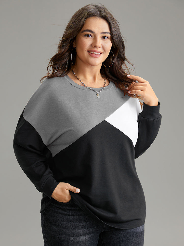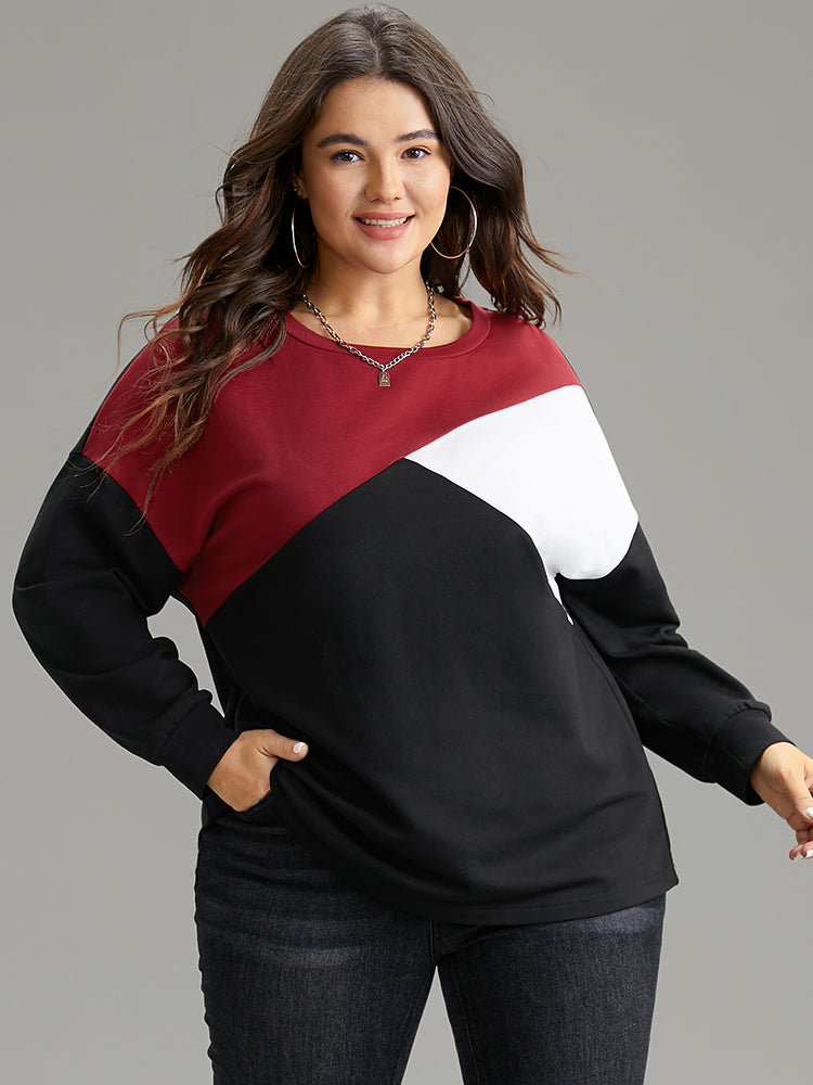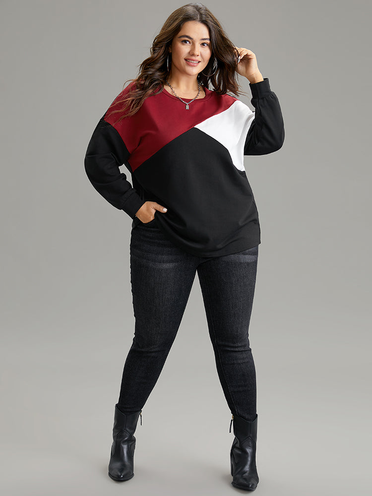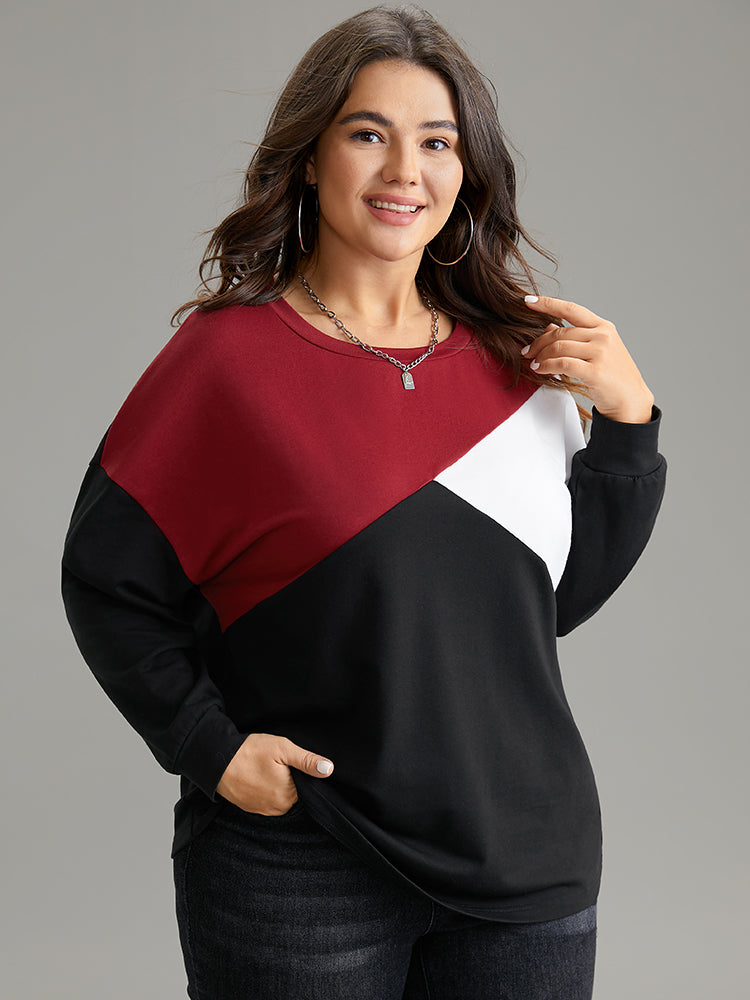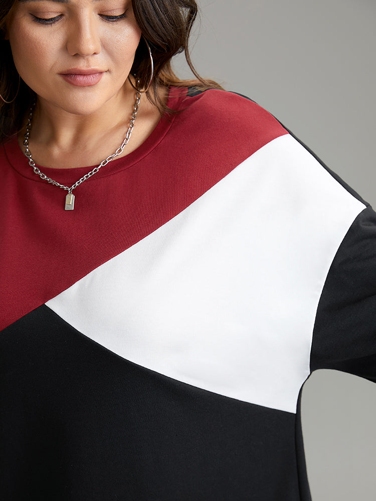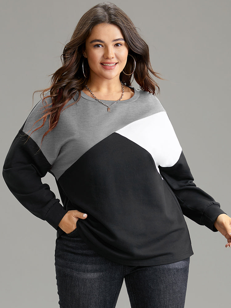 Colorblock Contrast Round Neck Drop Shoulder Sweatshirt