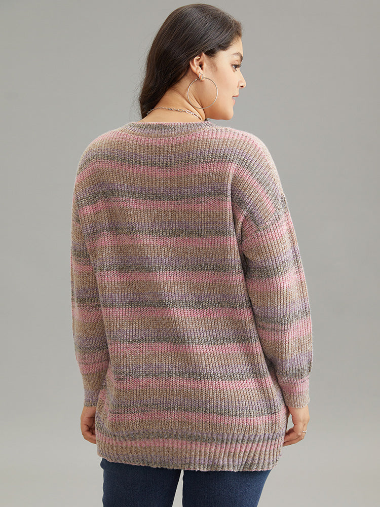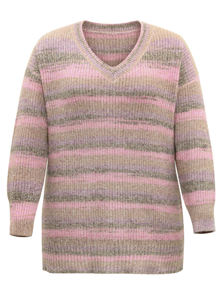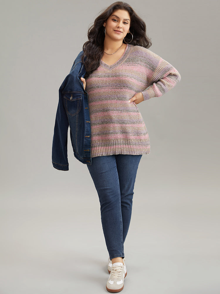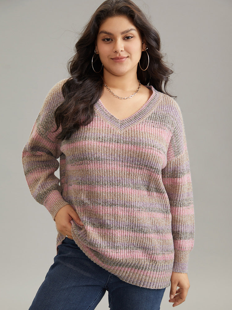 Colorblock Ombre Heather Loose V Neck Pullover