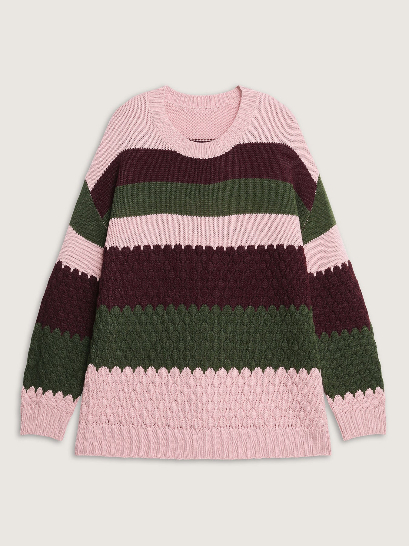 Colorblock Textured Ribbed Hem Pullover