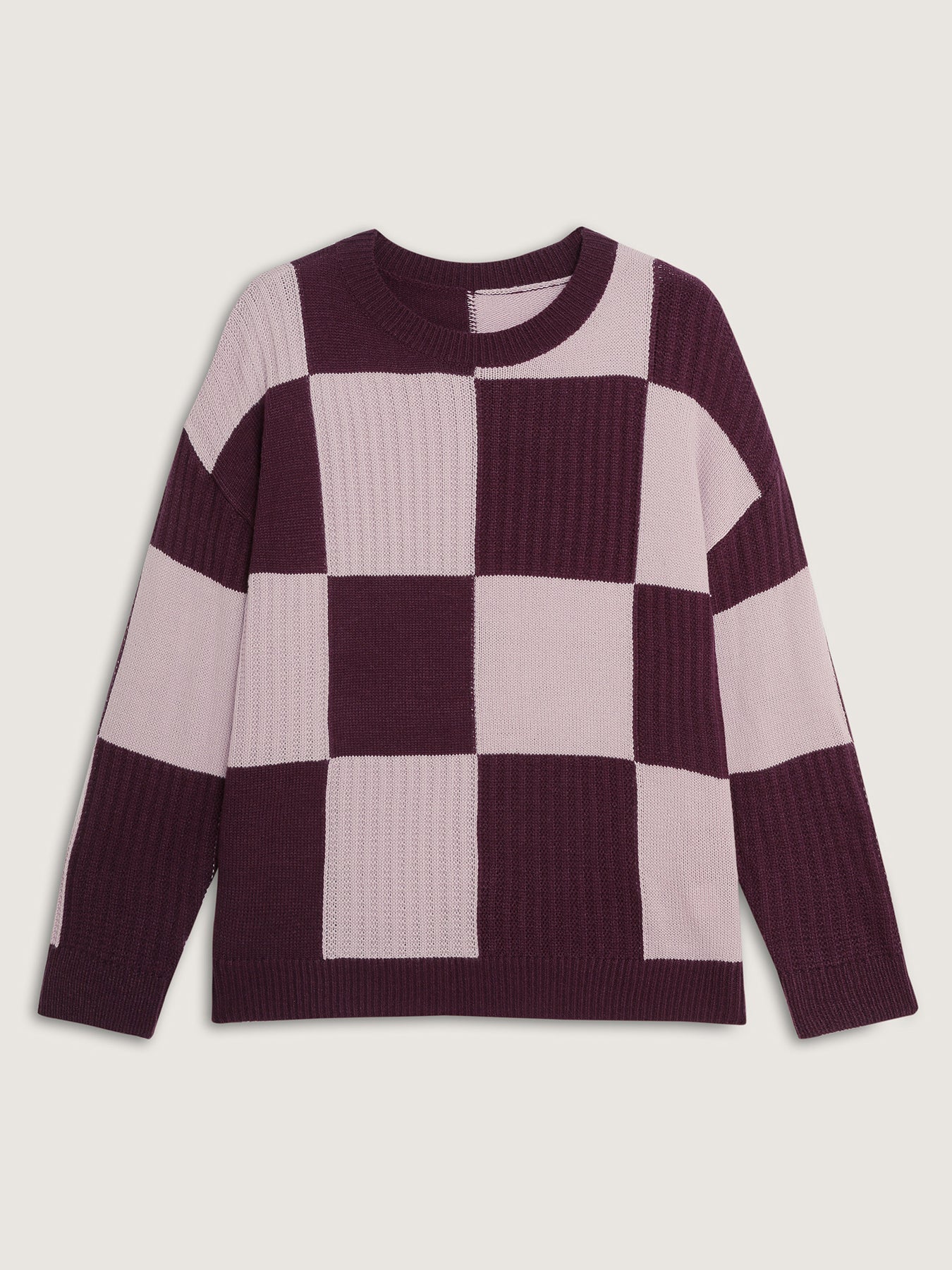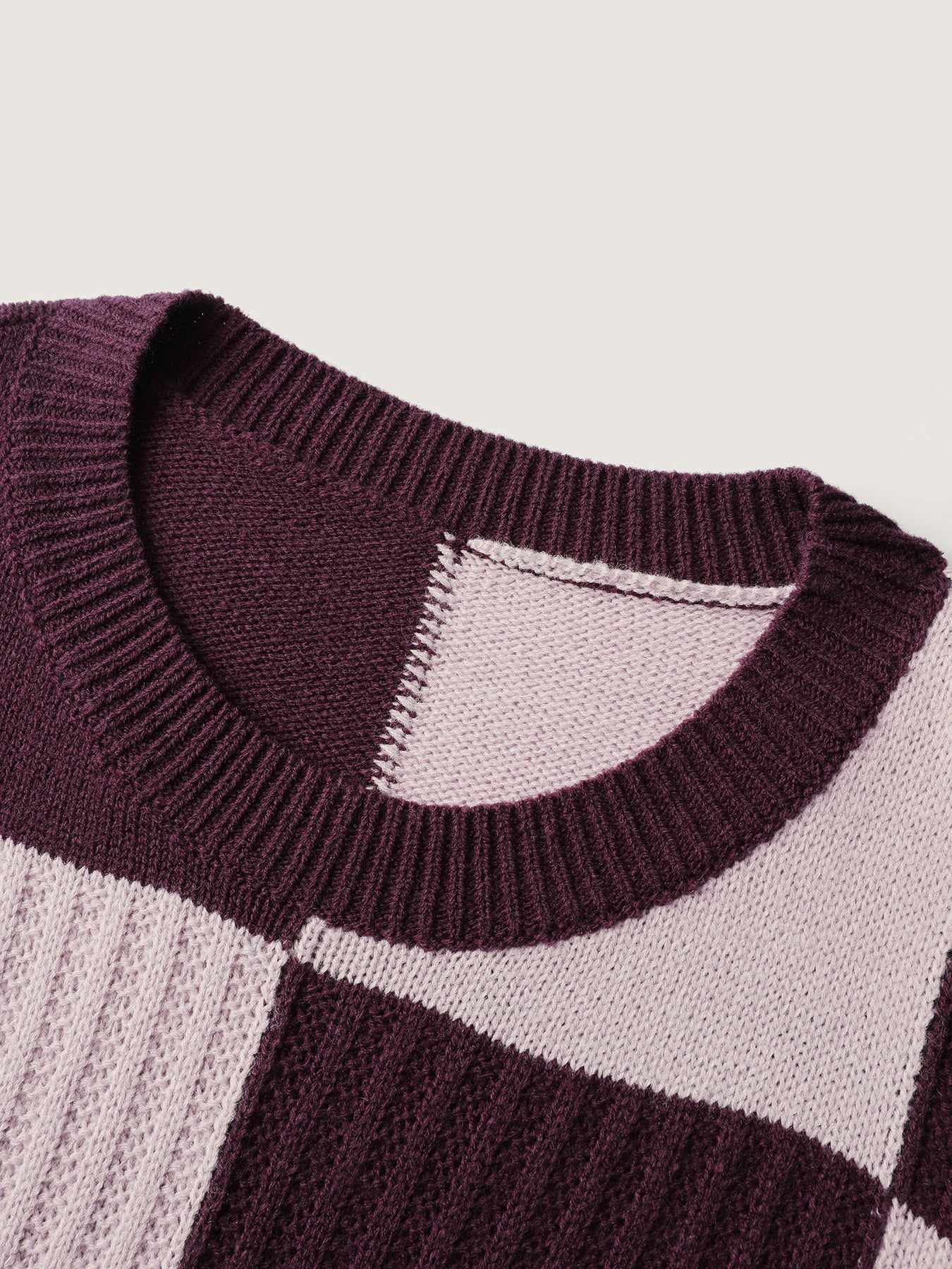 Colorblock Tissue Textured Drop Shoulder Pullover