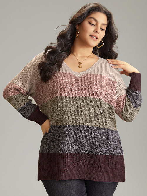Heather Colorblock V Neck Split Hem Pullover