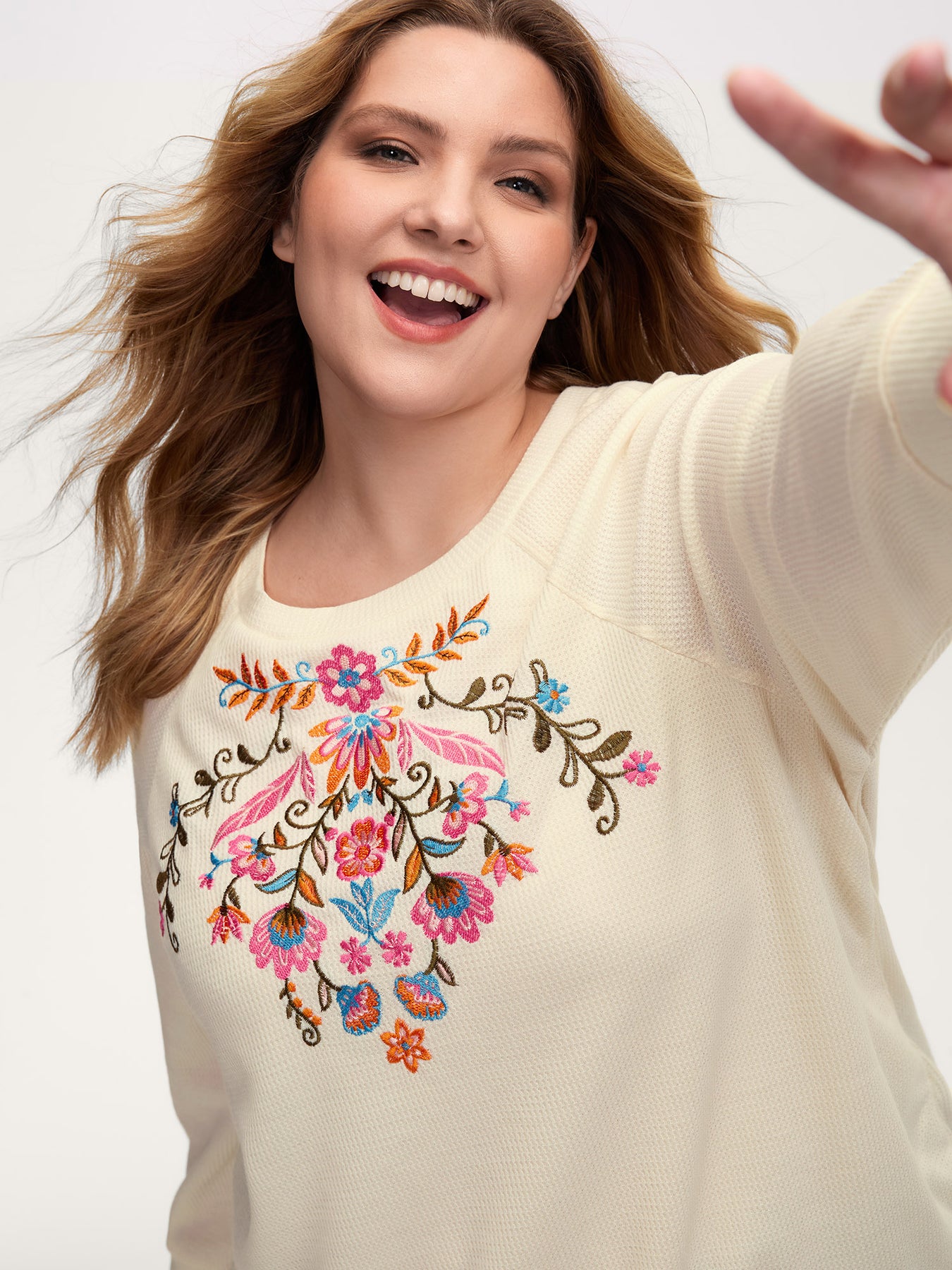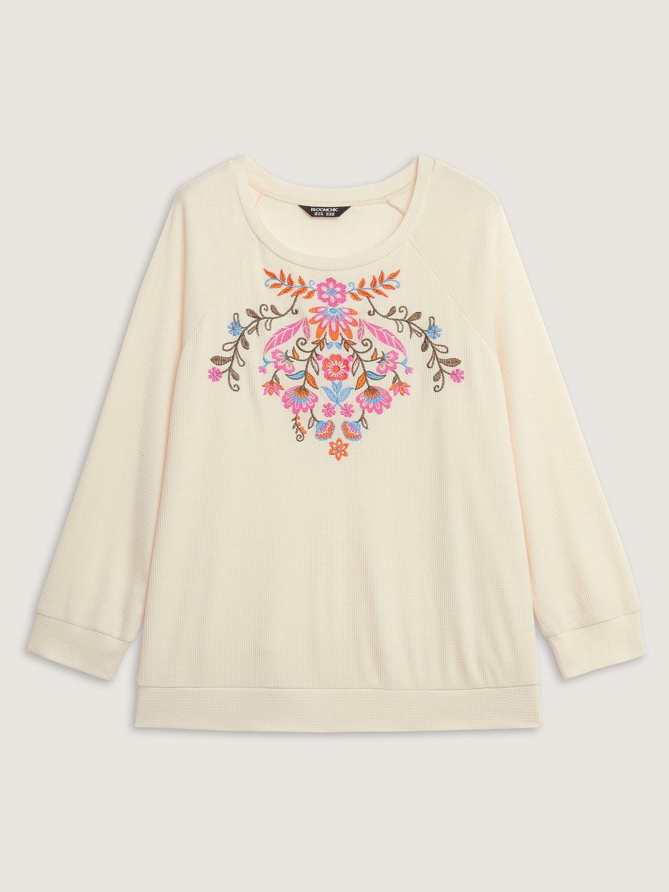 Colorful Floral Embroidery Anti-Abrasion Collar Sweatshirt
