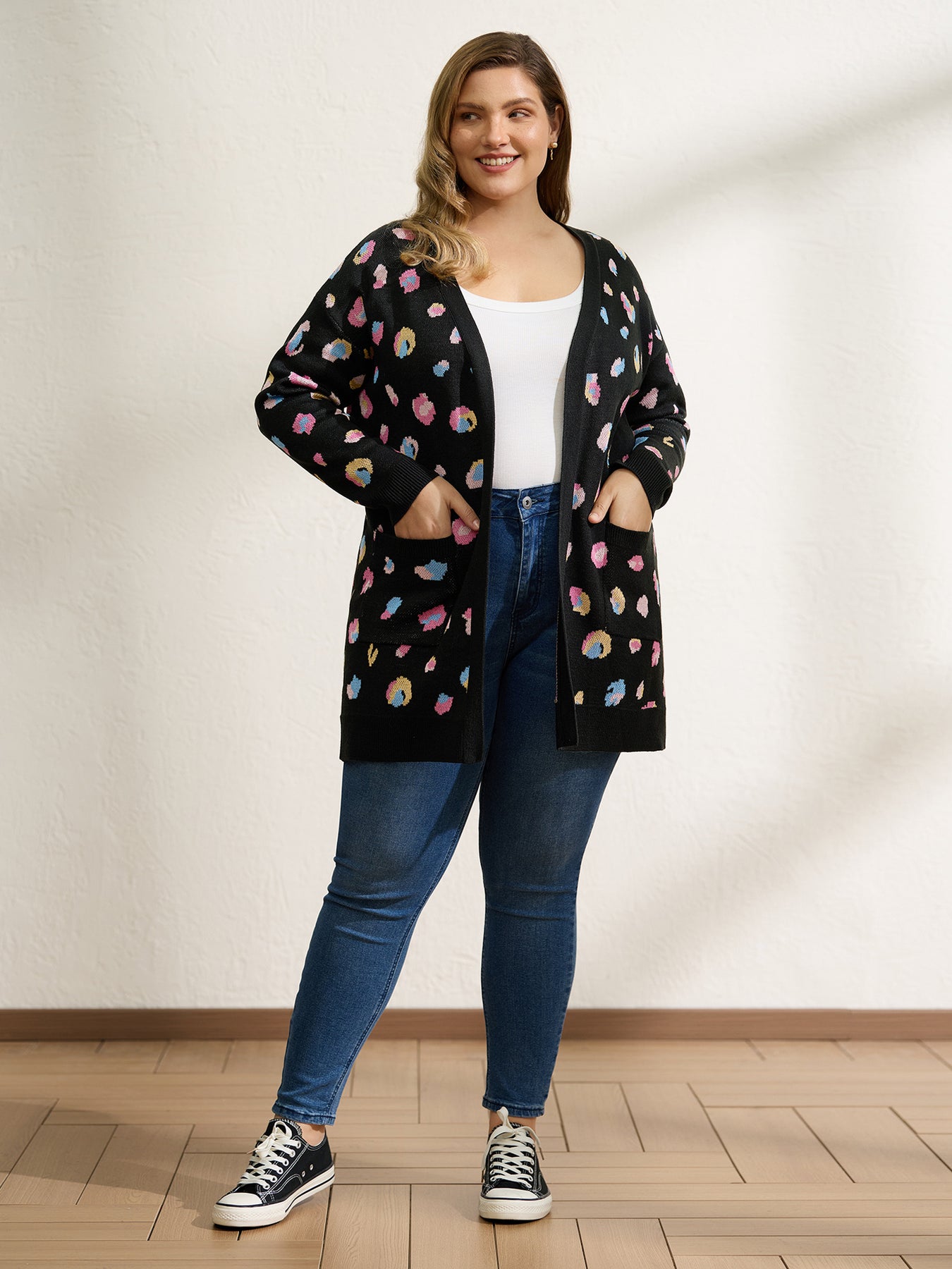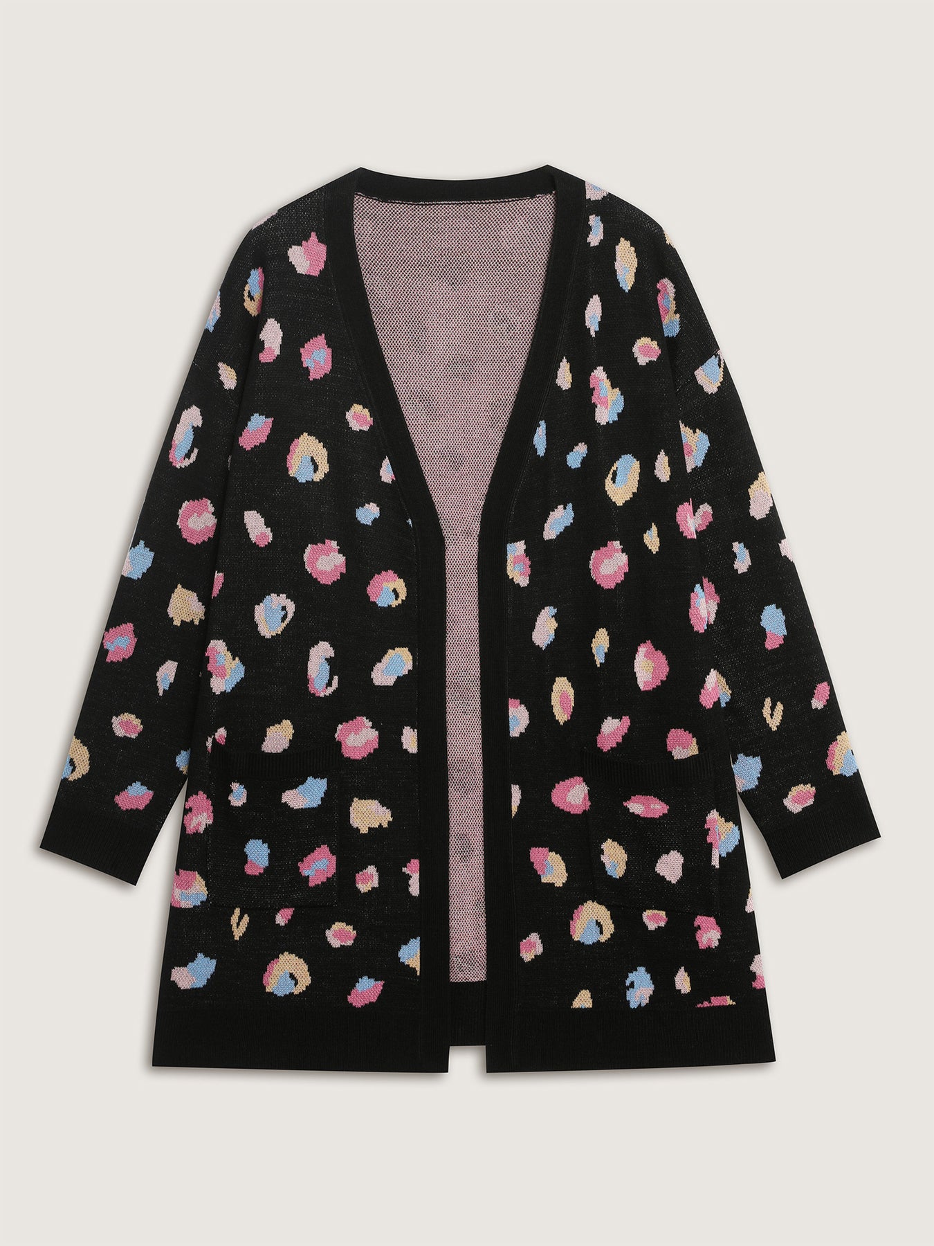 Colorful Leopard Print Pockets Knit Cardigan