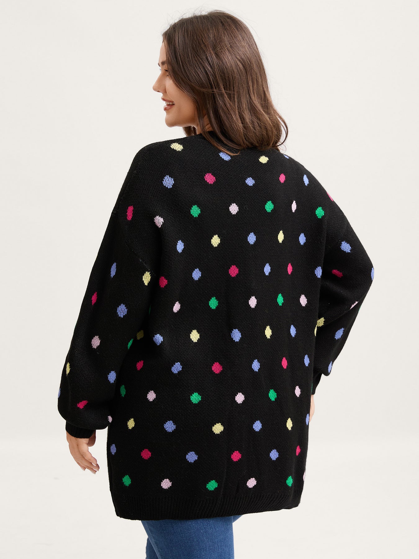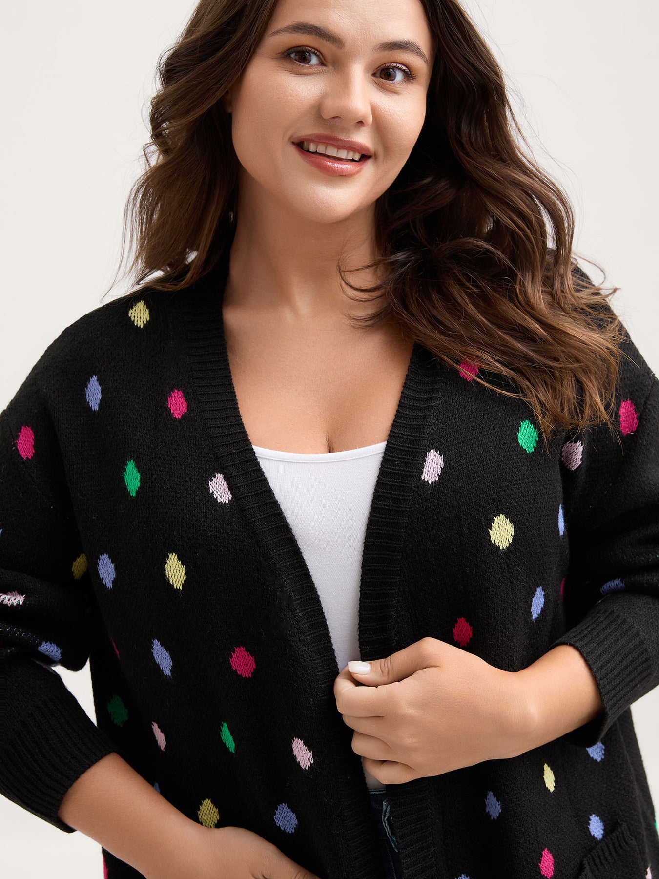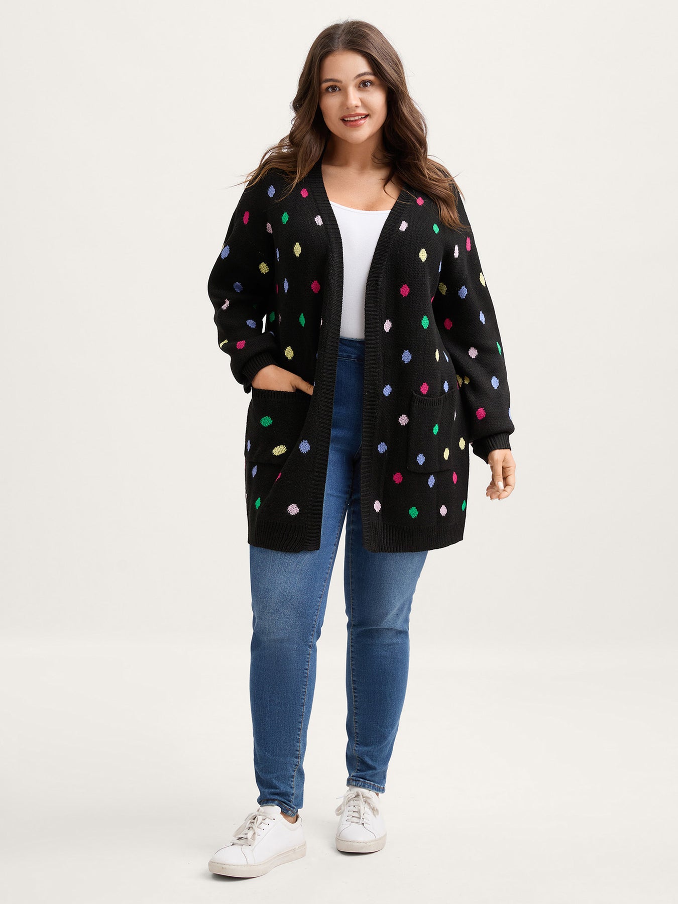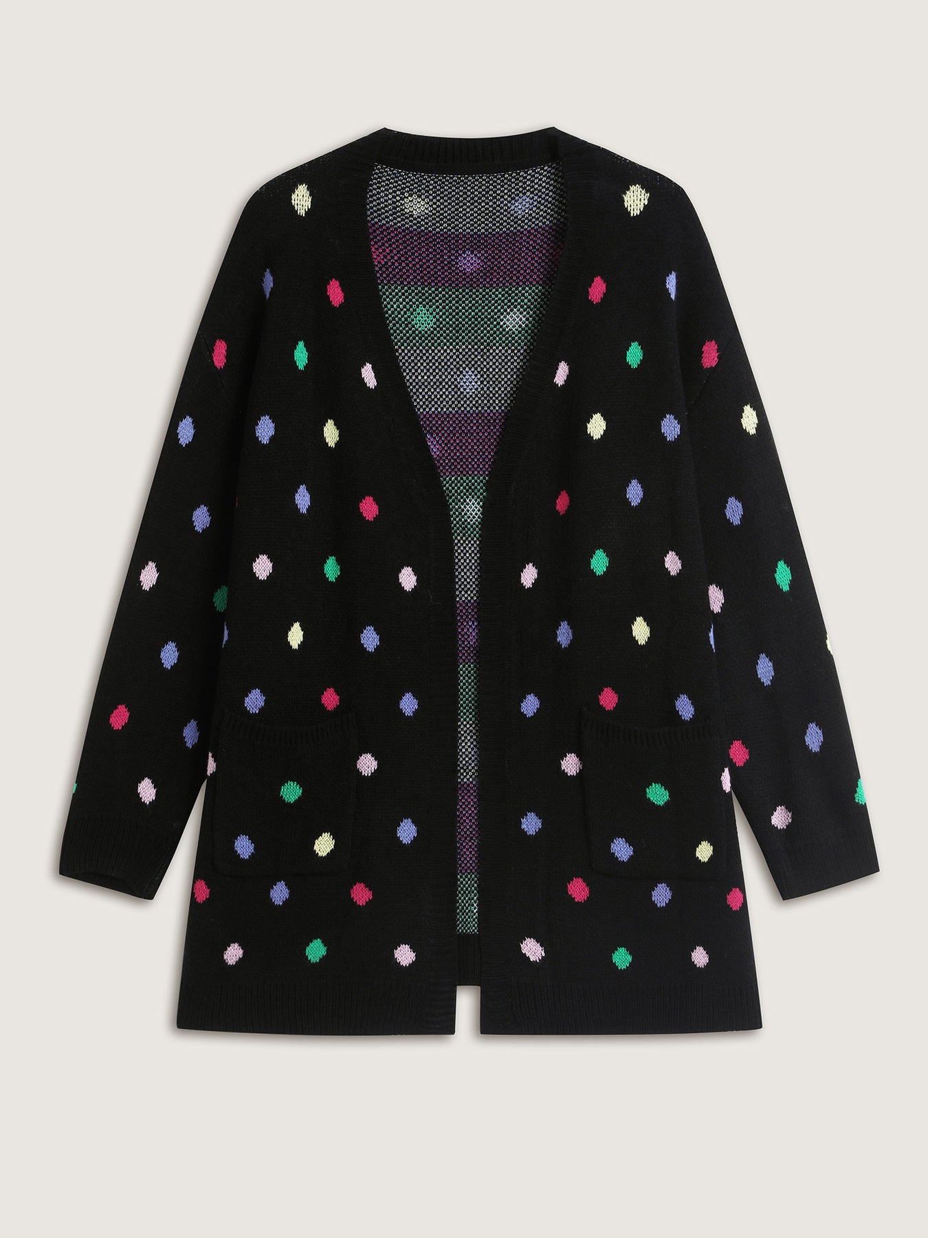 Colorful Polka Dots Pockets Knit Cardigan