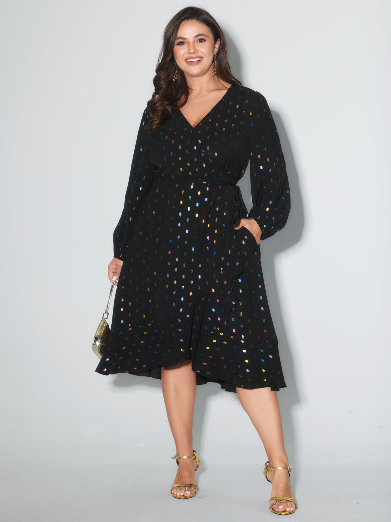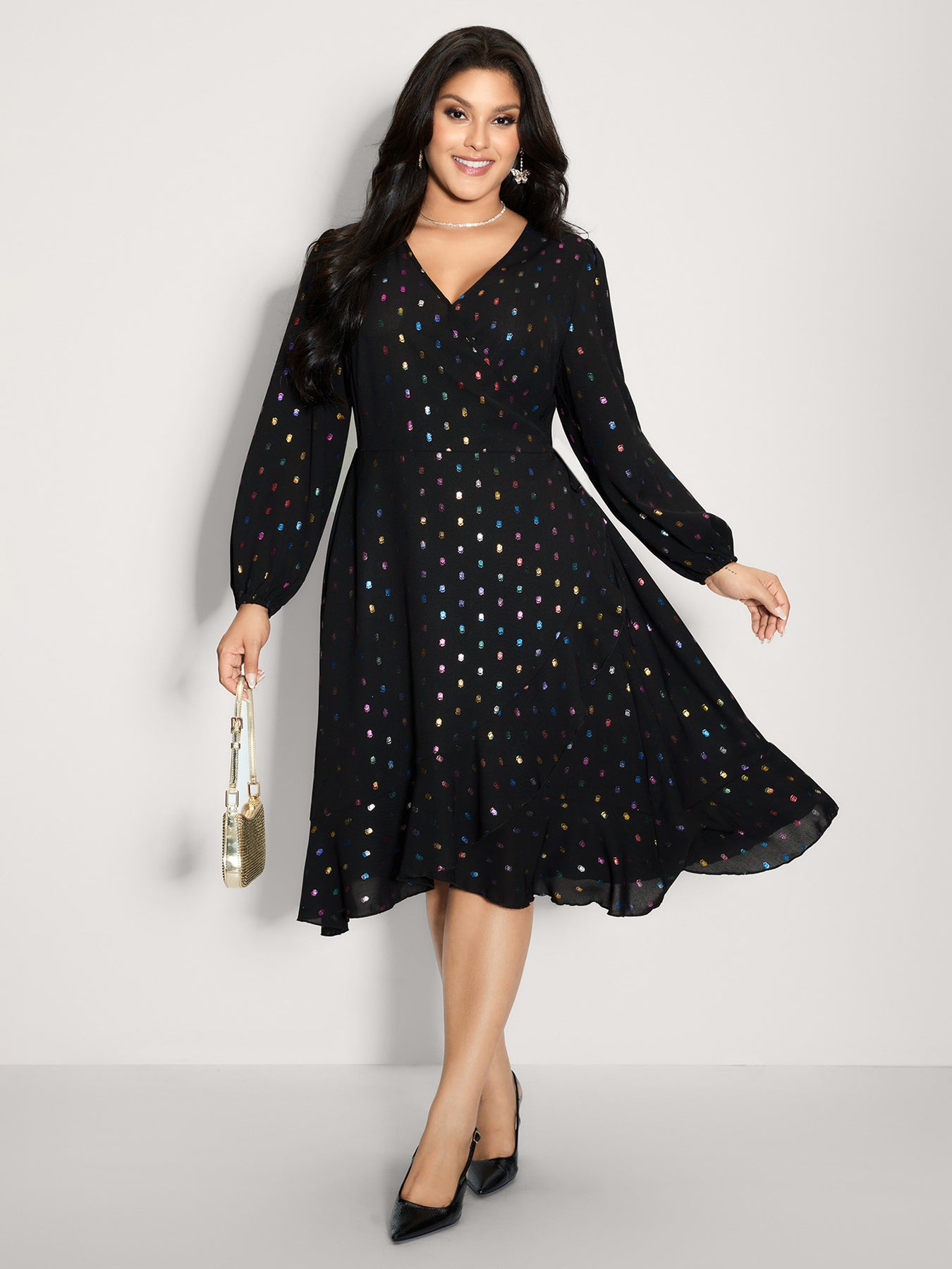 Colorful Shimmery Polka Dots Midi Dress