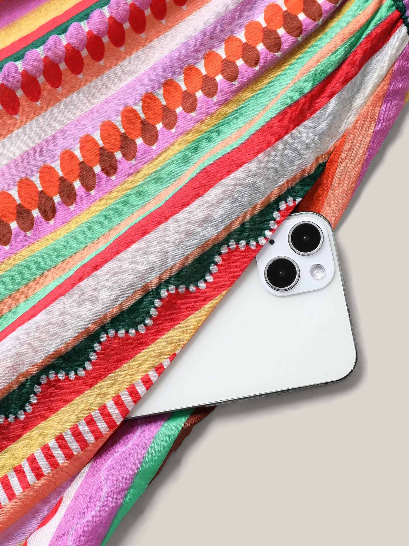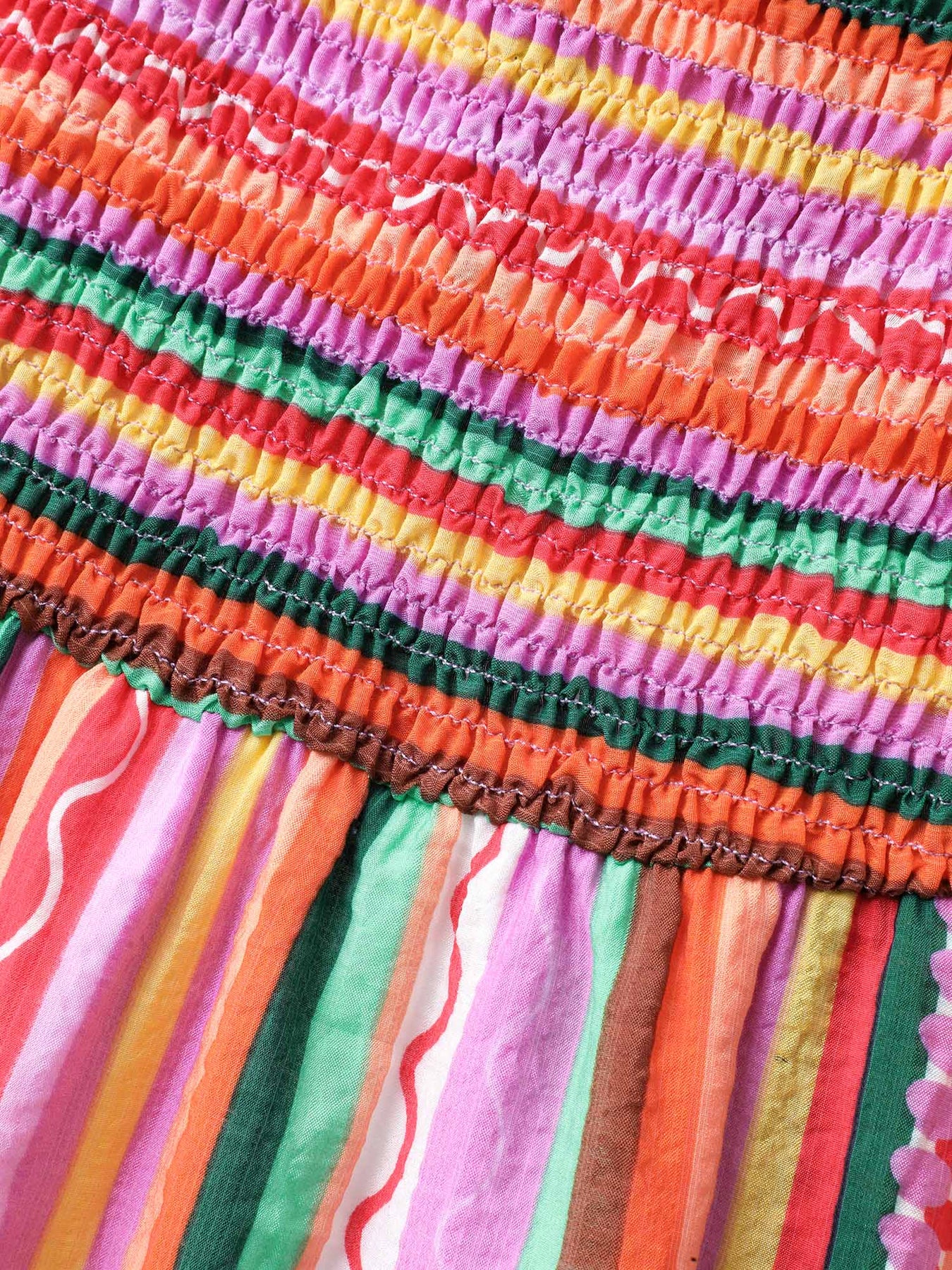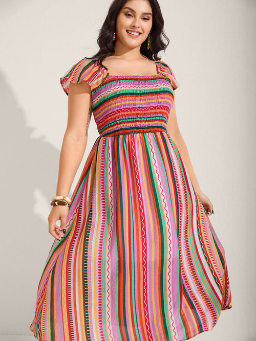 Colorful Stripe Flutter Sleeve Pockets Midi Dress