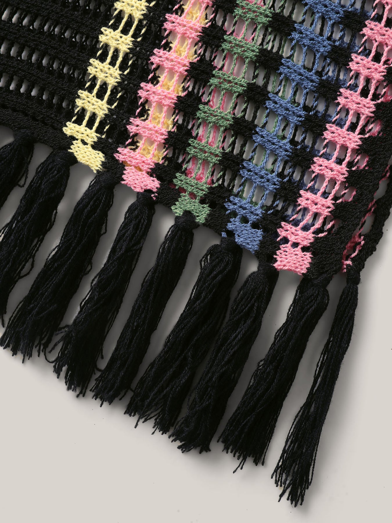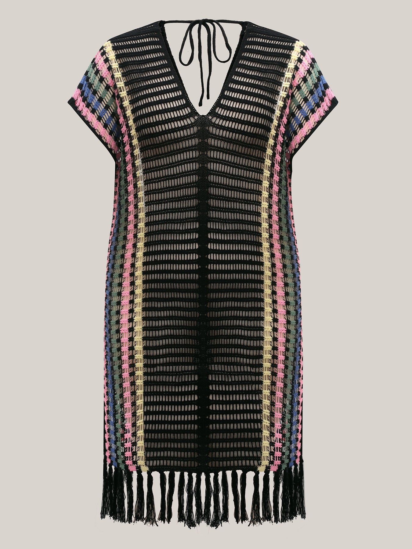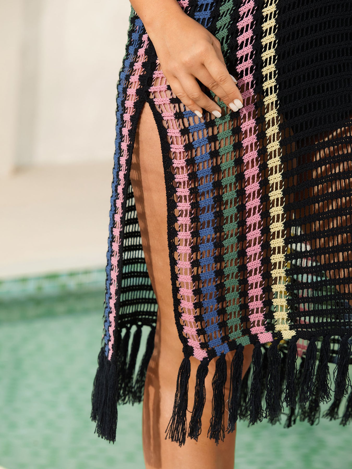 Colorful Stripes Cut-Out Tassel Swim Cover-Up