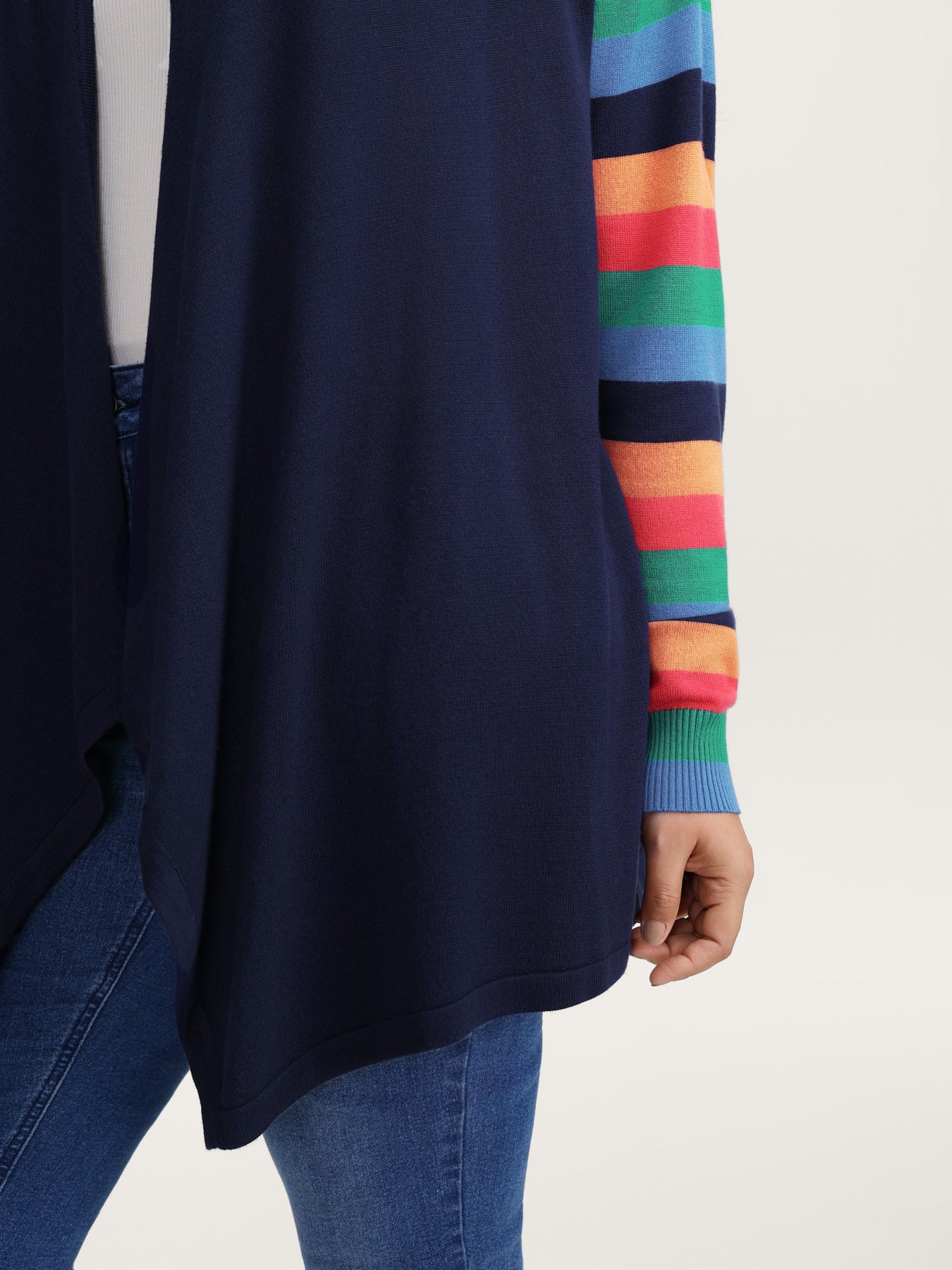 Colorful Stripes Irregular Hem Knit Cardigan