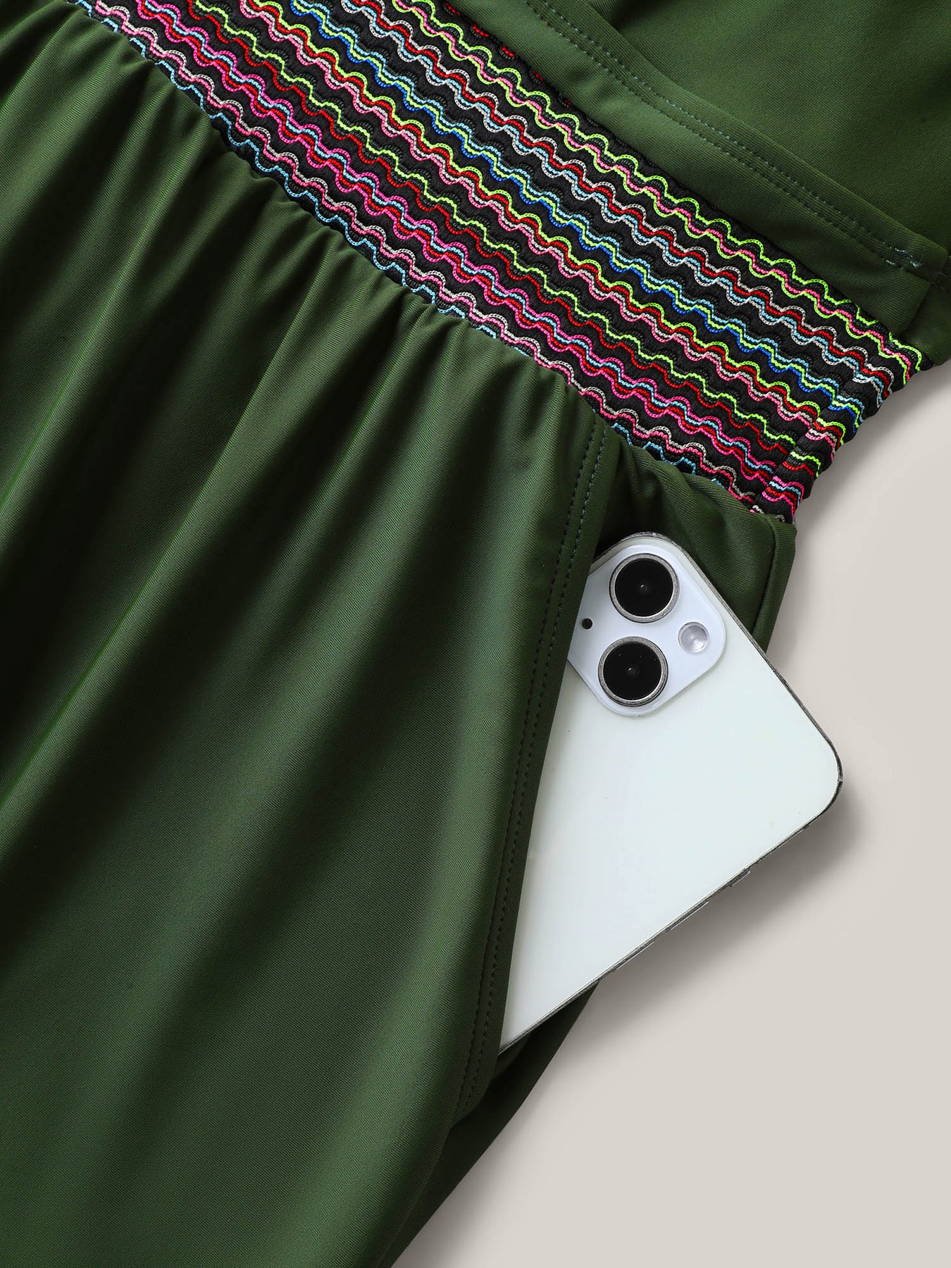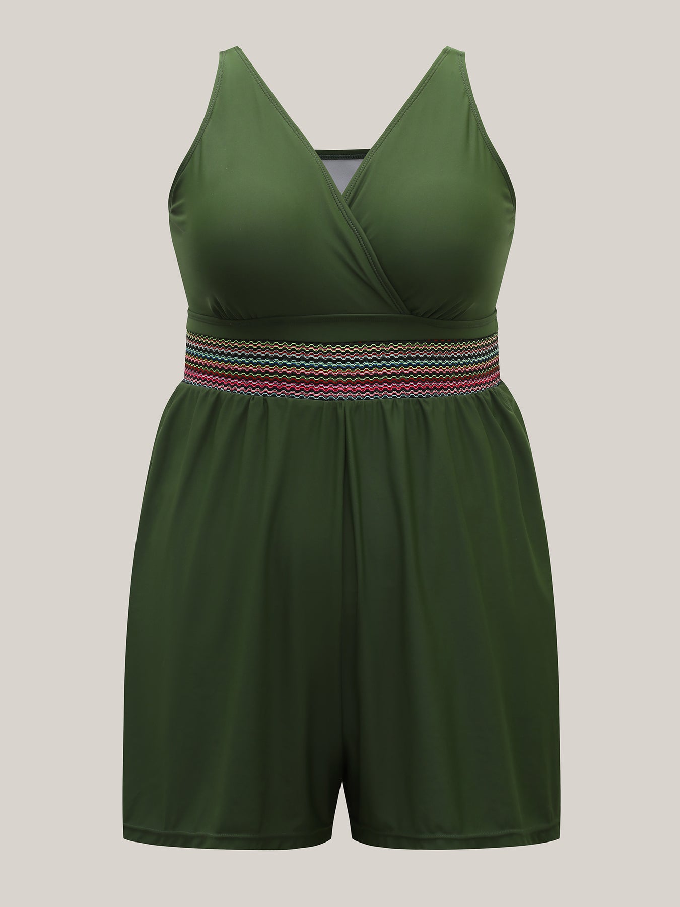 Colorful Webbed Surplice Pockets Swim Romper