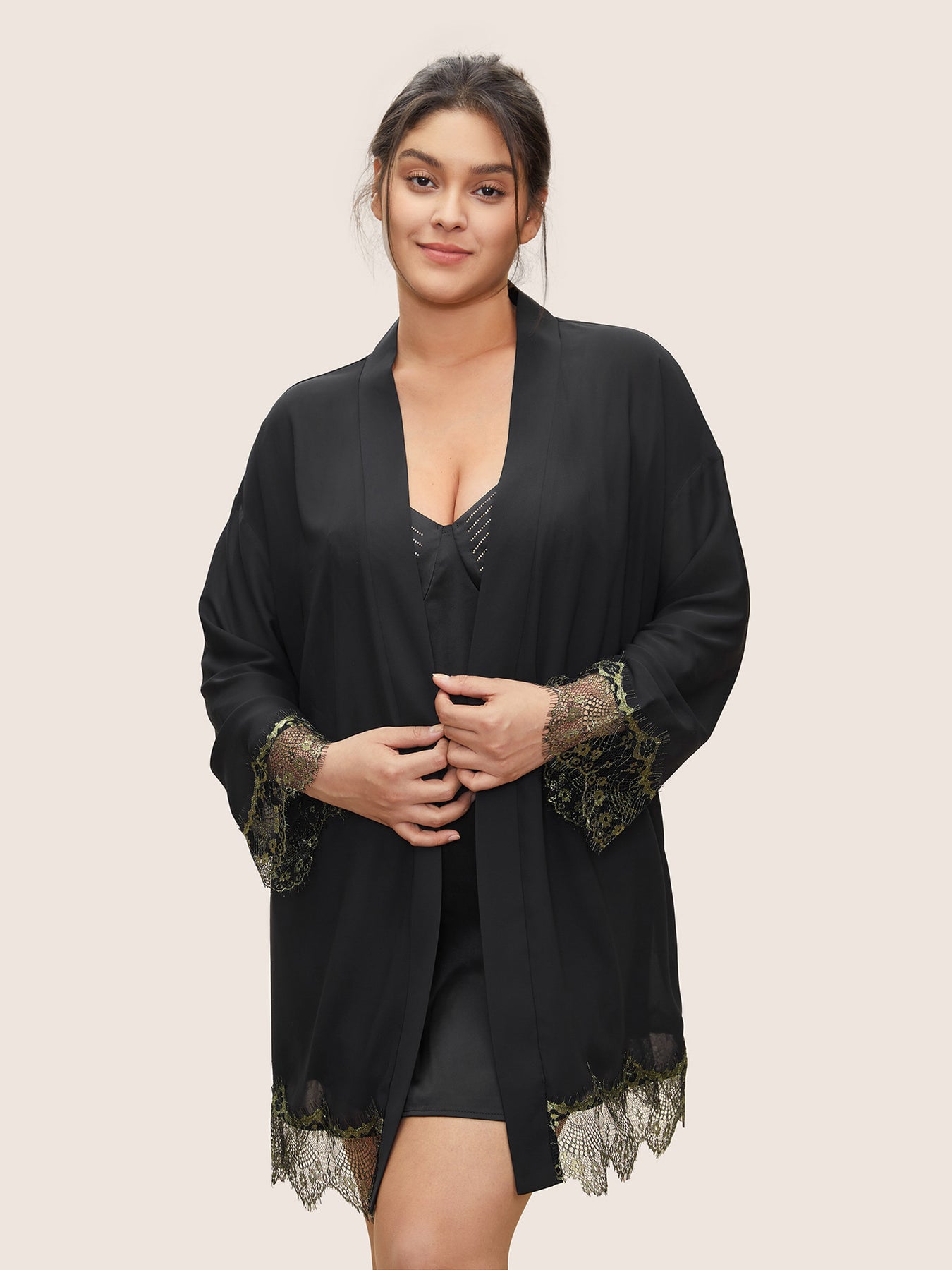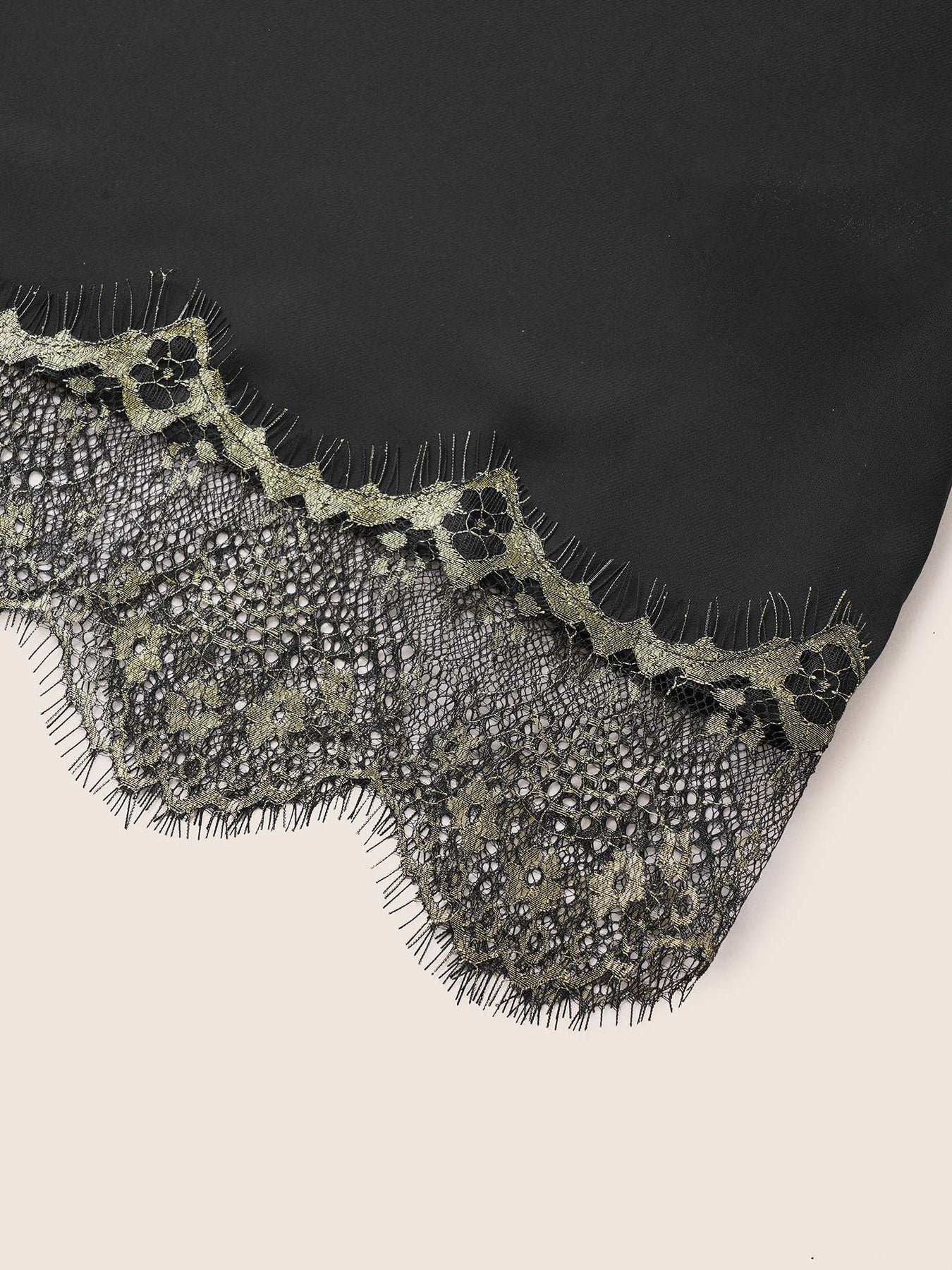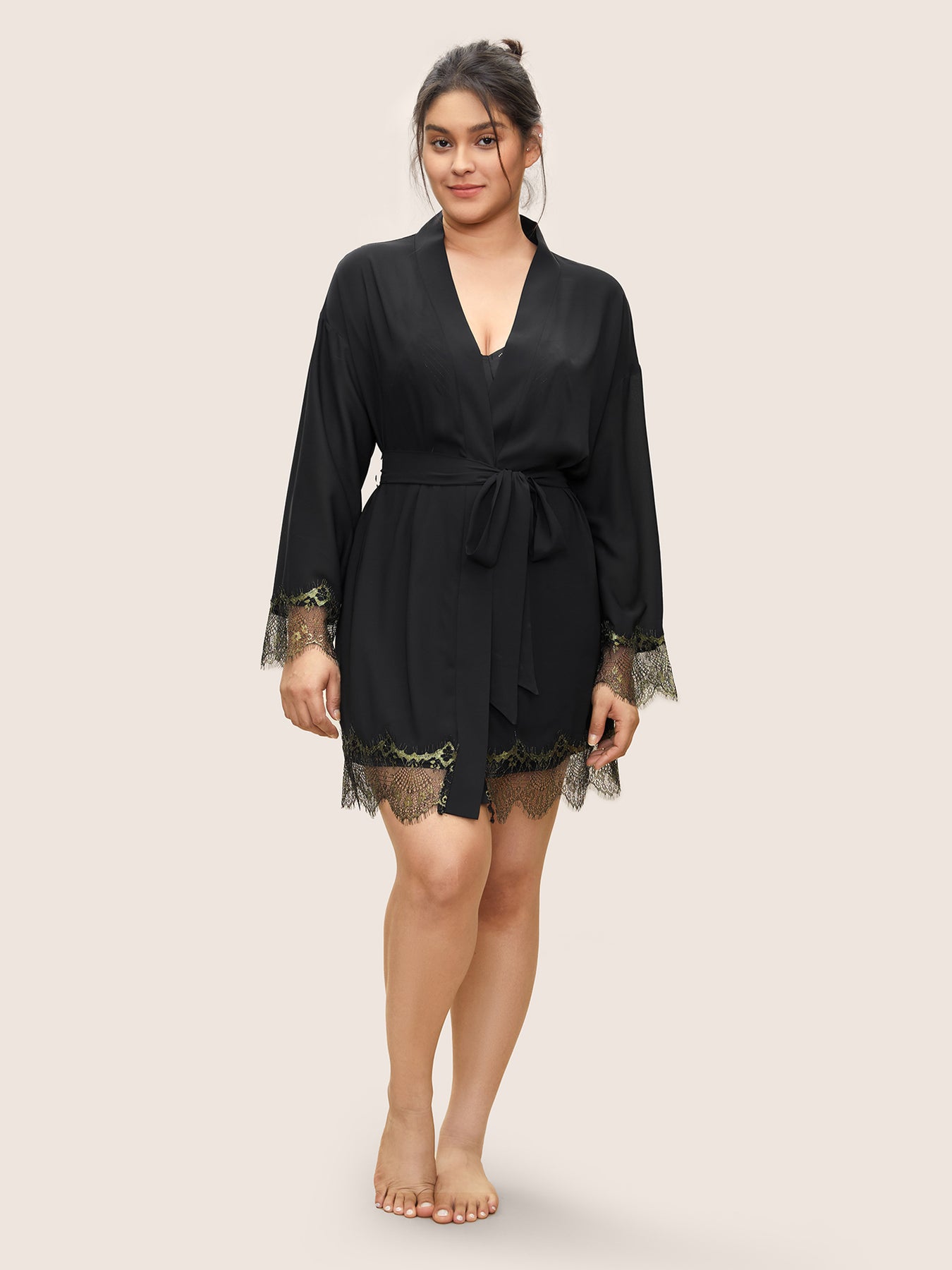 Contrast Lace Patchwork Scalloped Trim Belted Robe