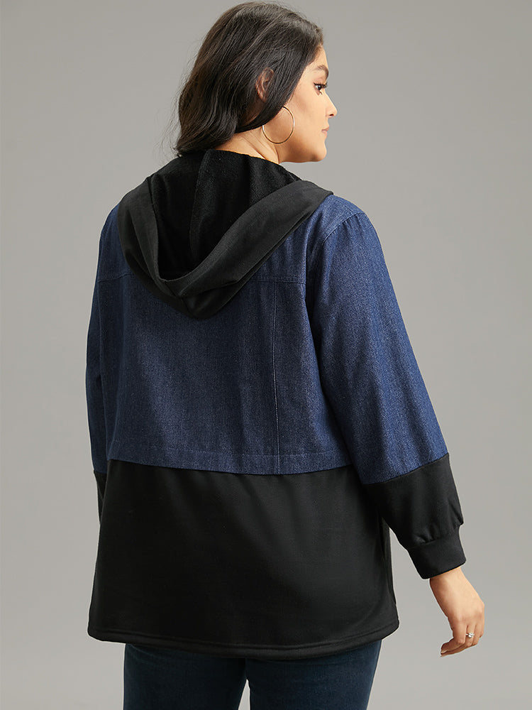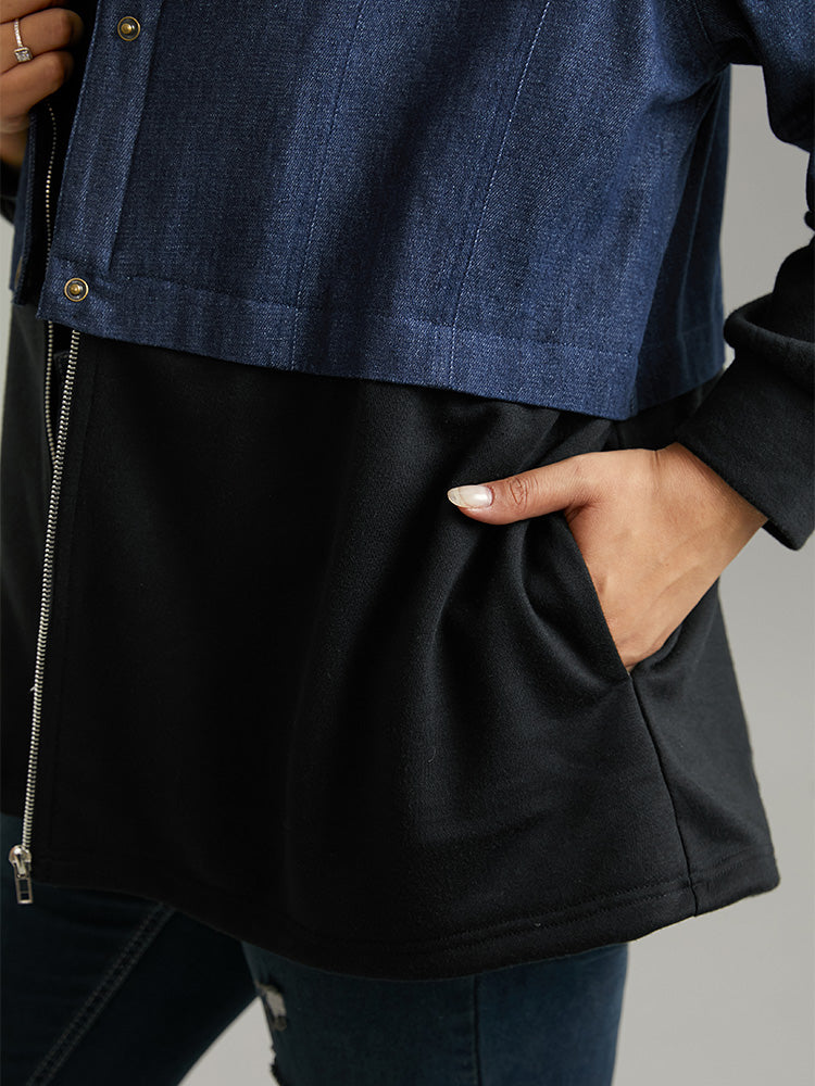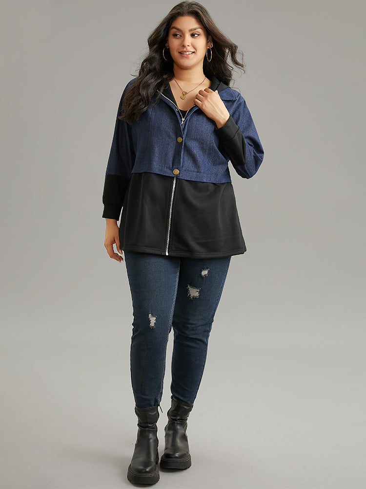 Contrast Patchwork Button Up Pocket Zipper Coat