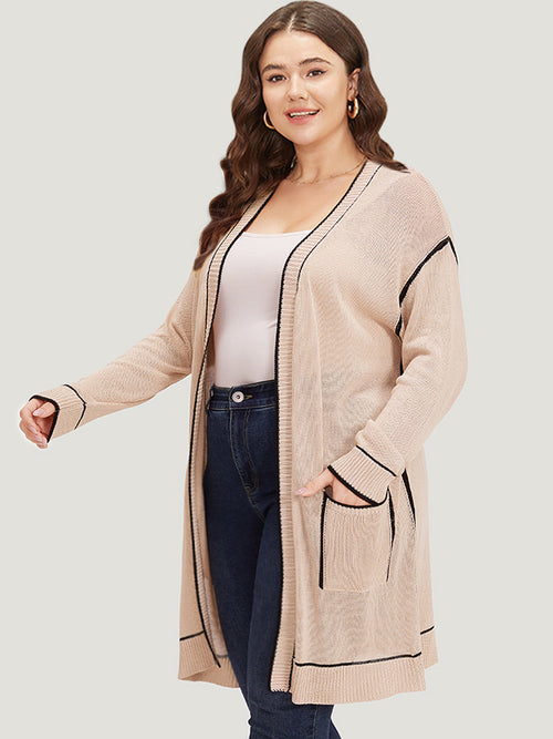 Contrast Trim Patched Pocket Drop Shoulder Cardigan