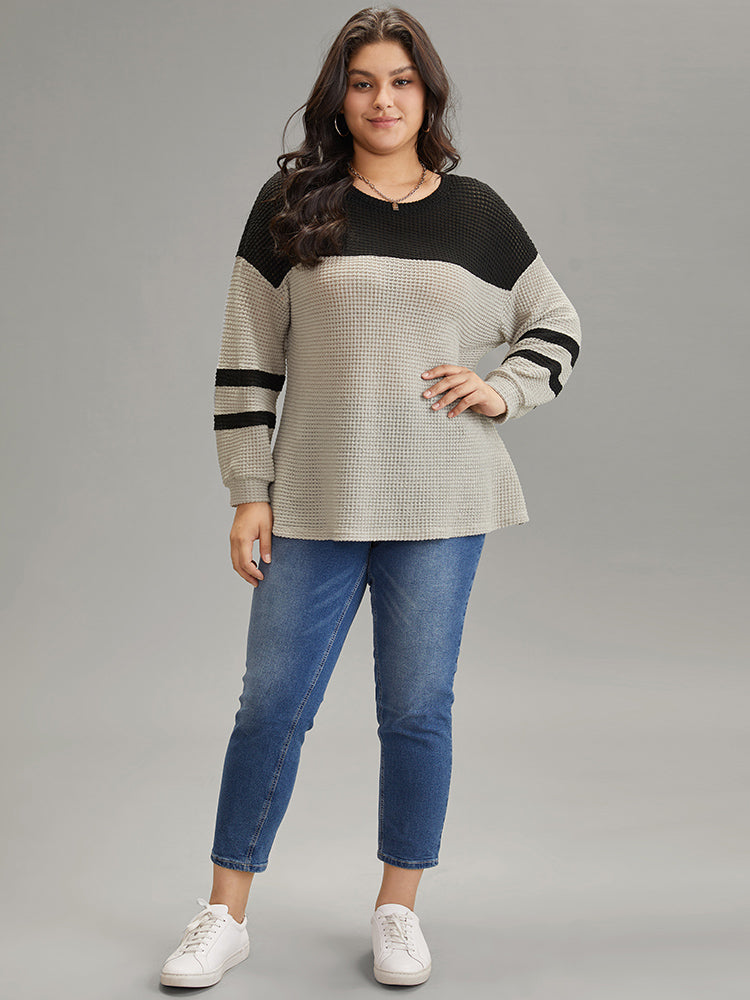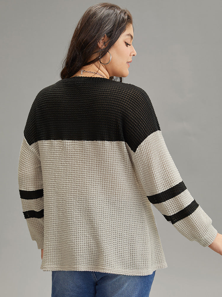 Contrast Waffle Knit Striped Round Neck T-shirt