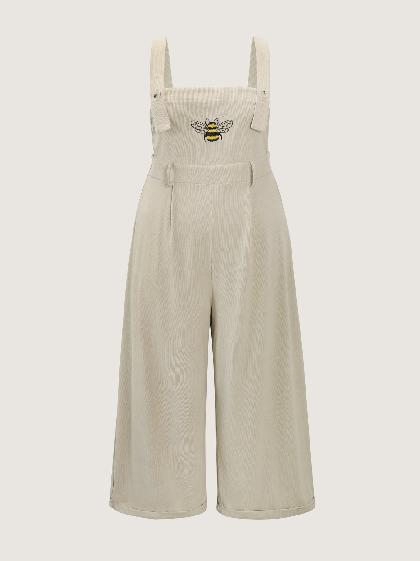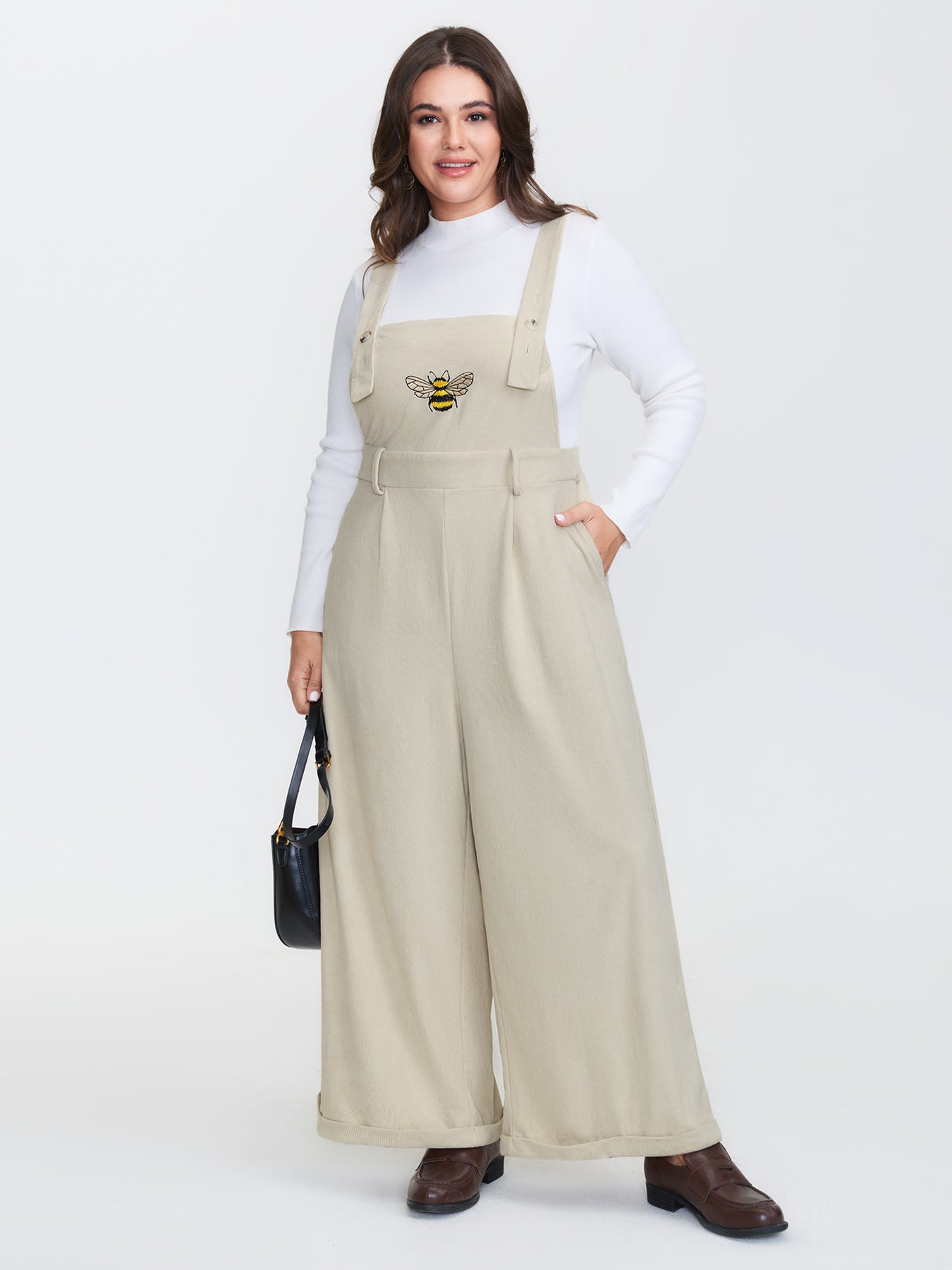Corduroy Embroidered Adjustable Overall Jumpsuit