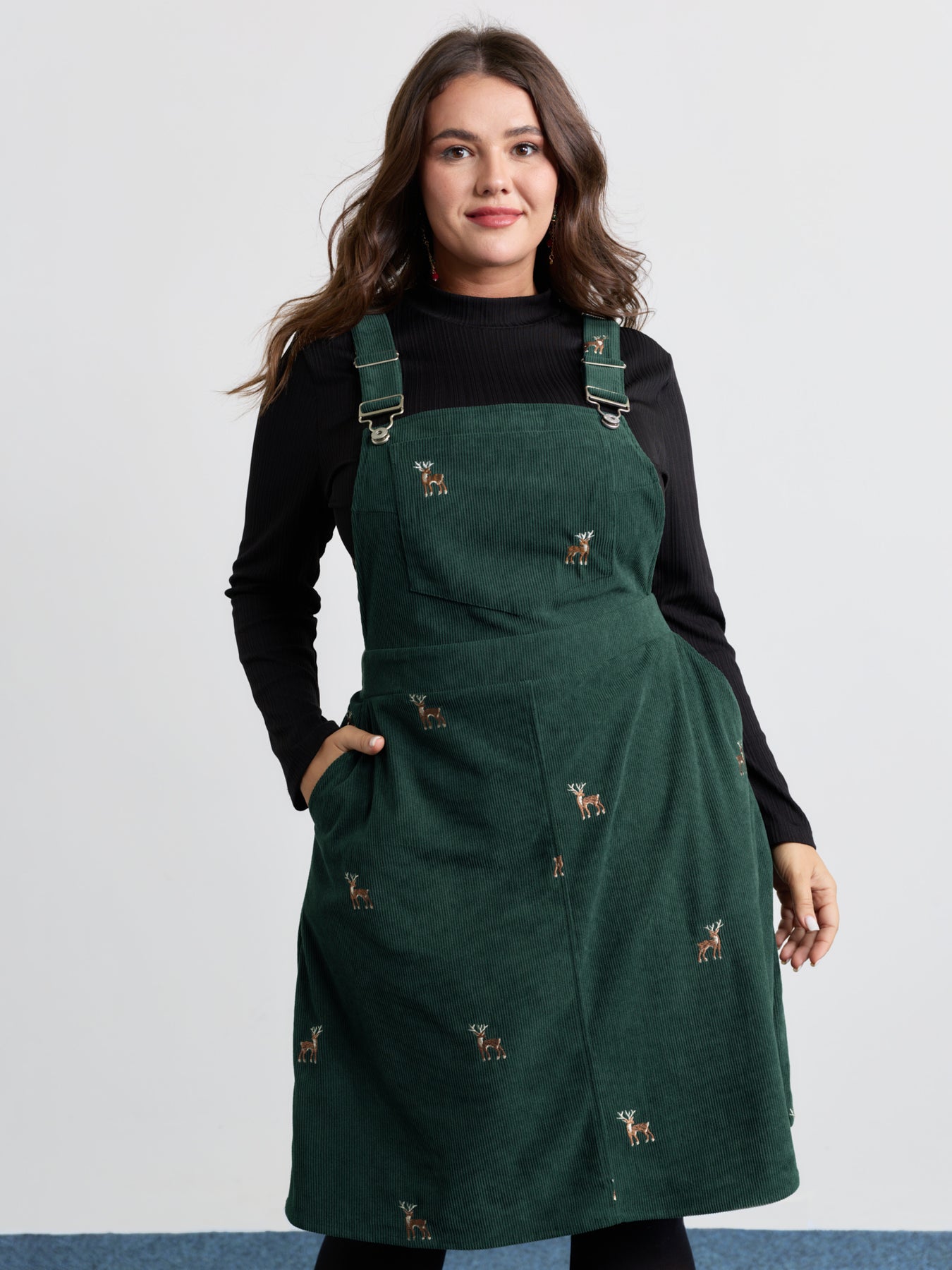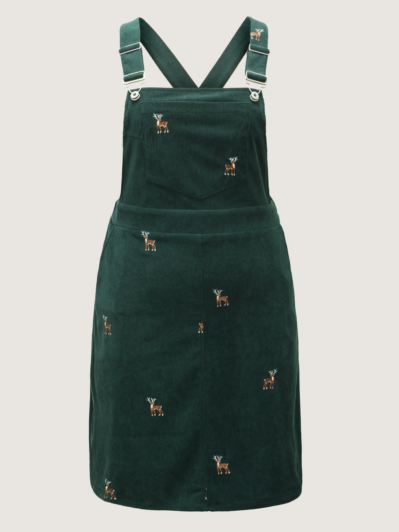 Corduroy Embroidered Adjustable Straps Knee Dress