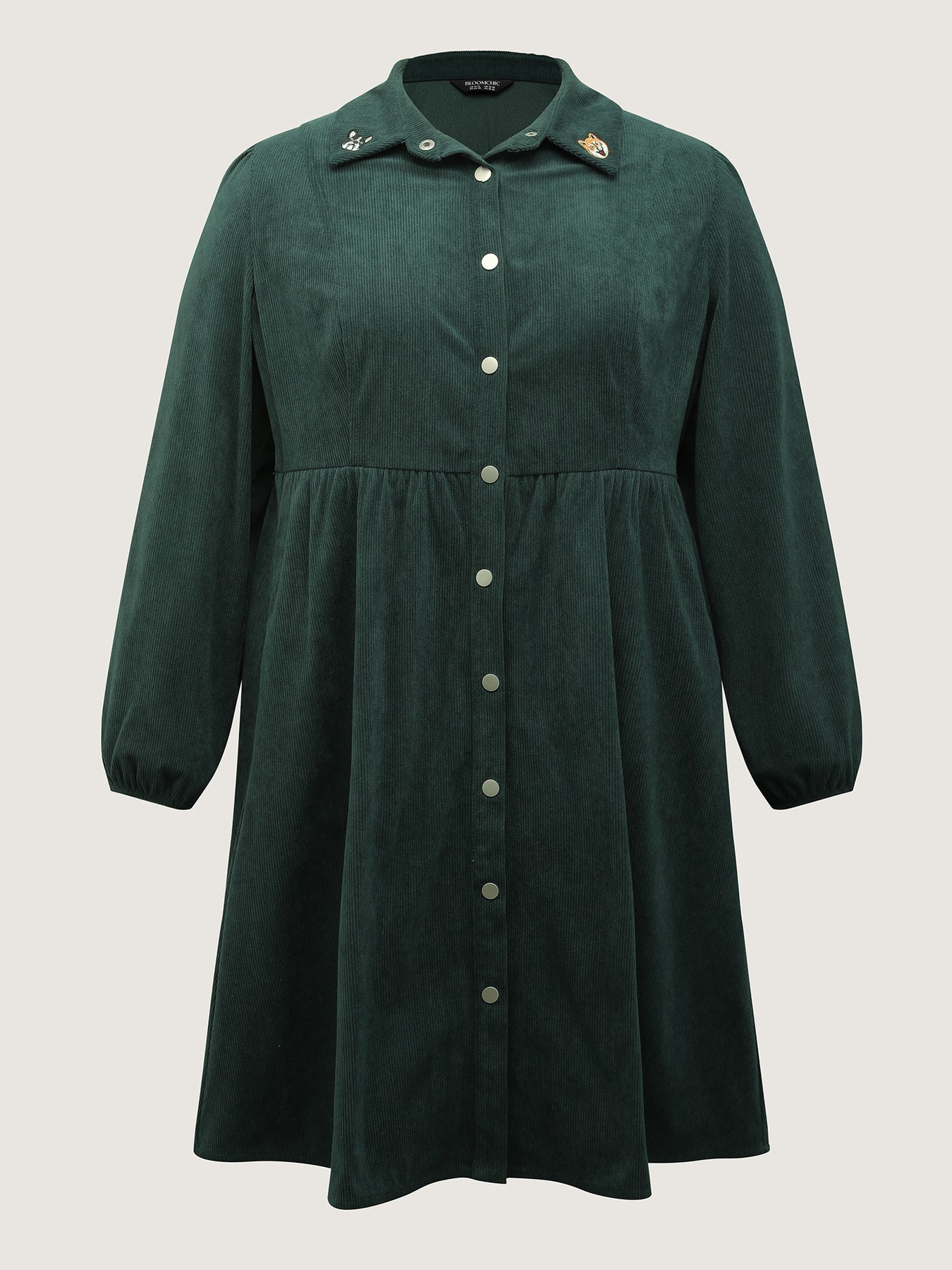 Corduroy Embroidered Midi Shirt Dress