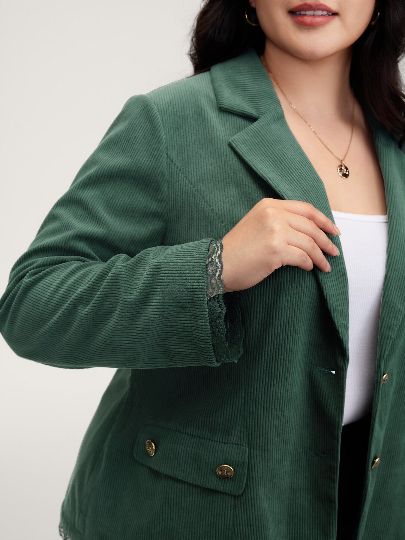 Corduroy Lace Trim Button Detail Blazer