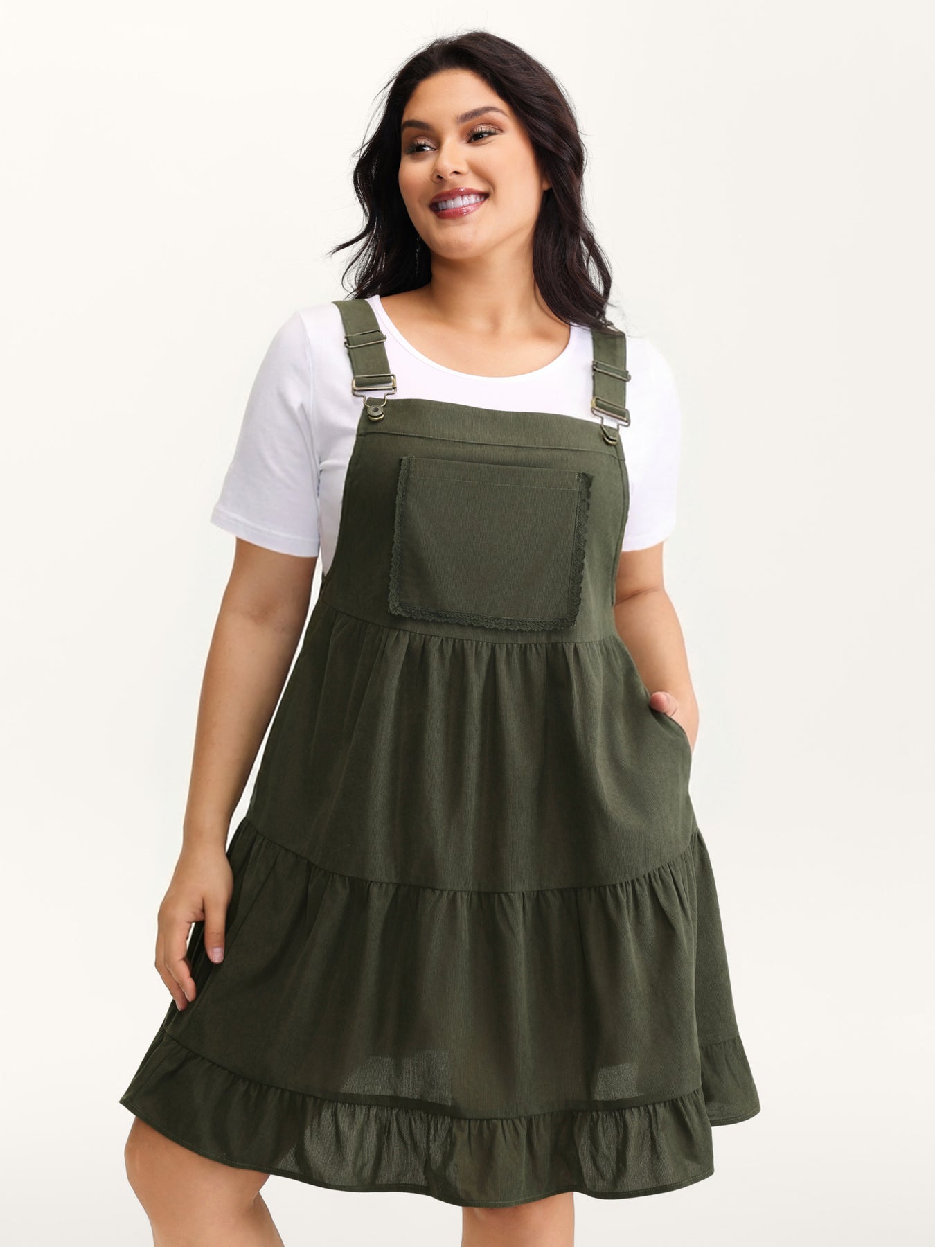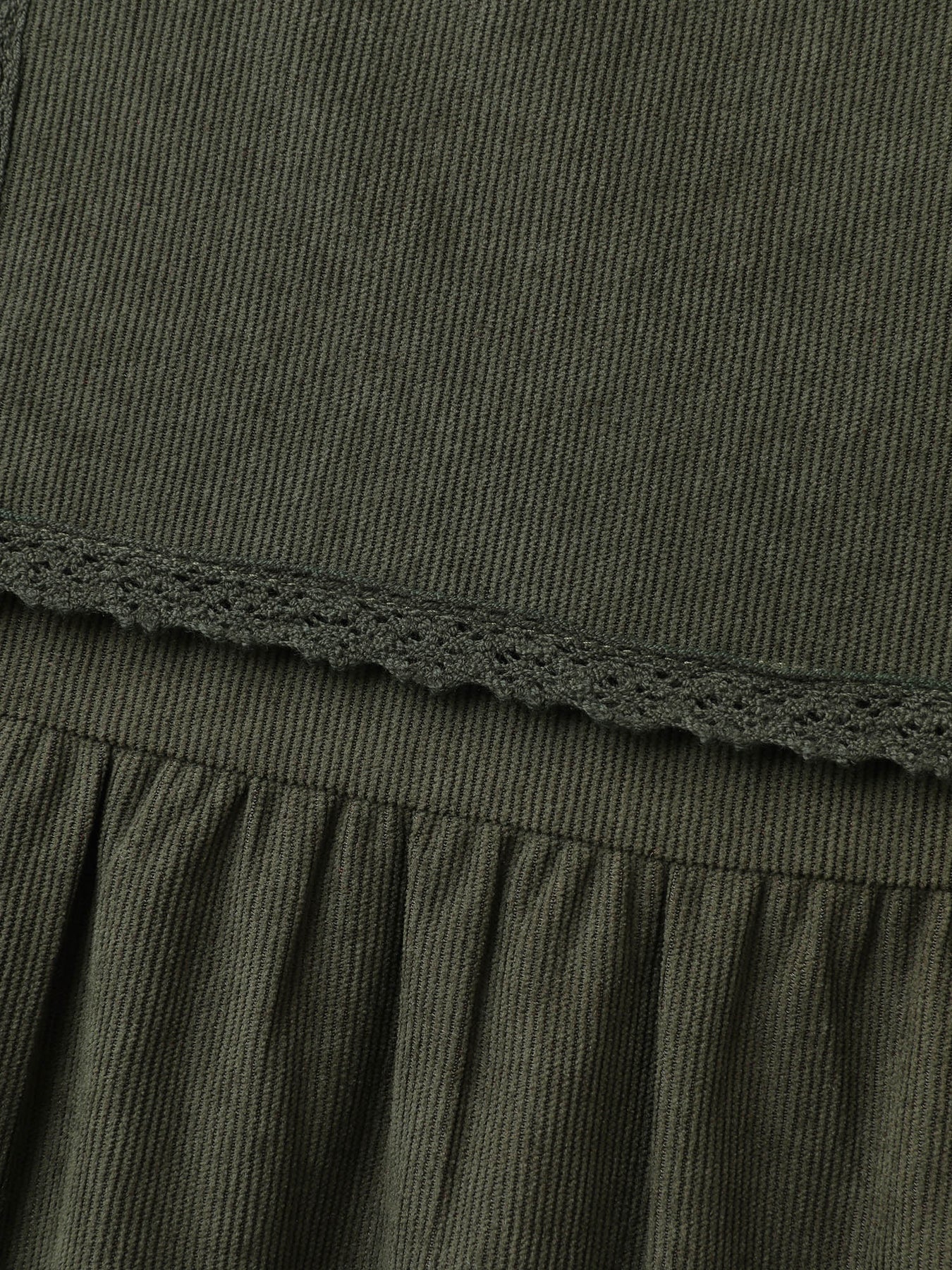 Corduroy Lace Trim Overall Strap Midi Dress