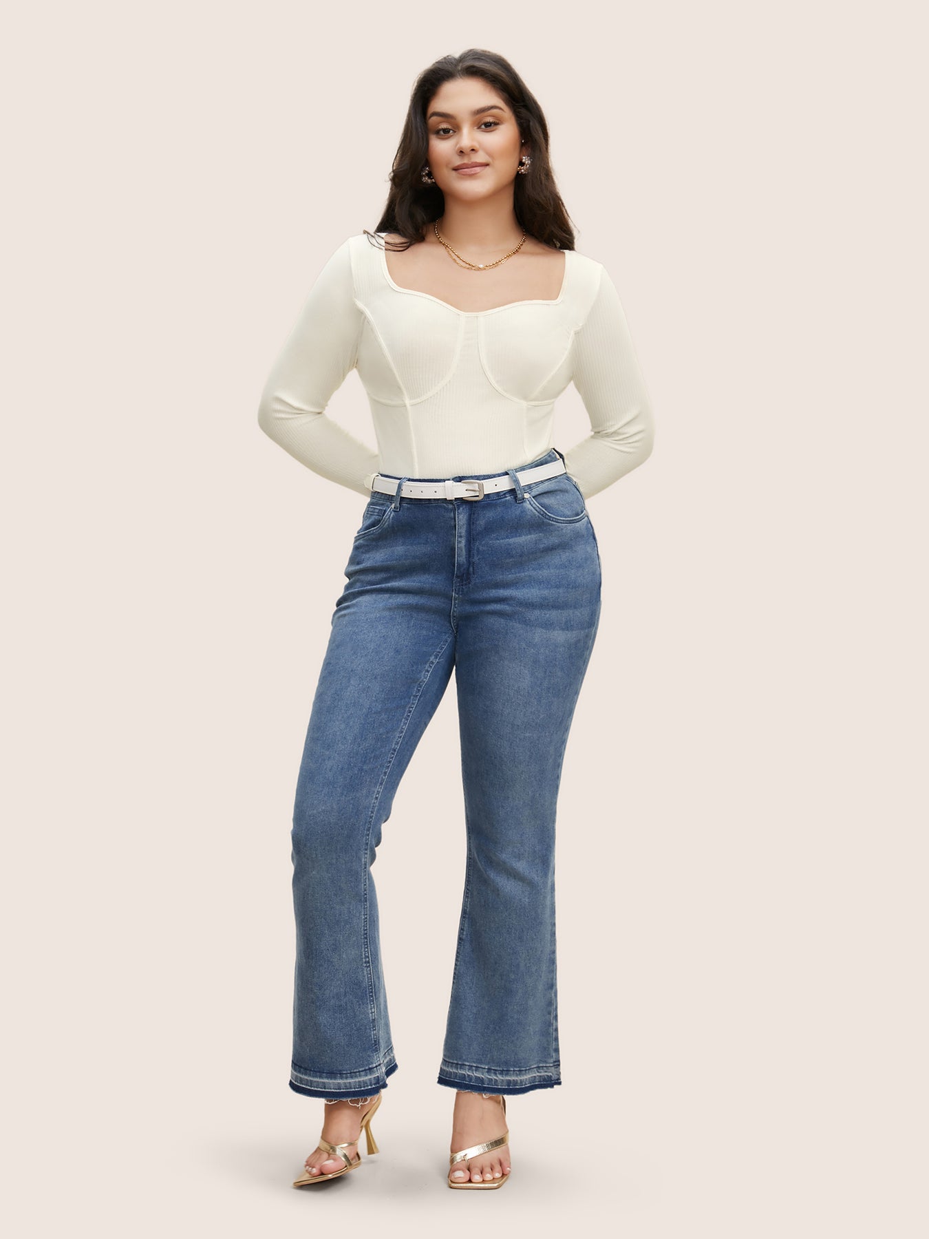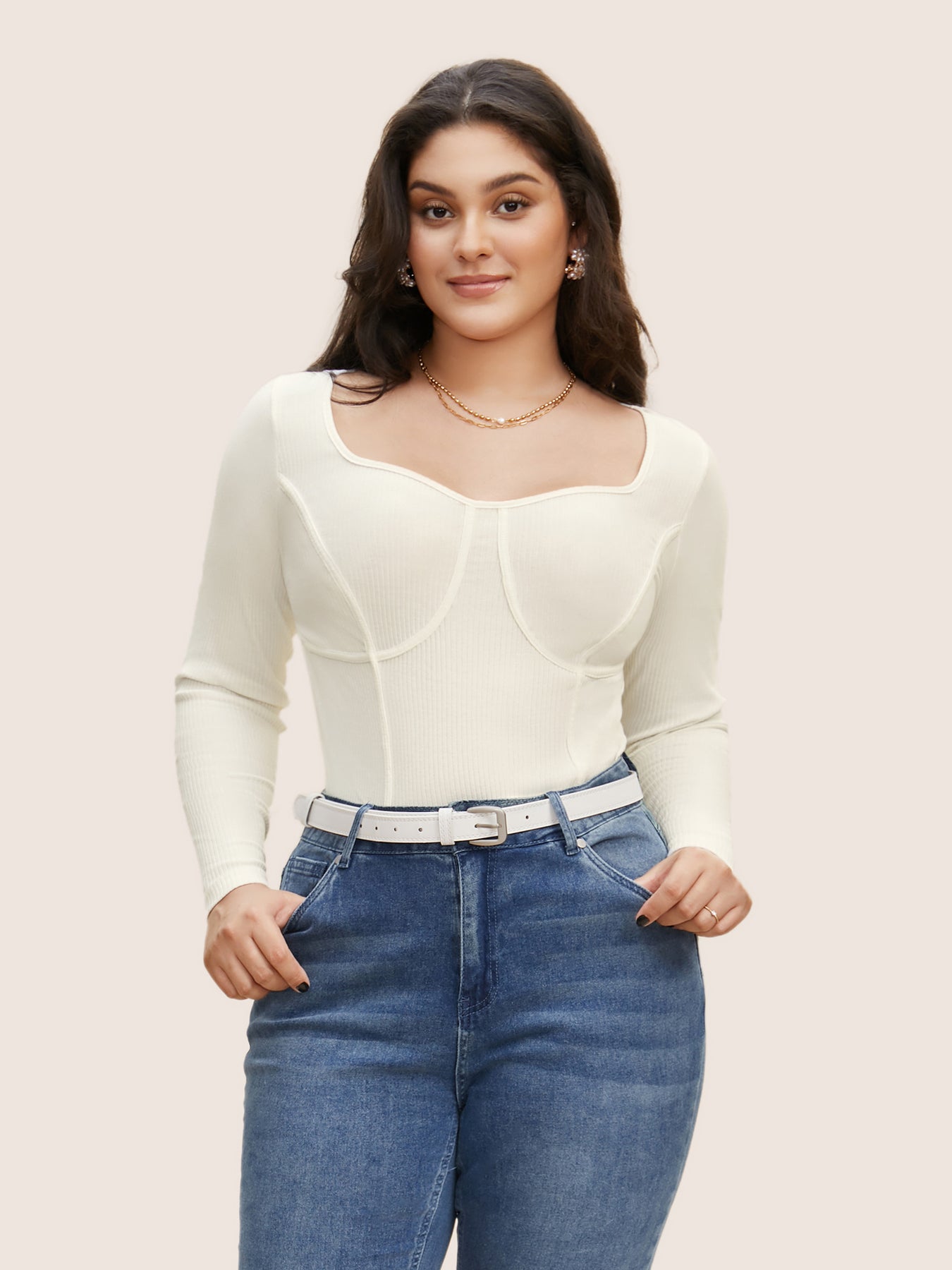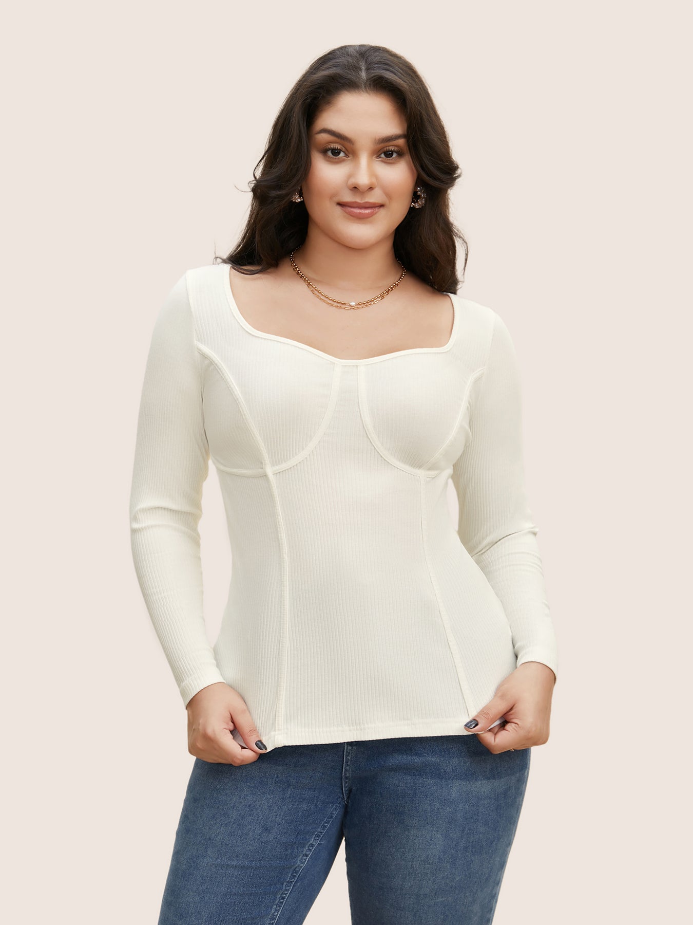 Cotton Asymmetrical Neck Tucked Seam Knit T-shirt