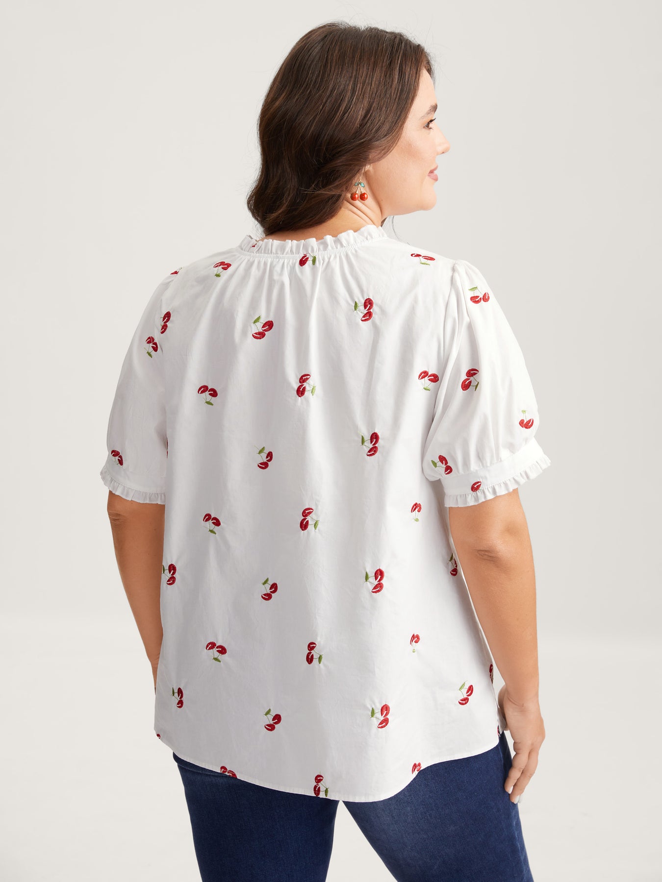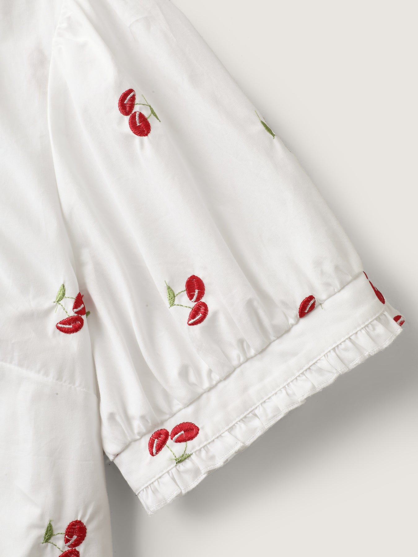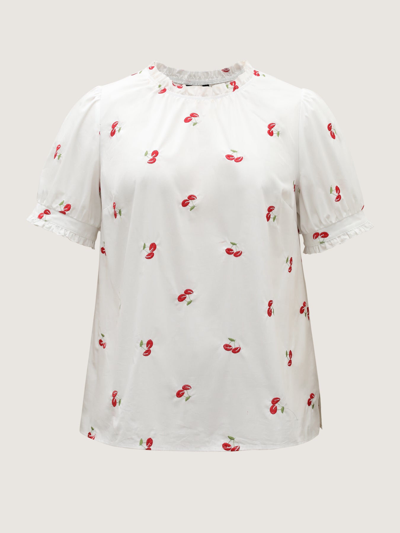 Cotton Cherry Embroidery Ruffled Neck Blouse
