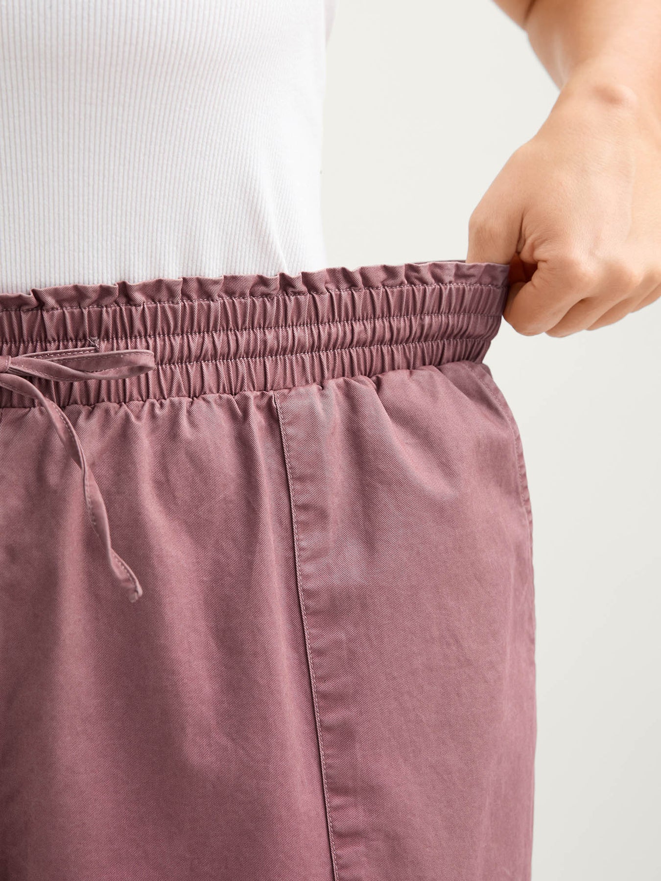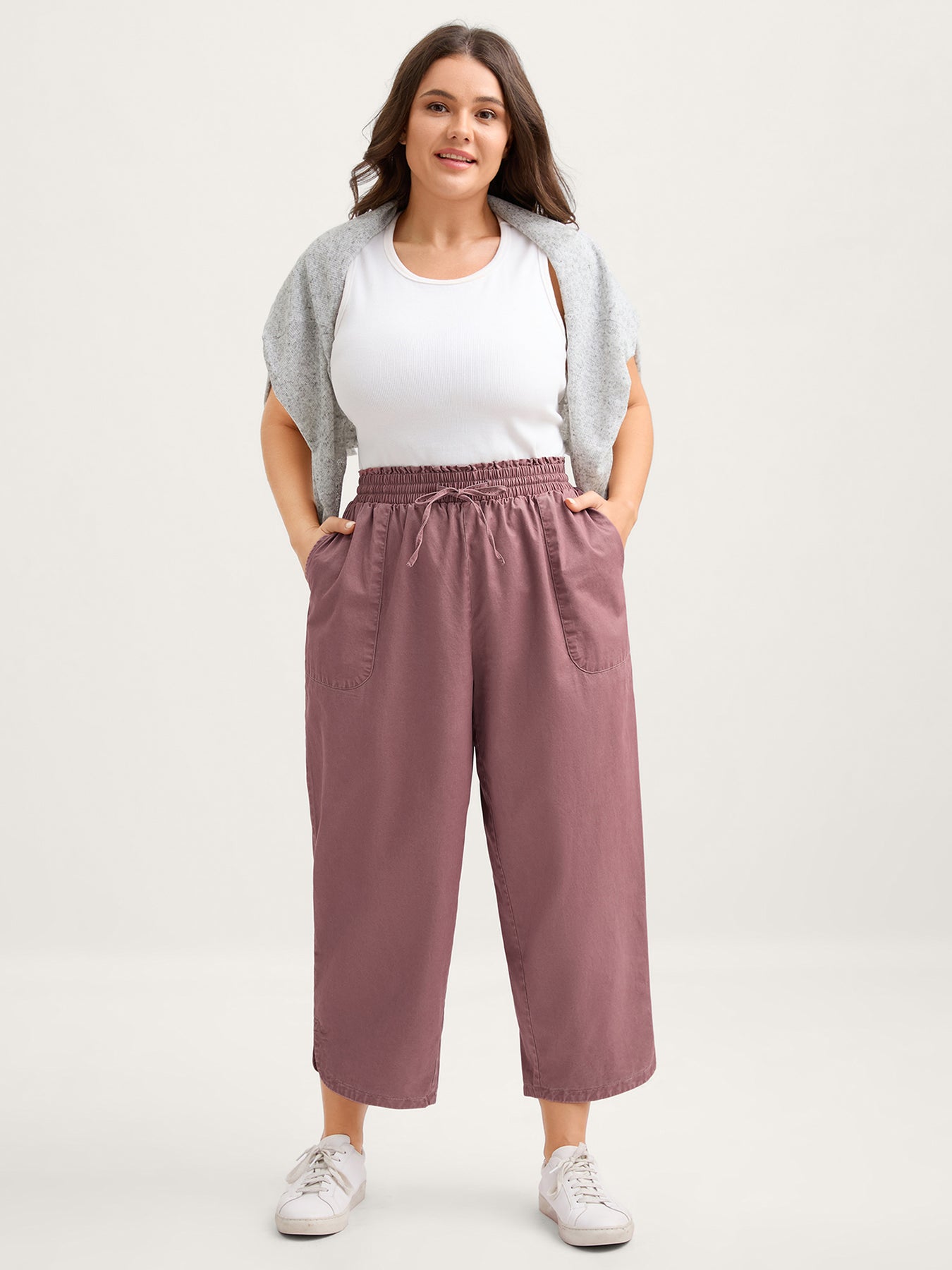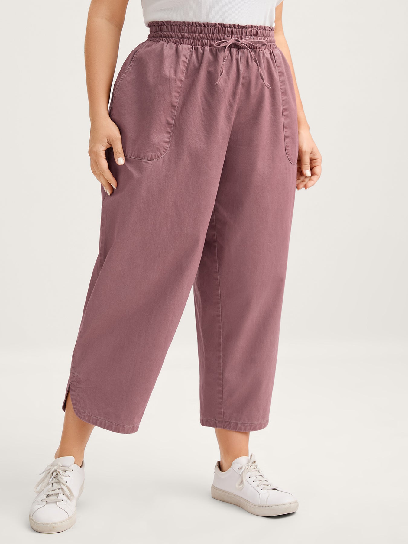 Cotton Shirred Wide Waistband Hem Slit Pants