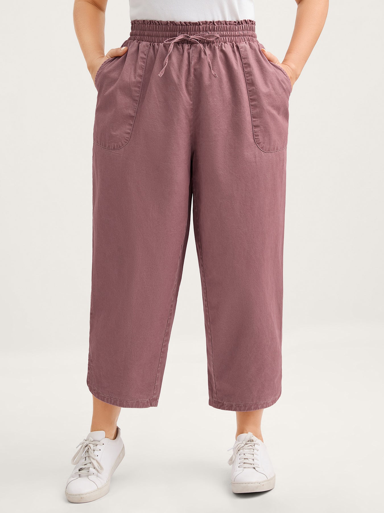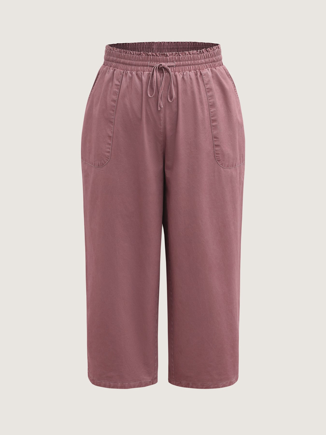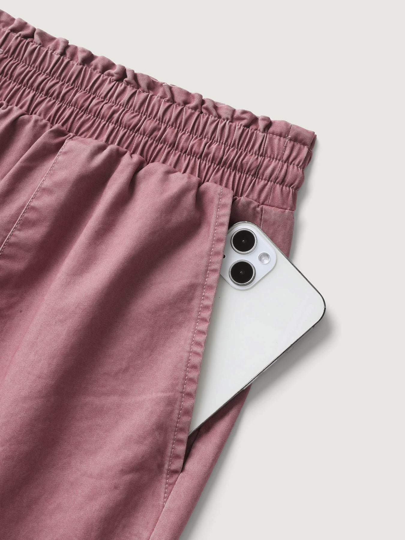 Cotton Shirred Wide Waistband Hem Slit Pants