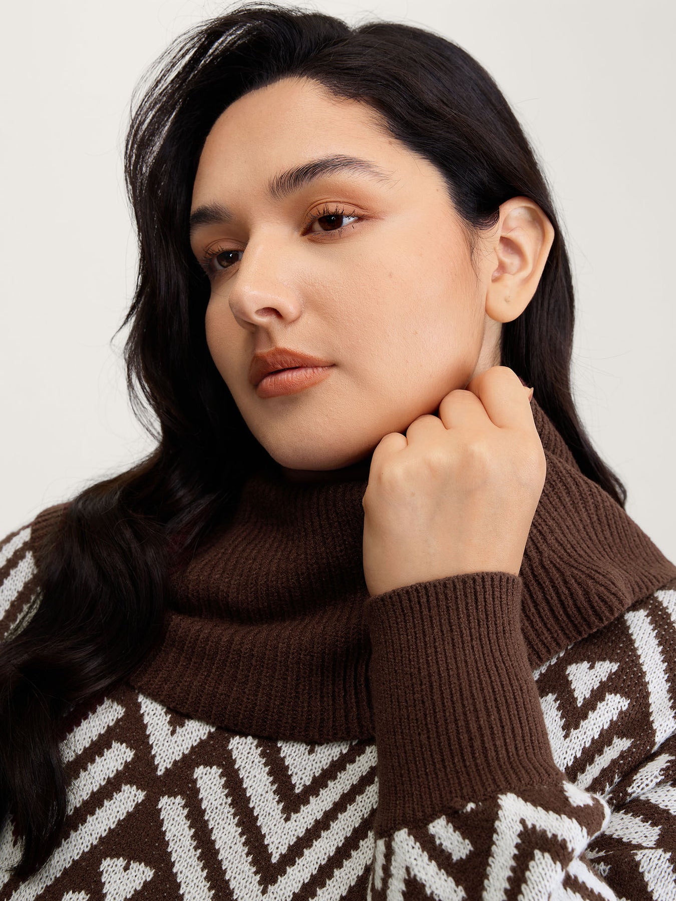 Cowl Neckline Geometric Print Pullover