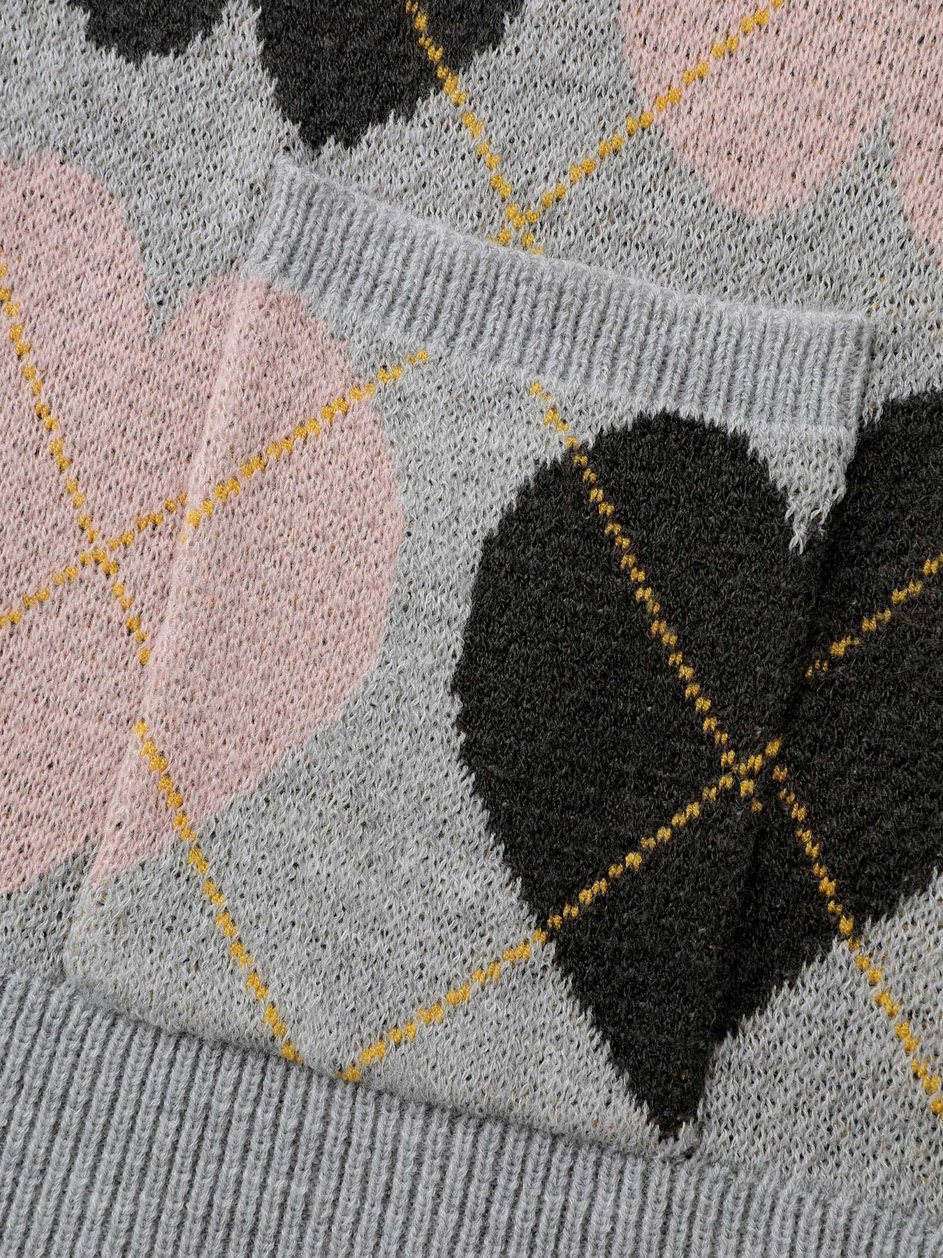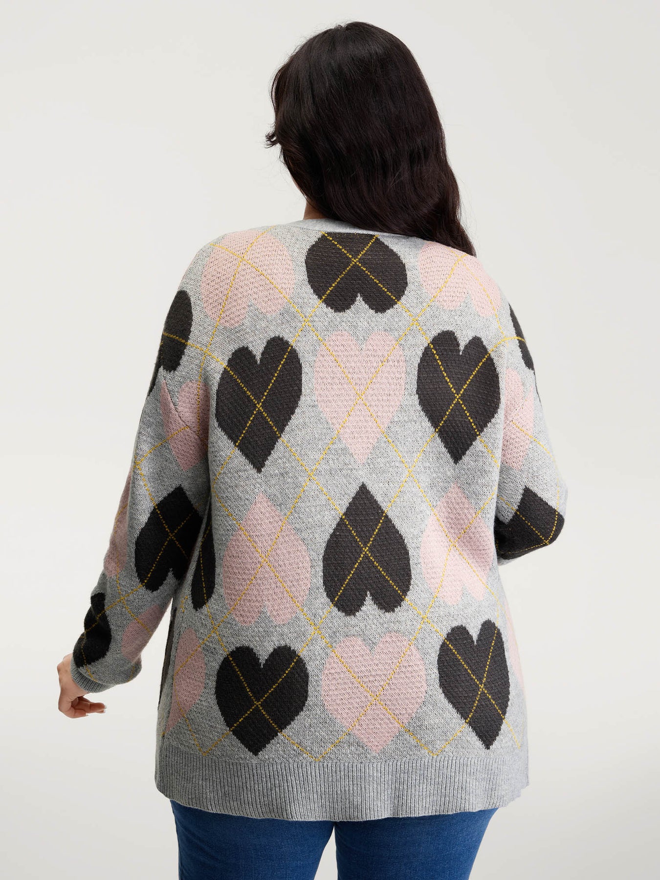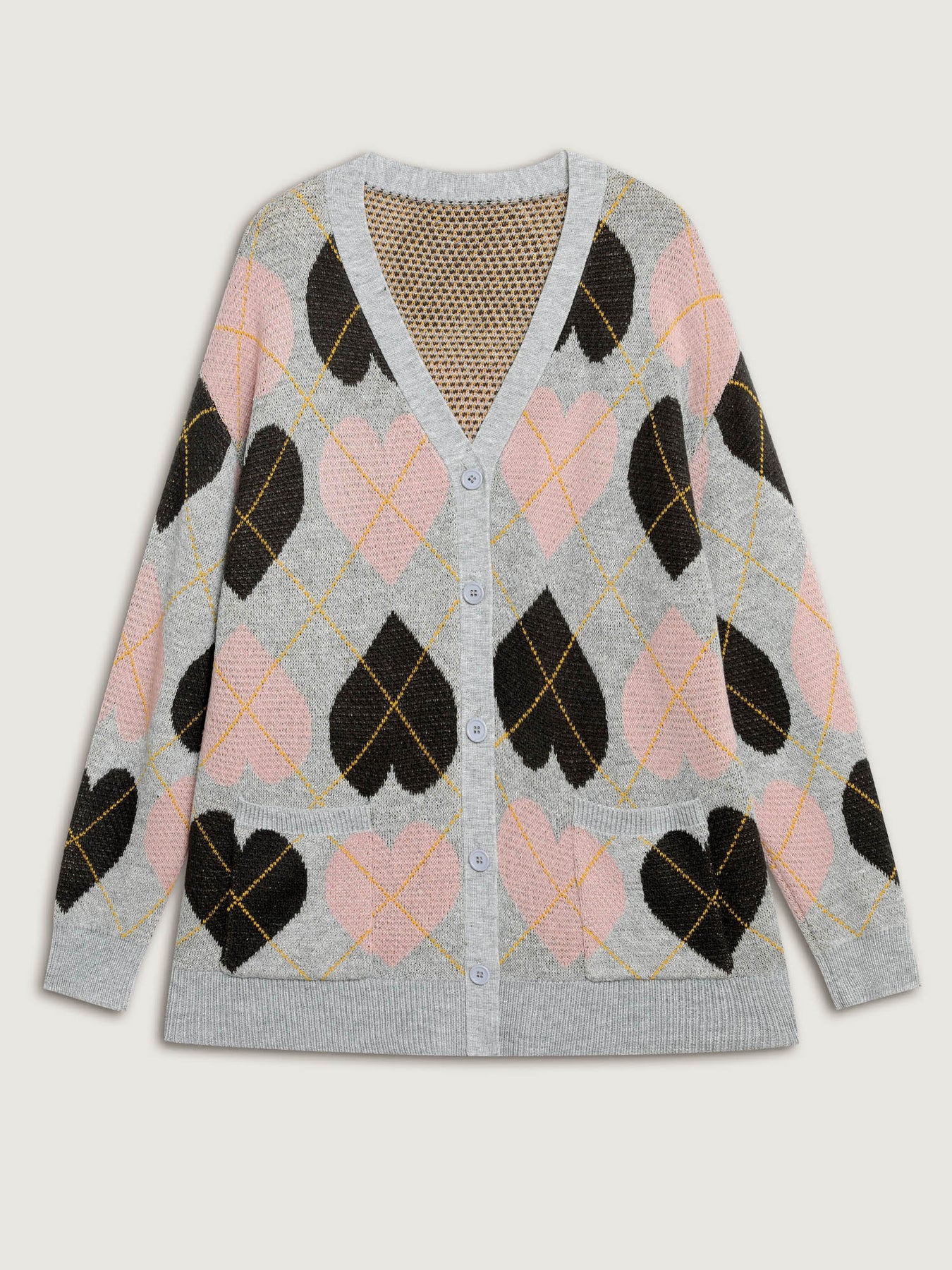 Cozy Hearts Jacquard Pattern Pockets Knit Cardigan
