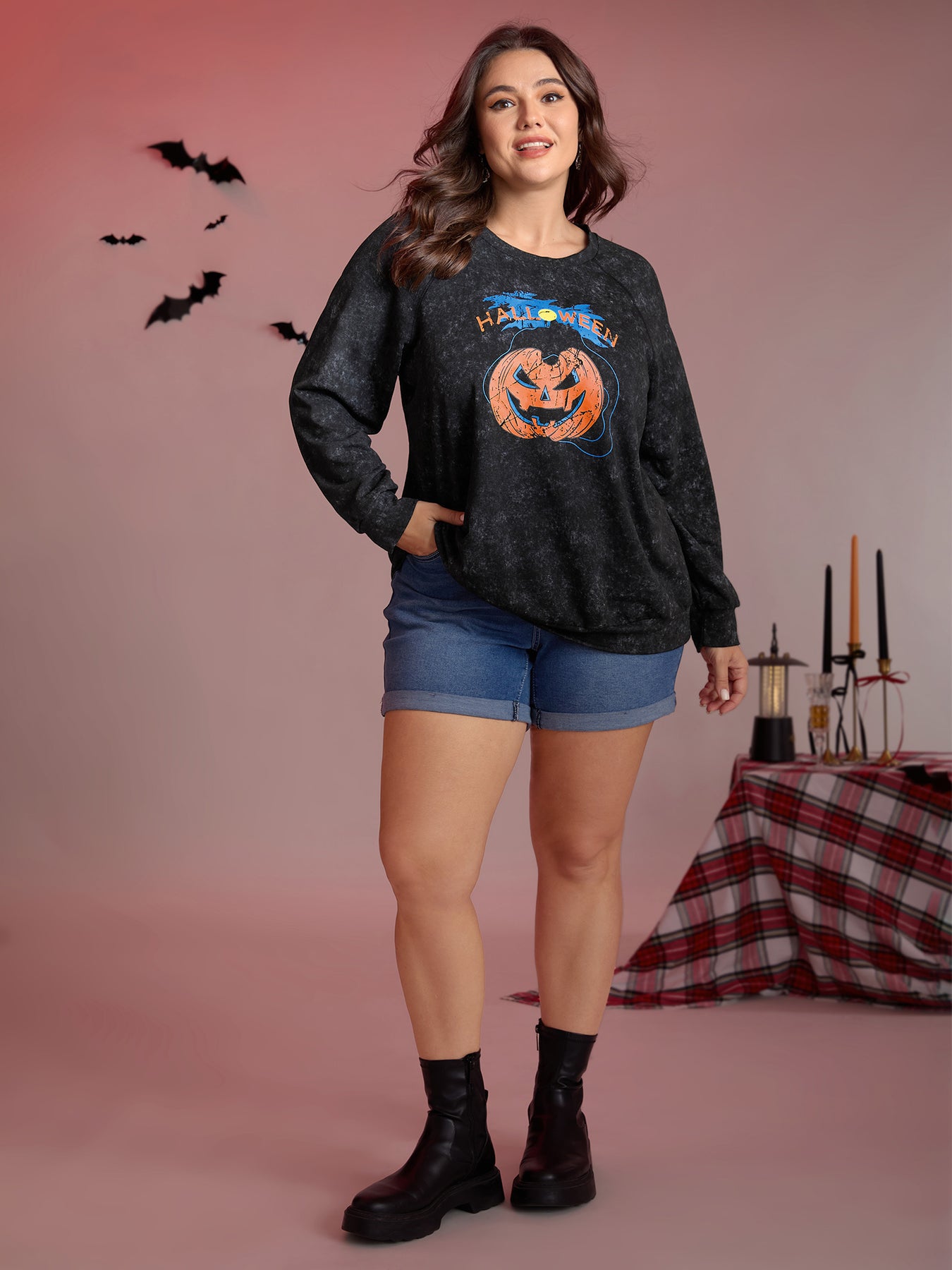 Creepy Pumpkin Motif Snowflake Effect Sweatshirt