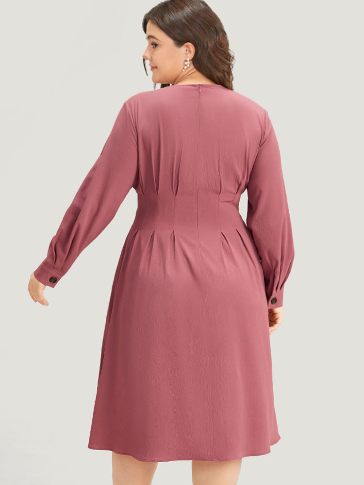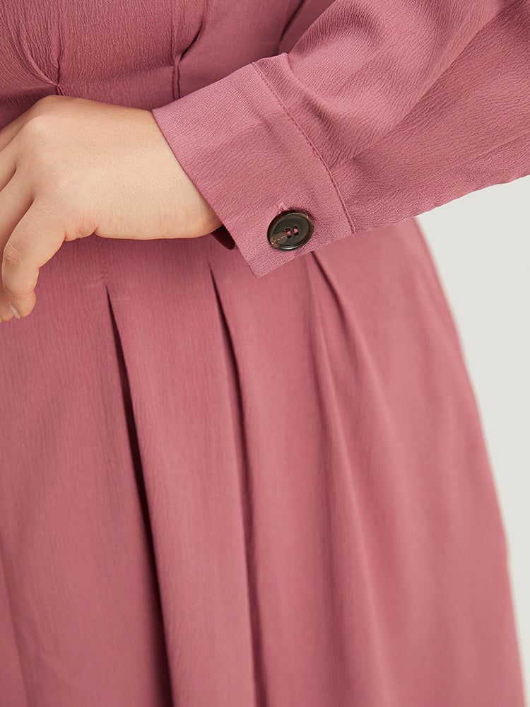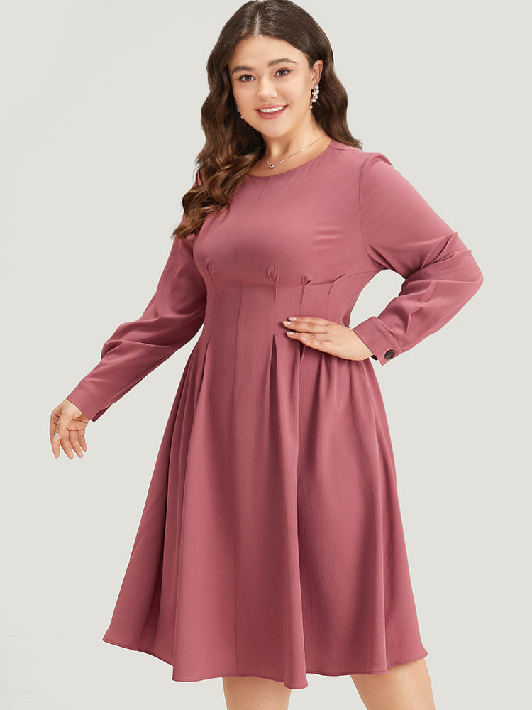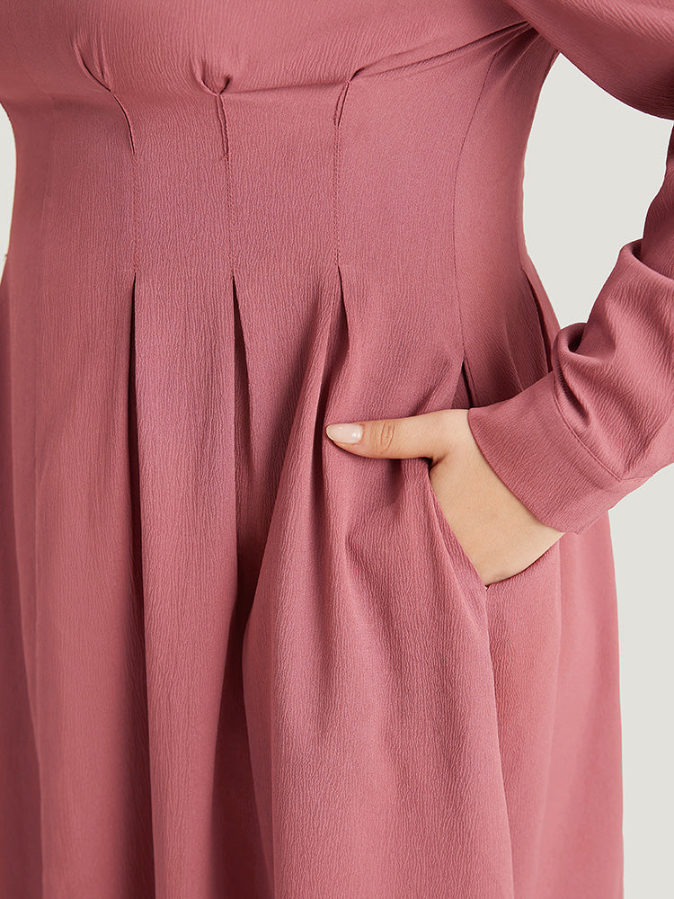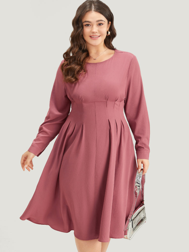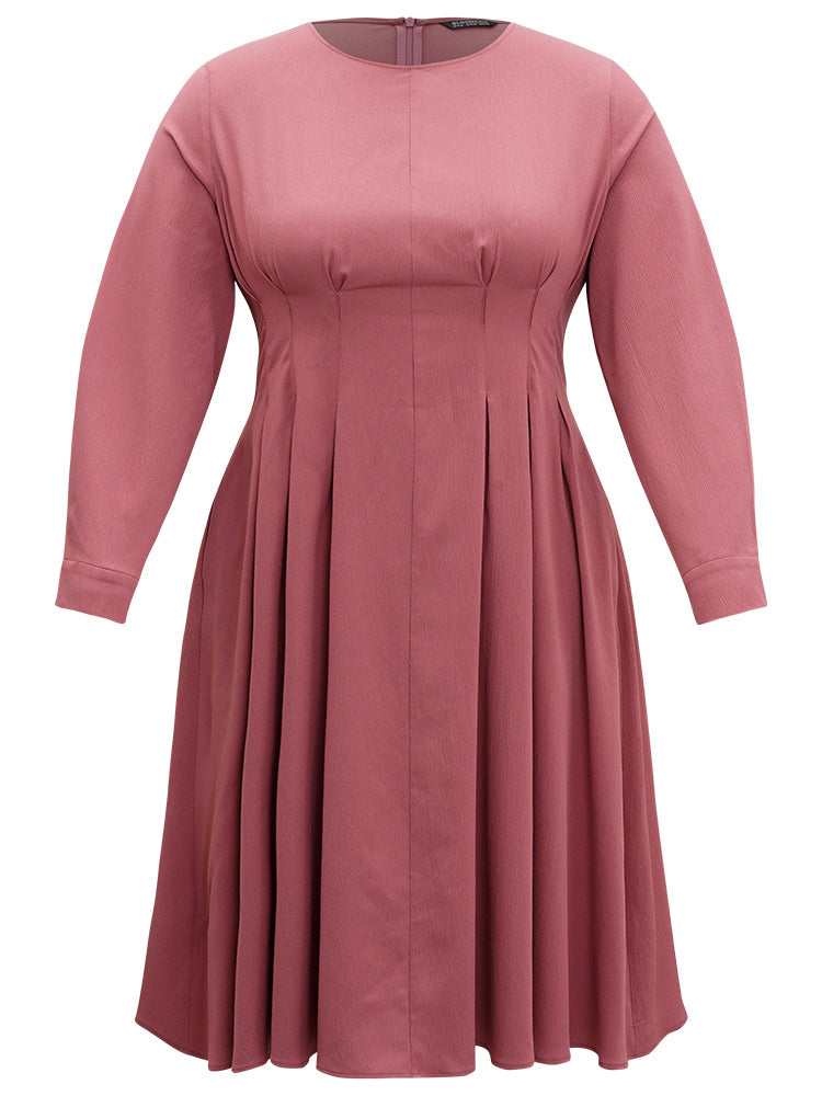 Crew Neck Plicated Detail Ruffle Hem Dress