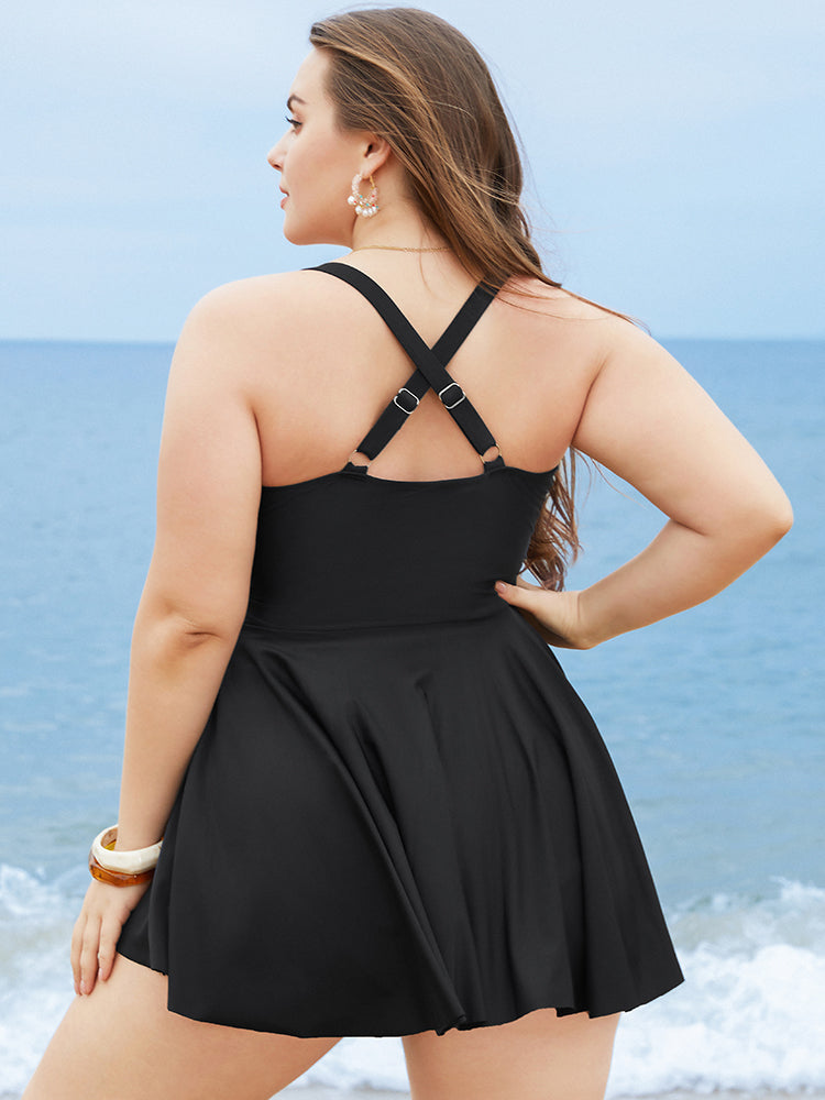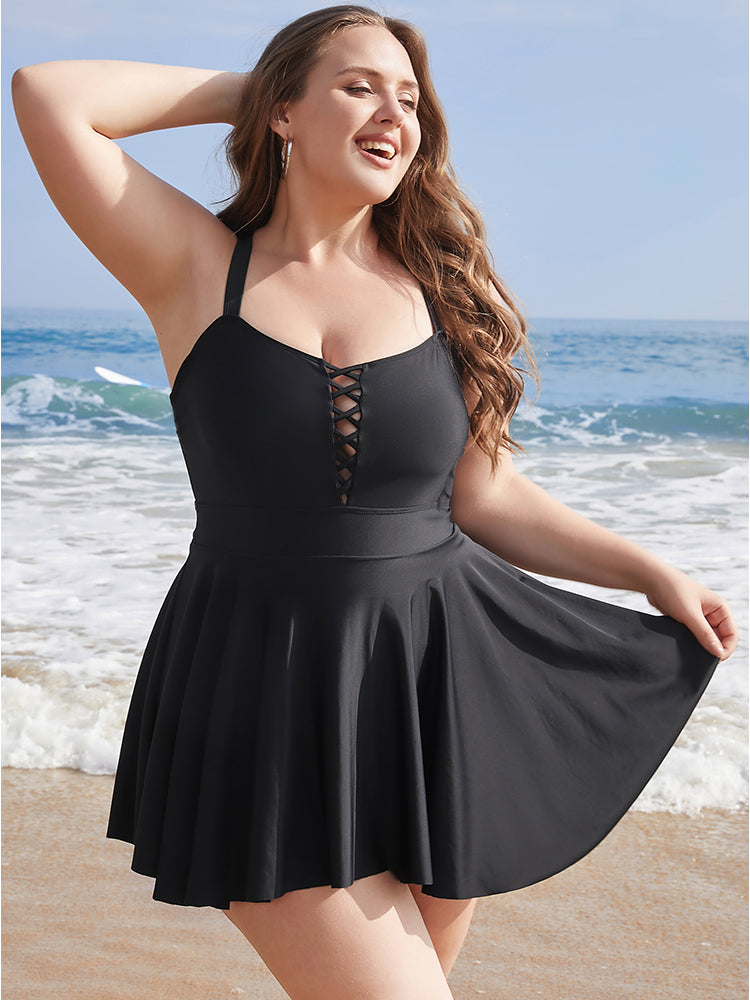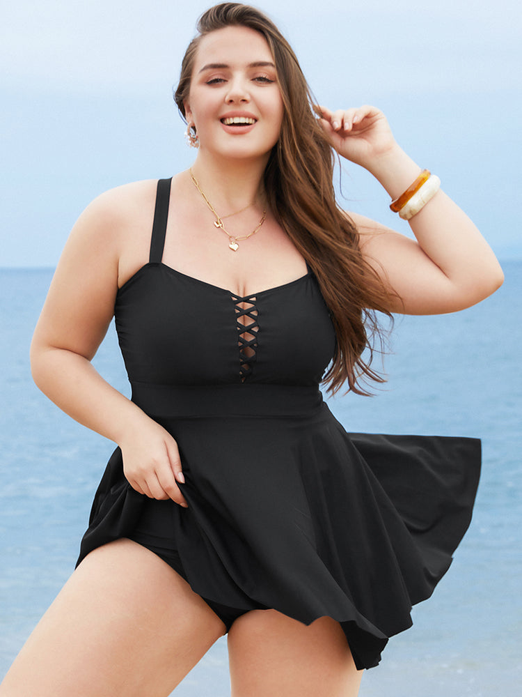 Crisscross Cut Out Sculpt Waist Ruffle Hem Swim Dress
