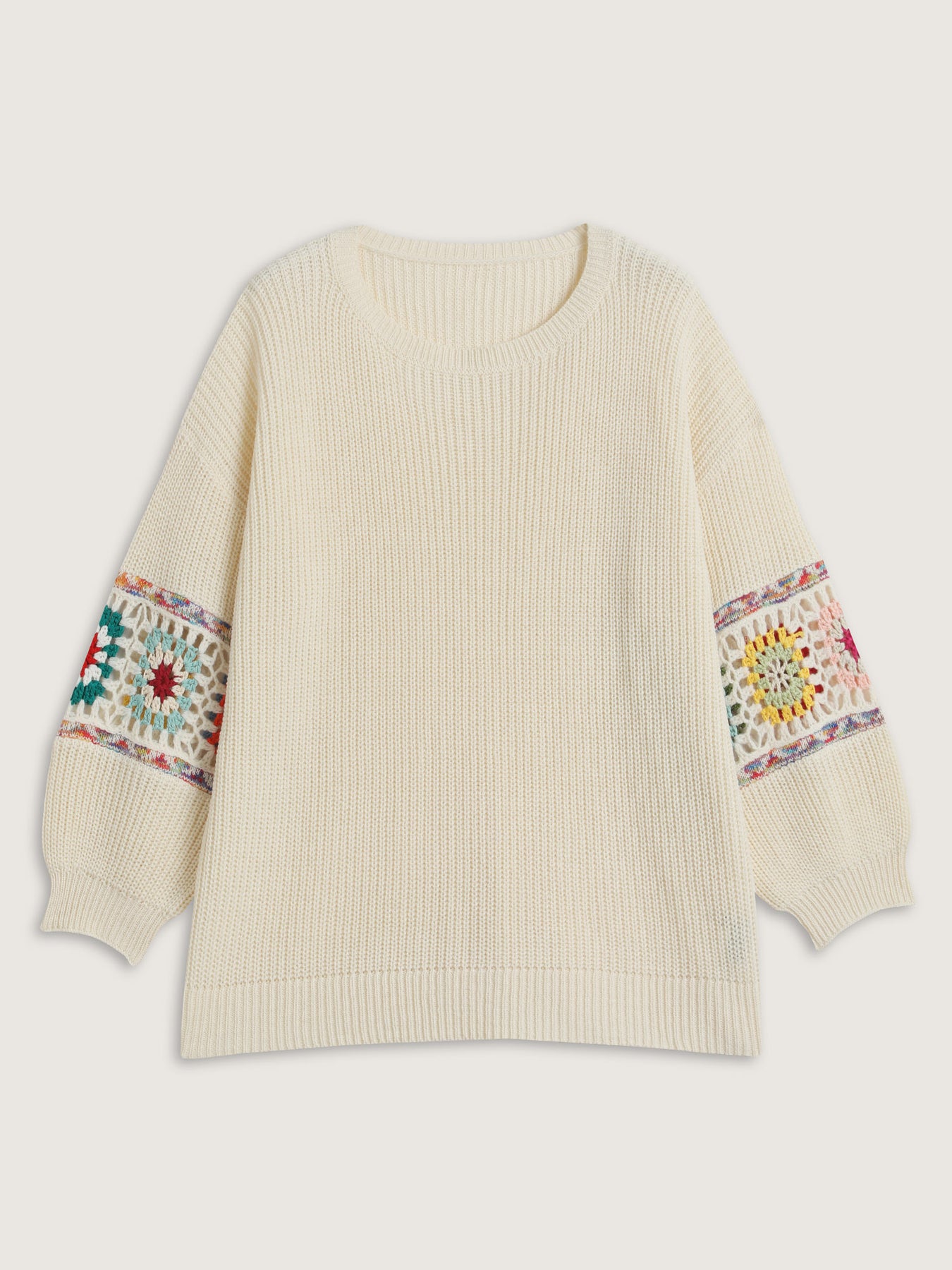 Crochet Floral Sleeve Lace Trim Pullover
