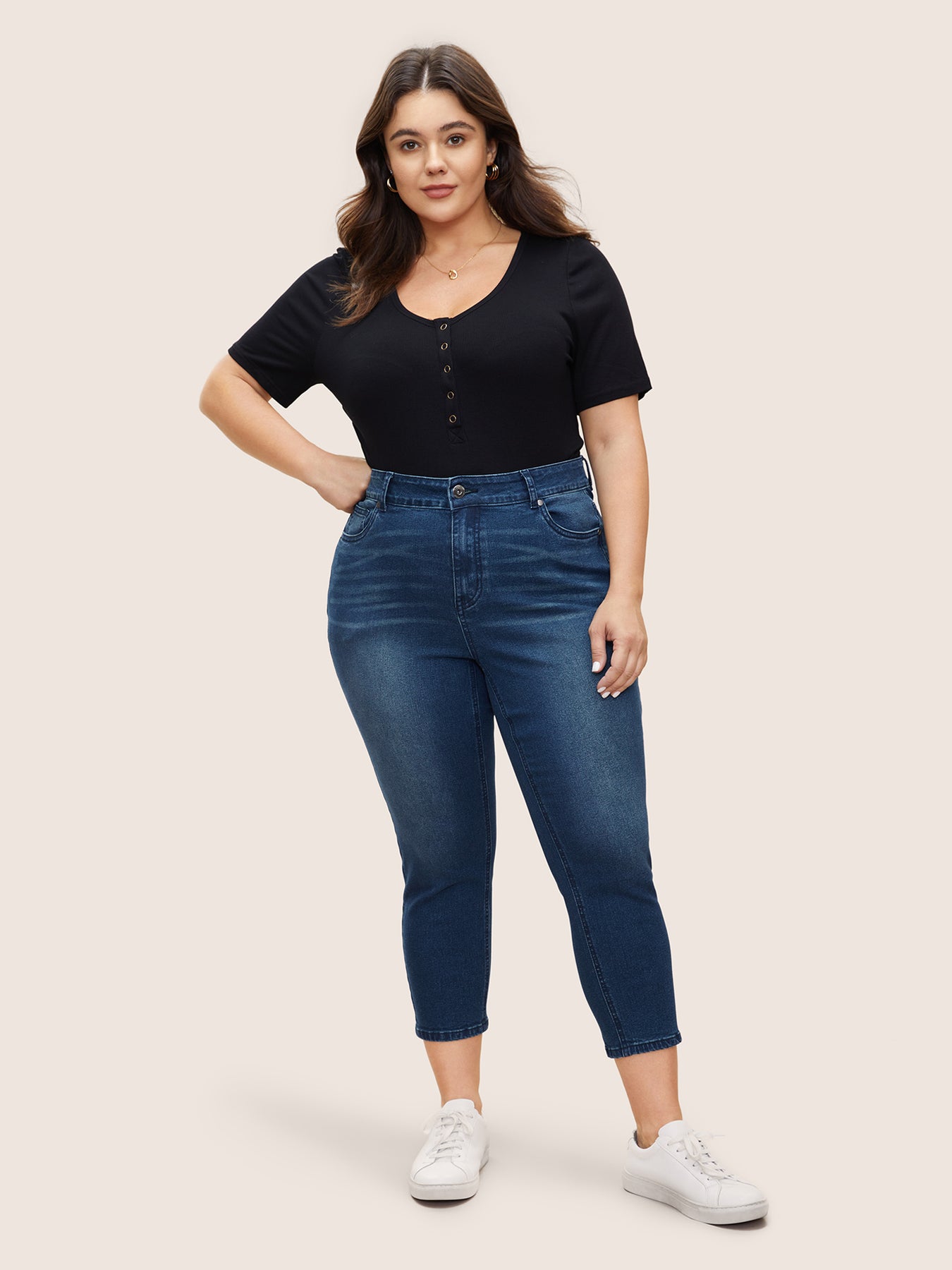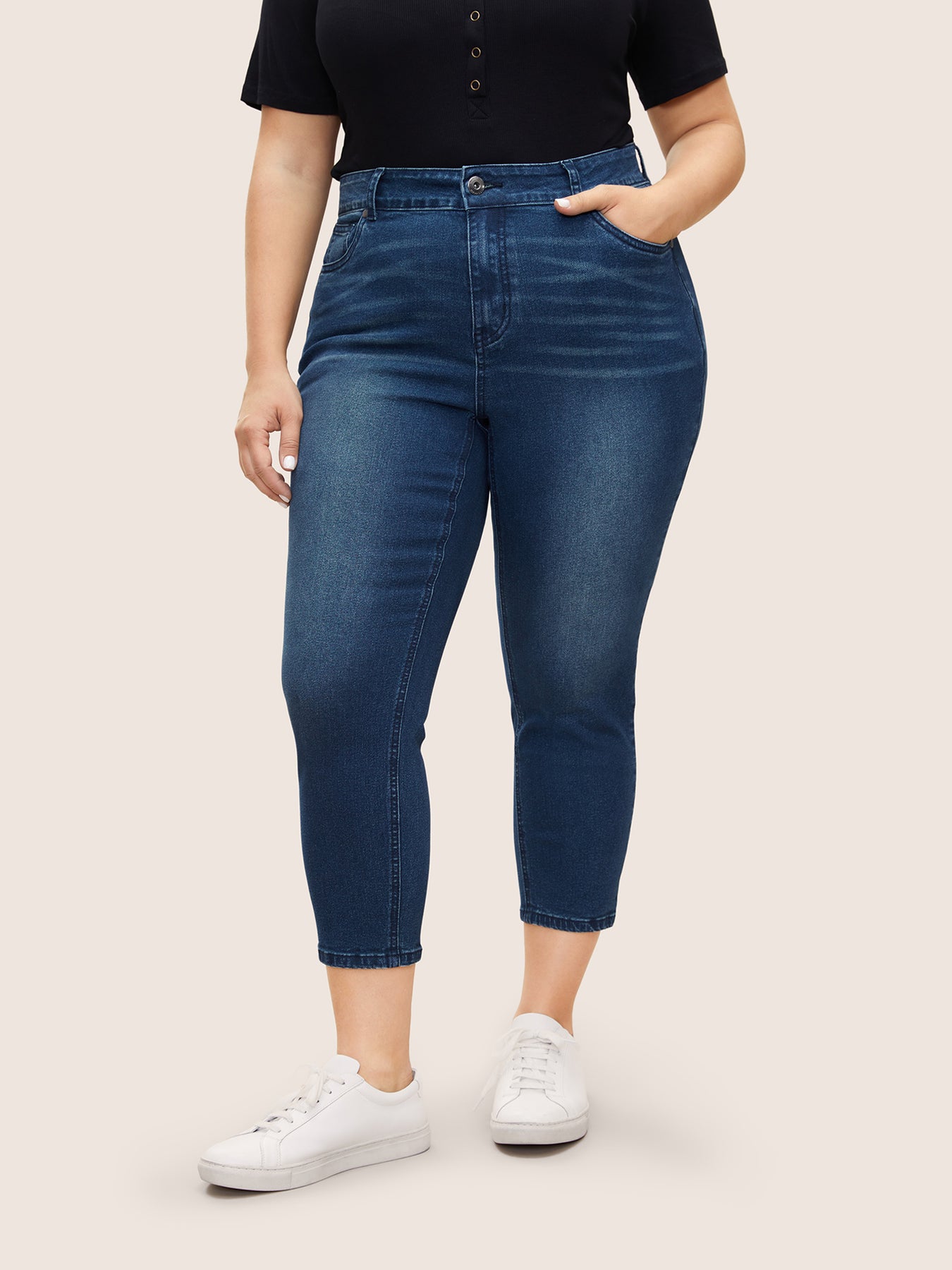Dark Wash Pocket Slim Cropped Jeans
