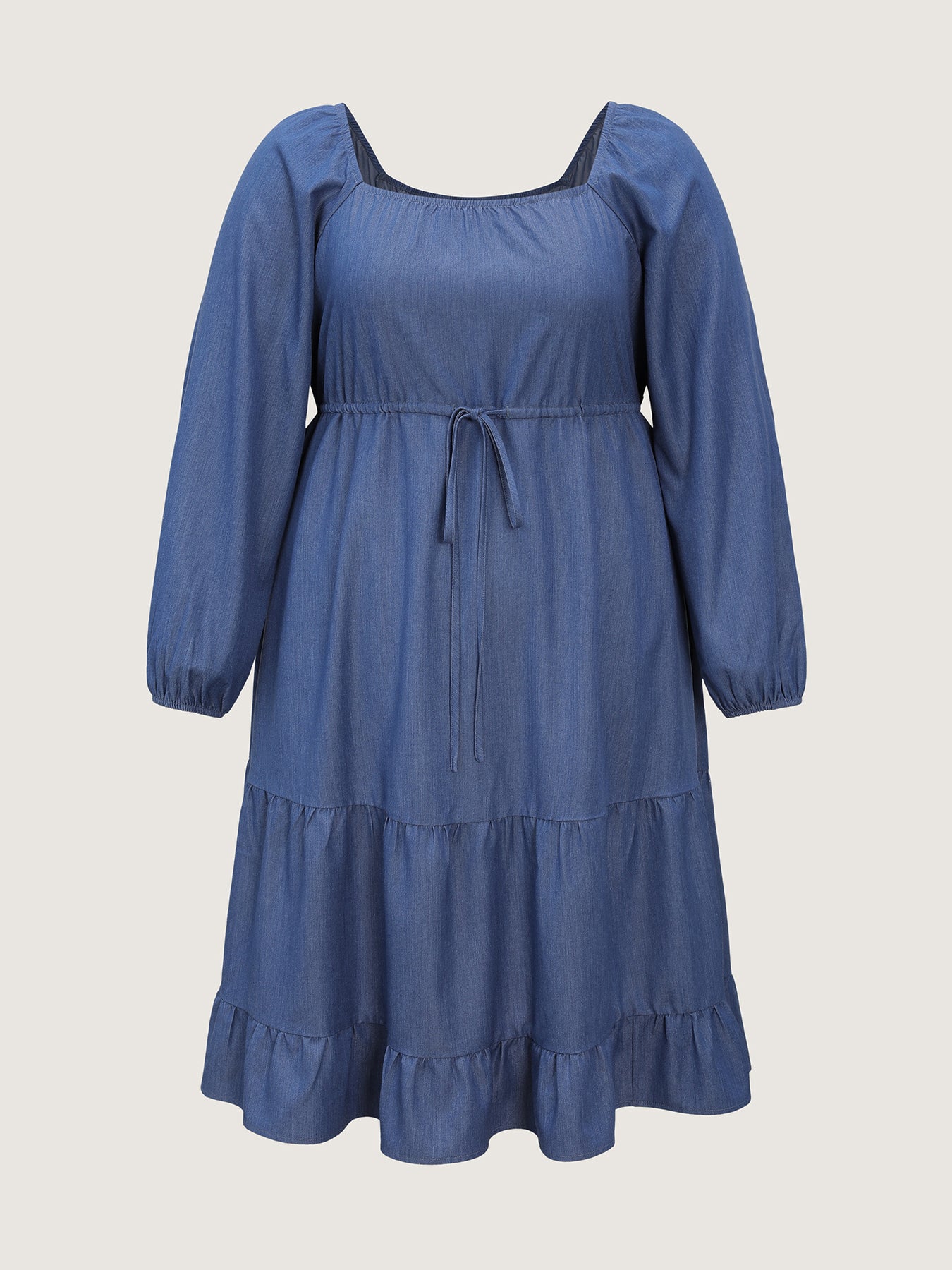 Denim-Like Cinched-Waist Pockets Midi Dress