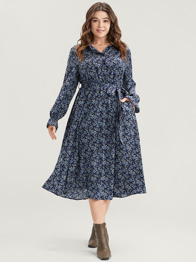Ditsy Floral Pocket Belted Shirt Collar Dress