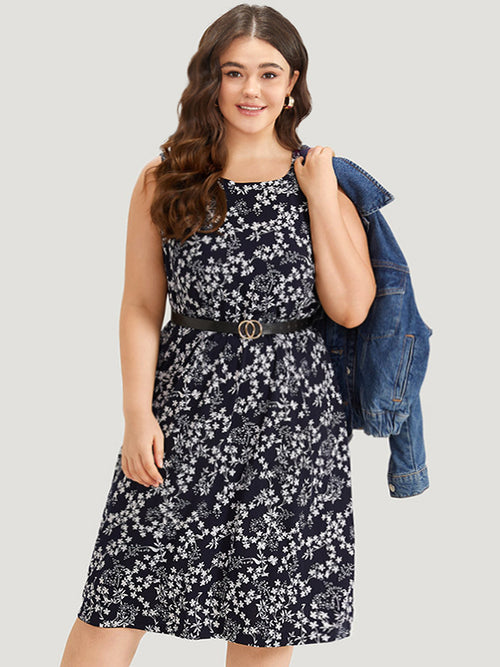 Ditsy Floral Pocket Crew Neck Tank Dress
